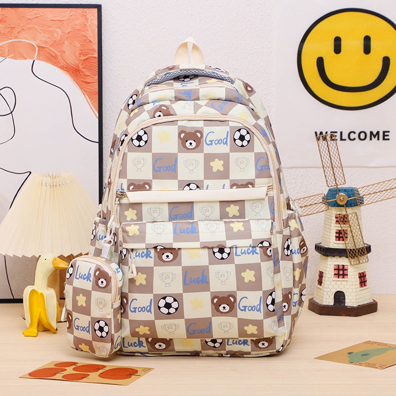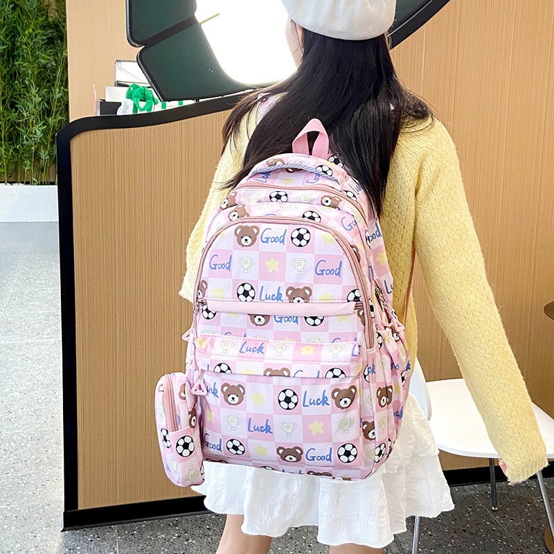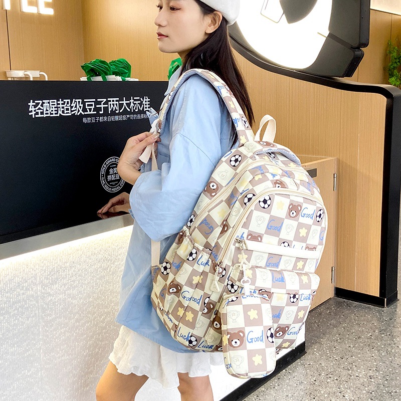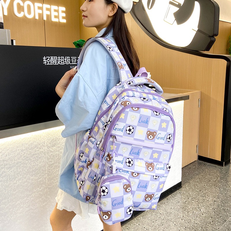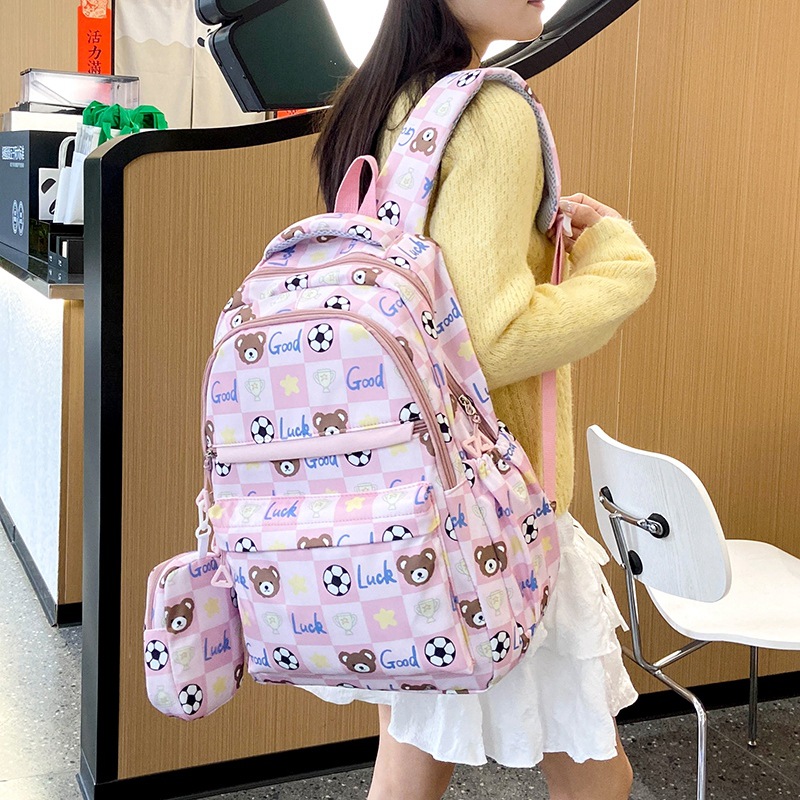 新款潮流时尚小熊印花休闲双肩背包初高中小学生书包轻便背包批发