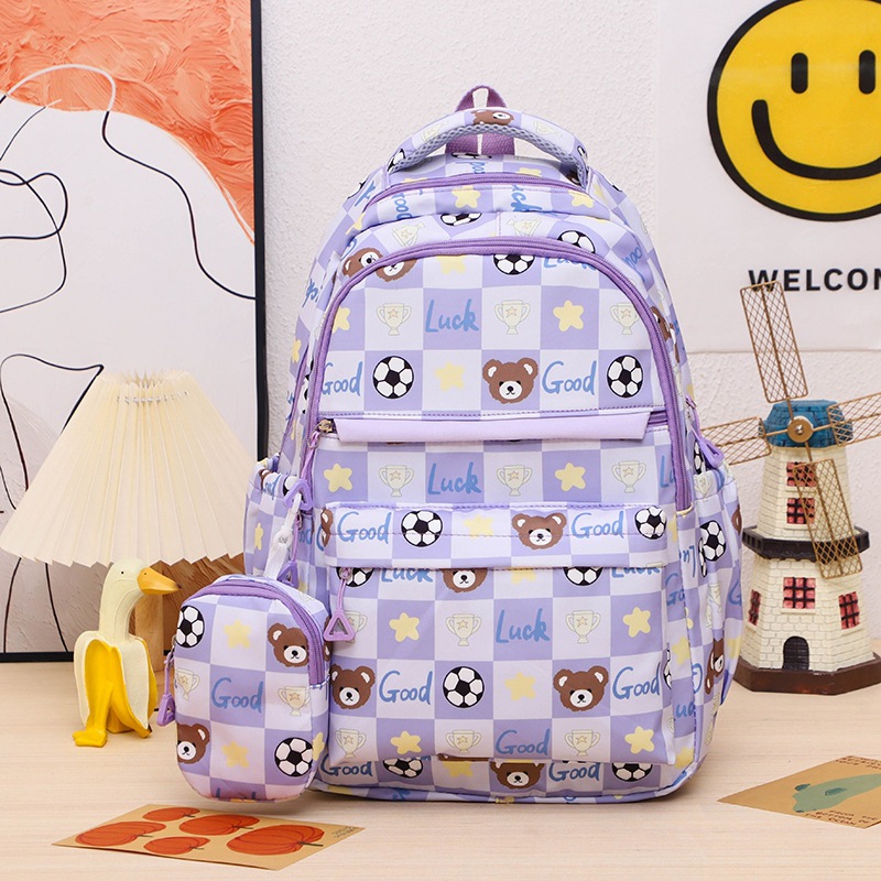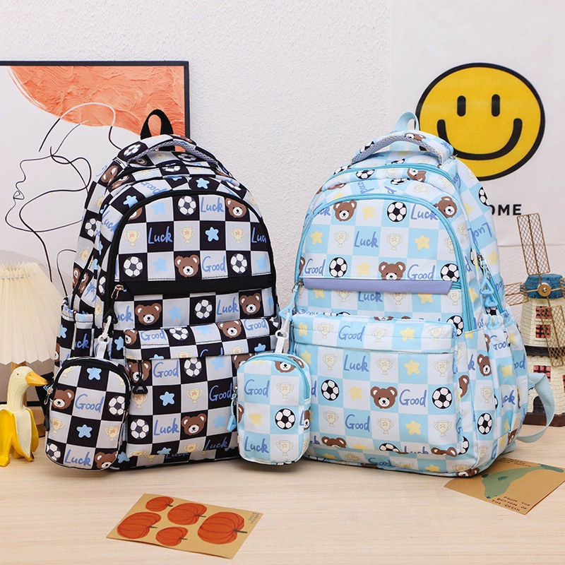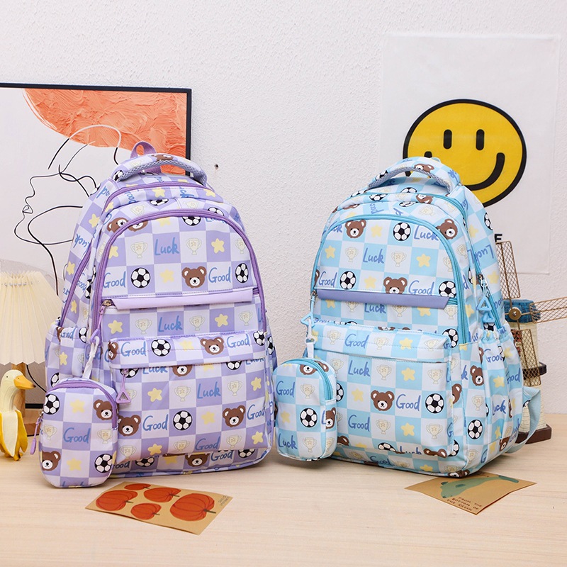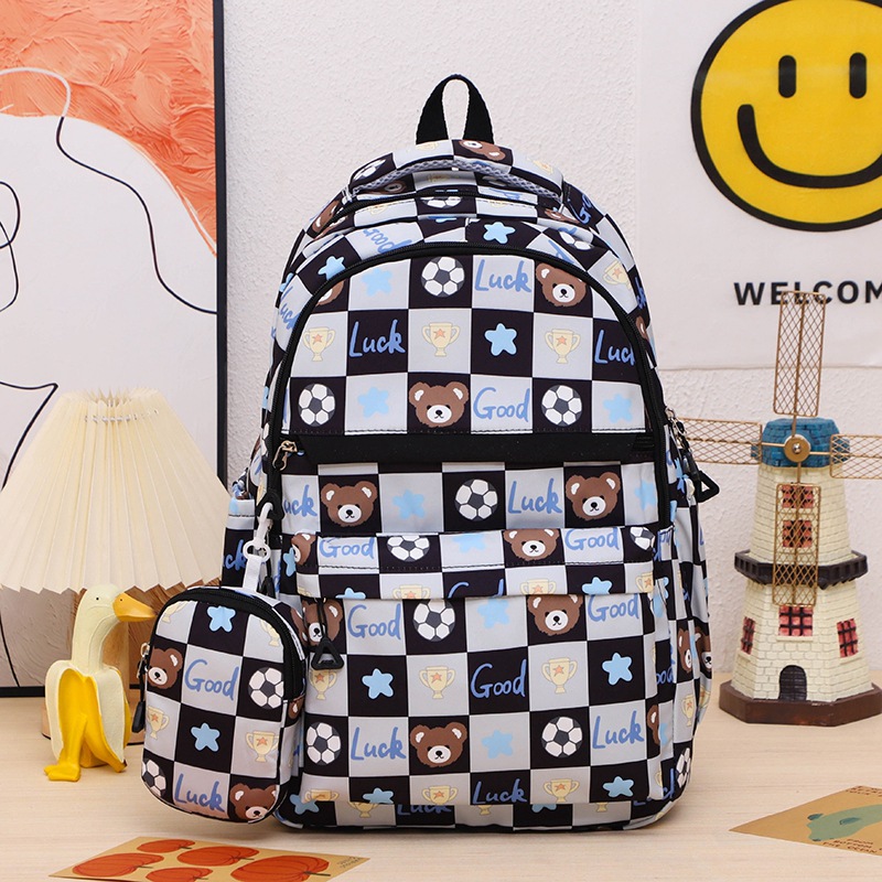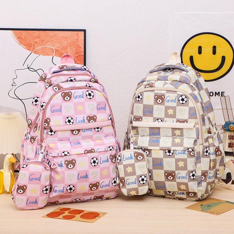 新款潮流时尚小熊印花休闲双肩背包初高中小学生书包轻便背包批发