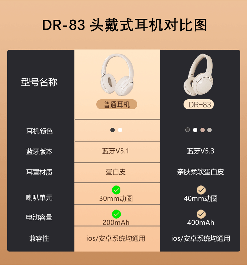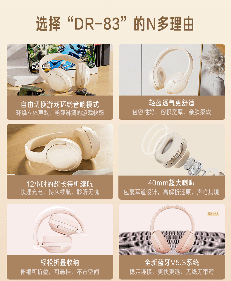 DR83 跨境新款无线蓝牙耳机全包耳通话网课无延迟头戴式蓝牙耳机
