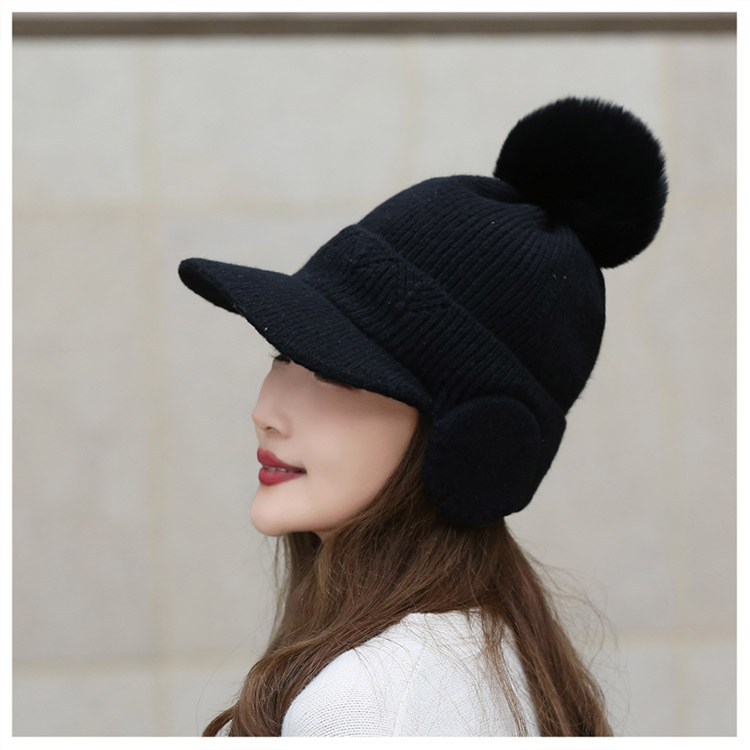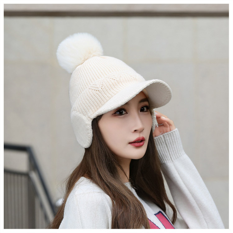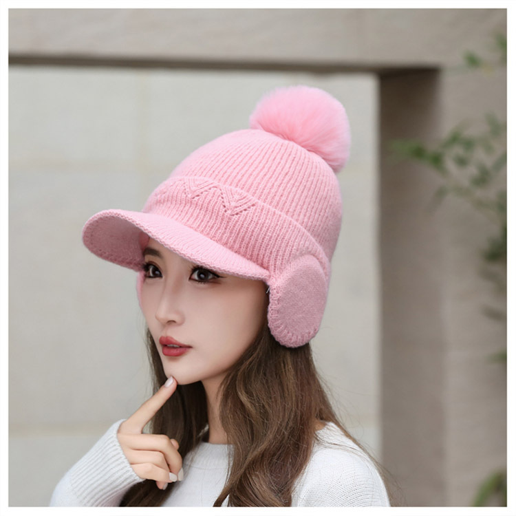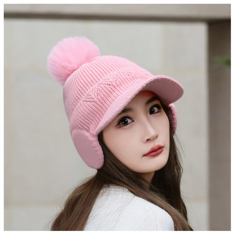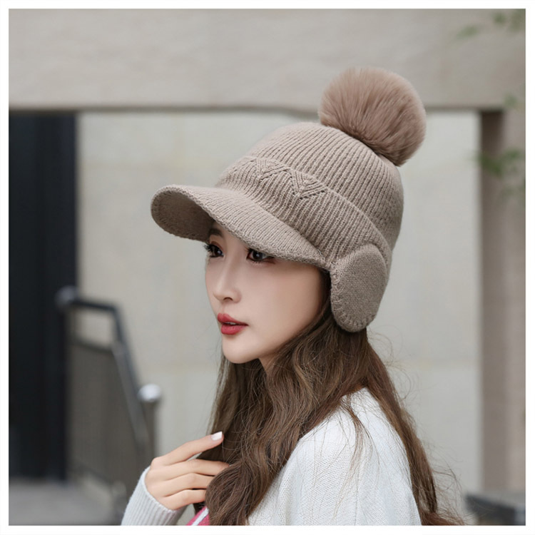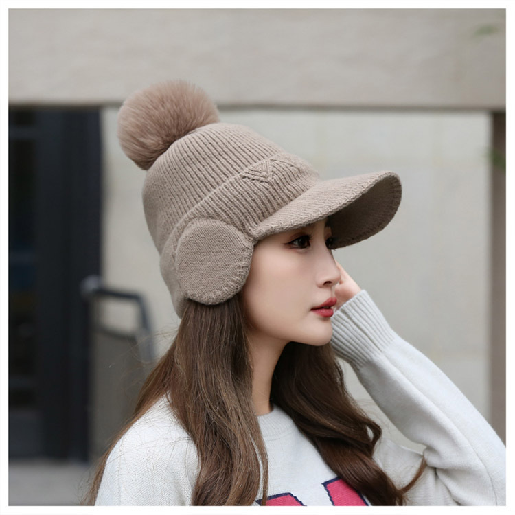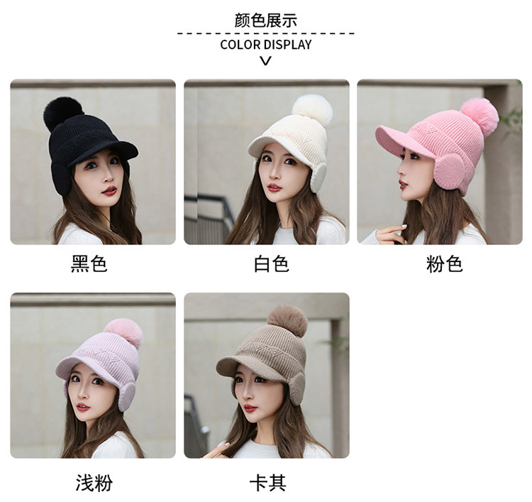 秋冬针织毛线帽子女韩版时尚加绒加厚保暖护耳鸭舌棉帽户外保暖