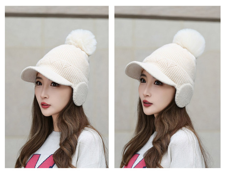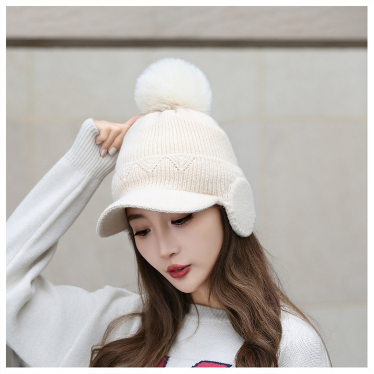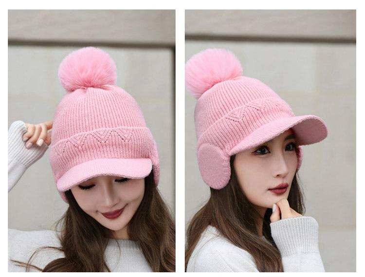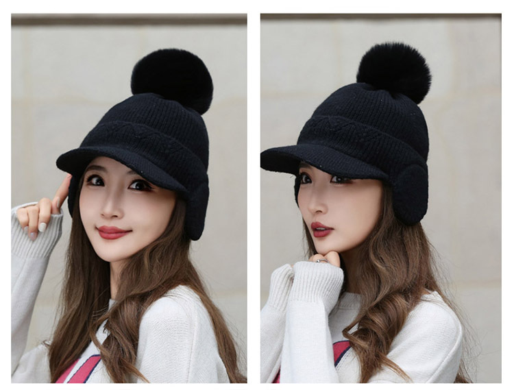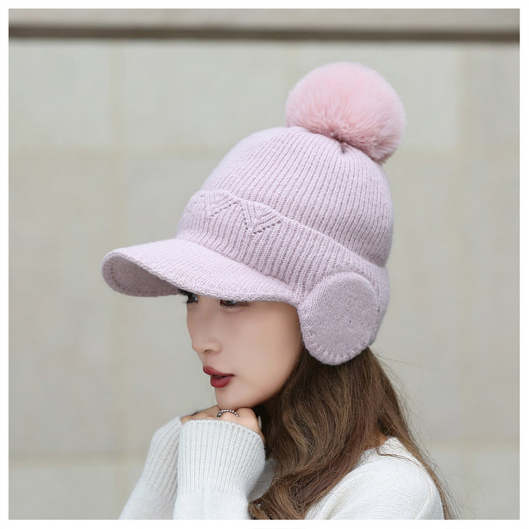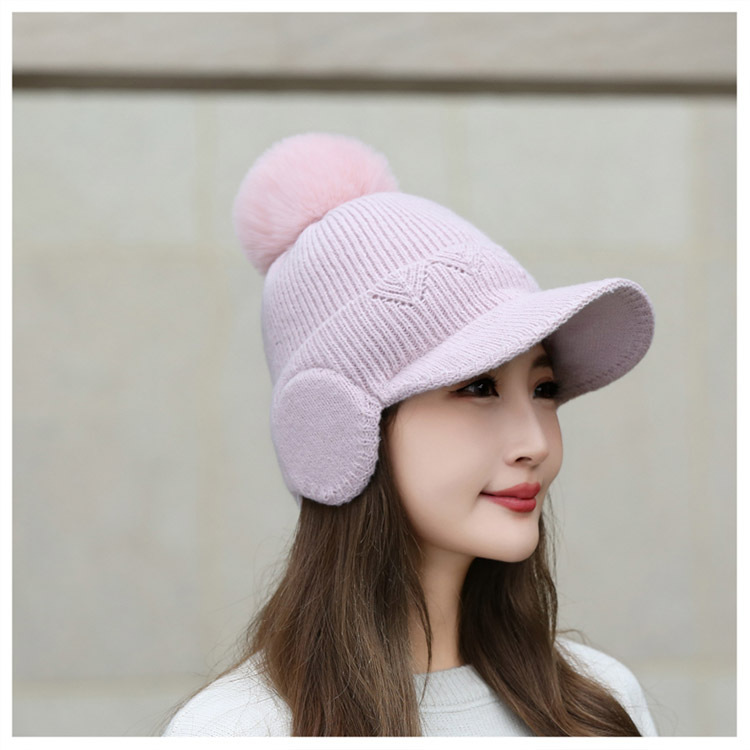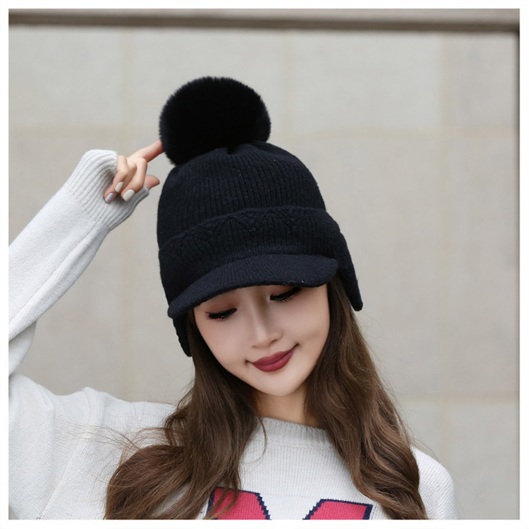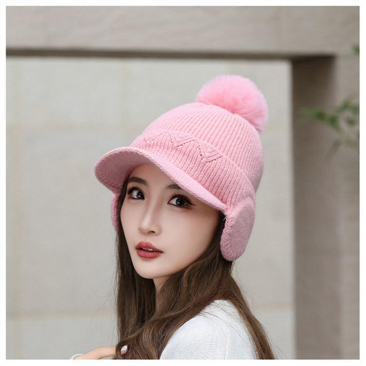 秋冬针织毛线帽子女韩版时尚加绒加厚保暖护耳鸭舌棉帽户外保暖
