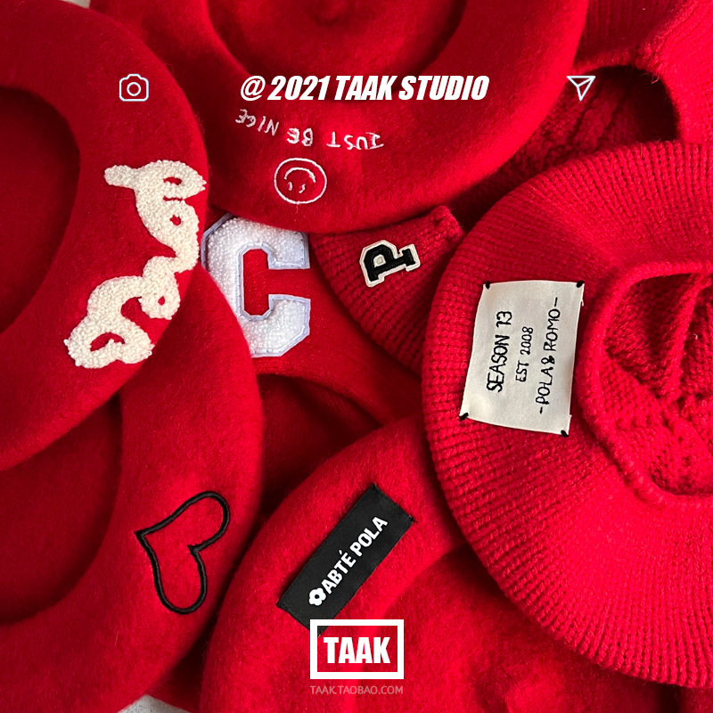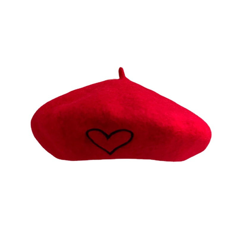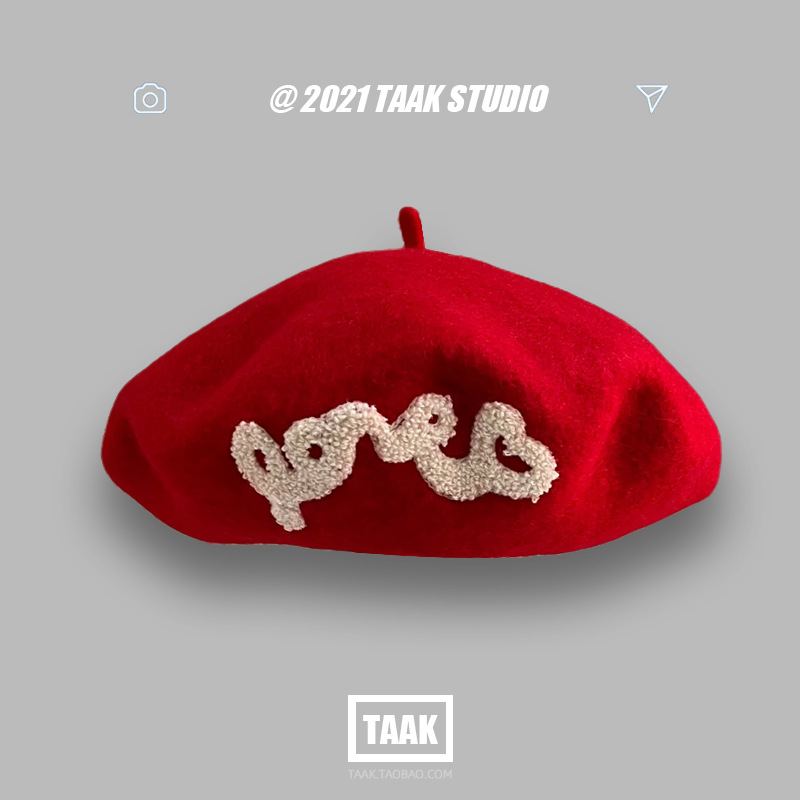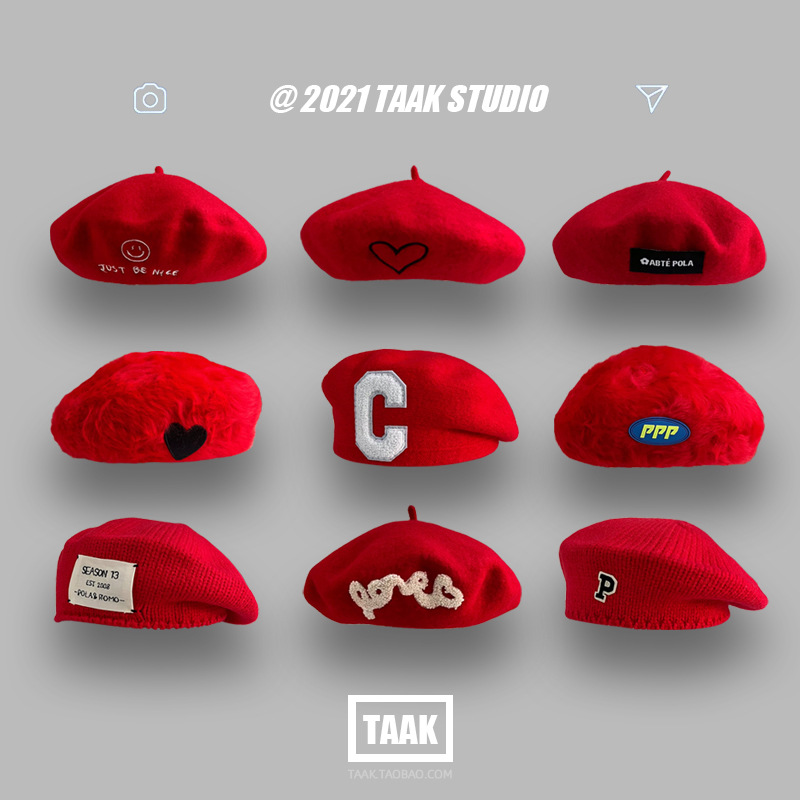 红色贝雷帽圣诞礼物大红新年红本命年羊毛呢兔毛画家帽子女秋冬天