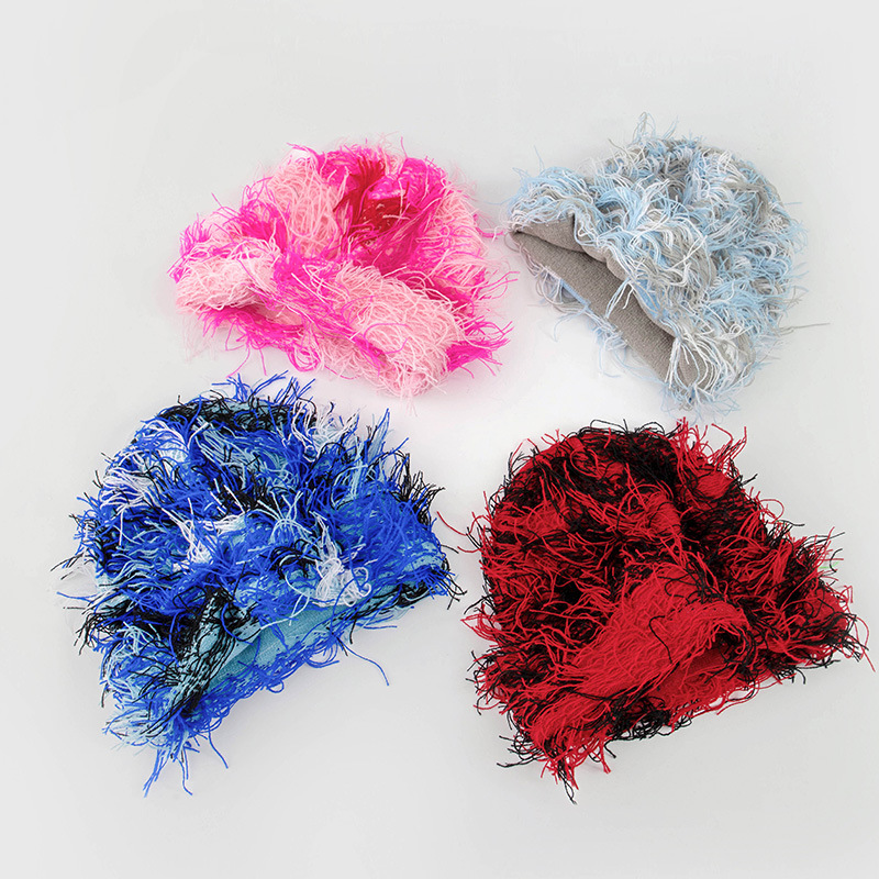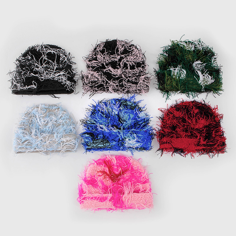 跨境亚马逊爆款猴子毛毛针织套头帽秋冬季搞怪迷彩军绿色毛线冷帽