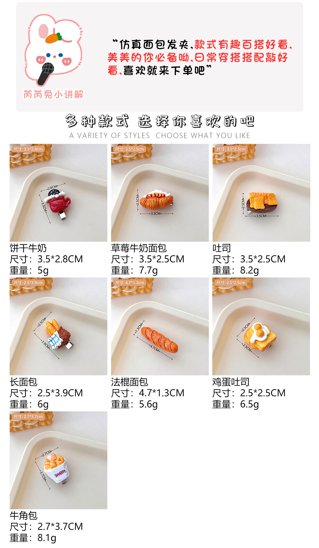 仿真面包食物系列发夹发饰少女心鸭嘴夹碎发夹学生刘海侧边夹头饰