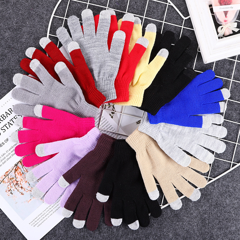 厂家供应秋冬款触屏手套批发新款男女通用户外骑行保暖针织手套
