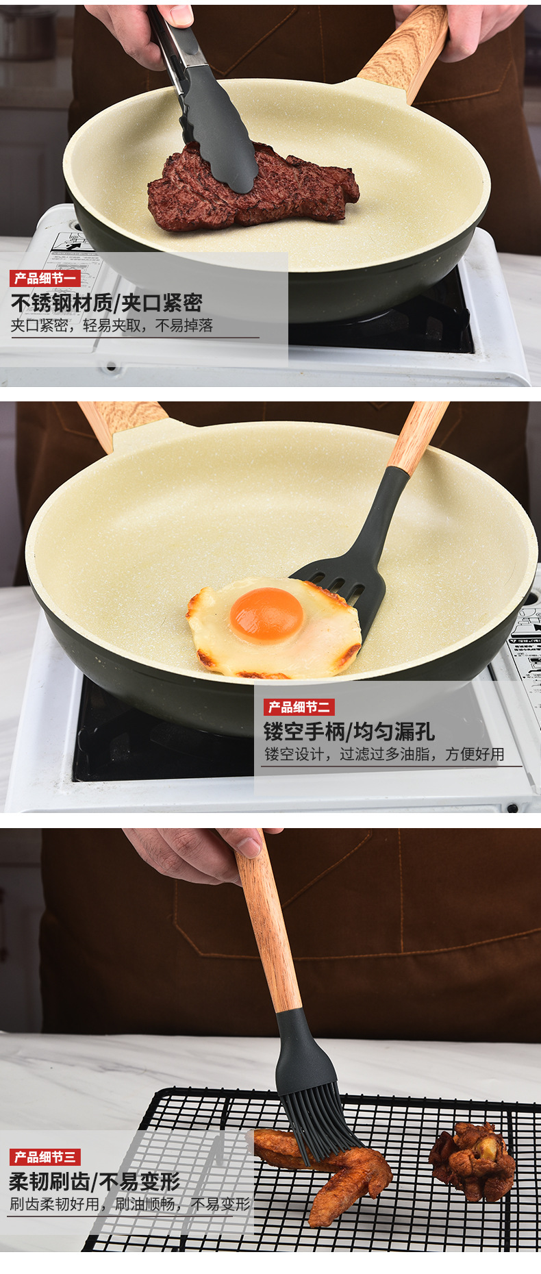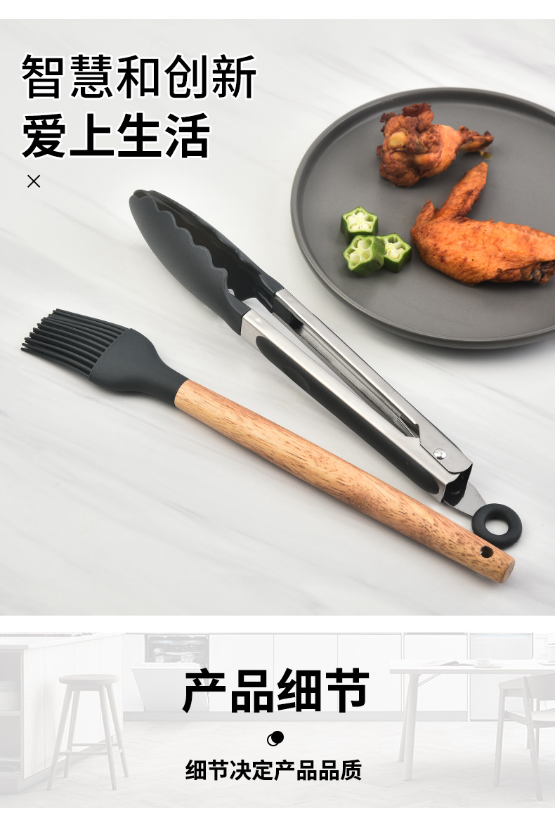 品 名:轻版木柄硅胶厨具套装