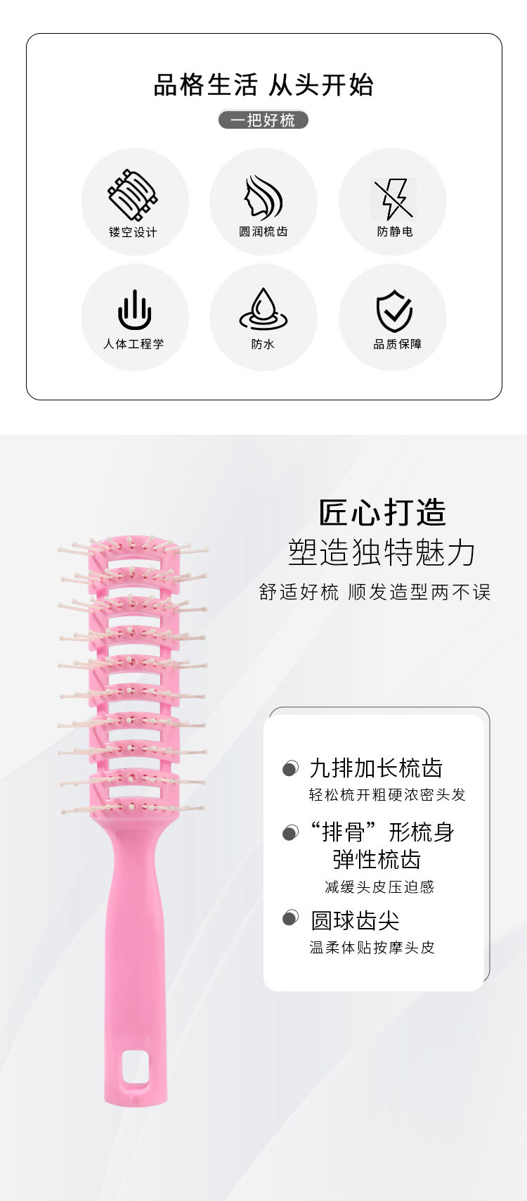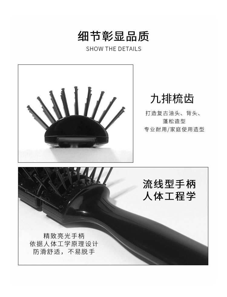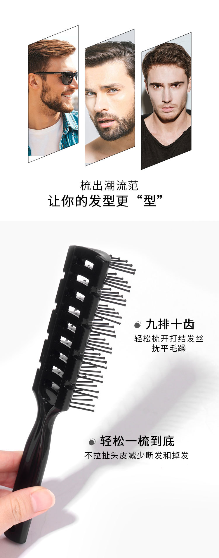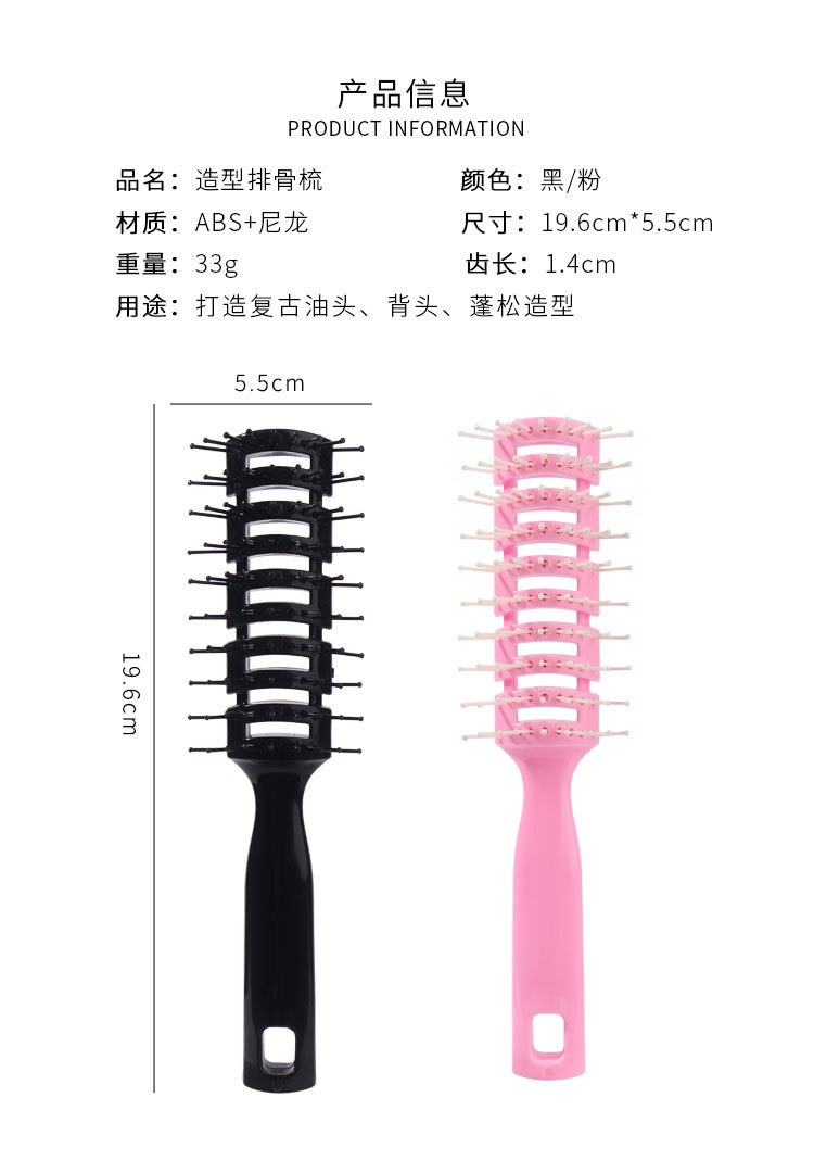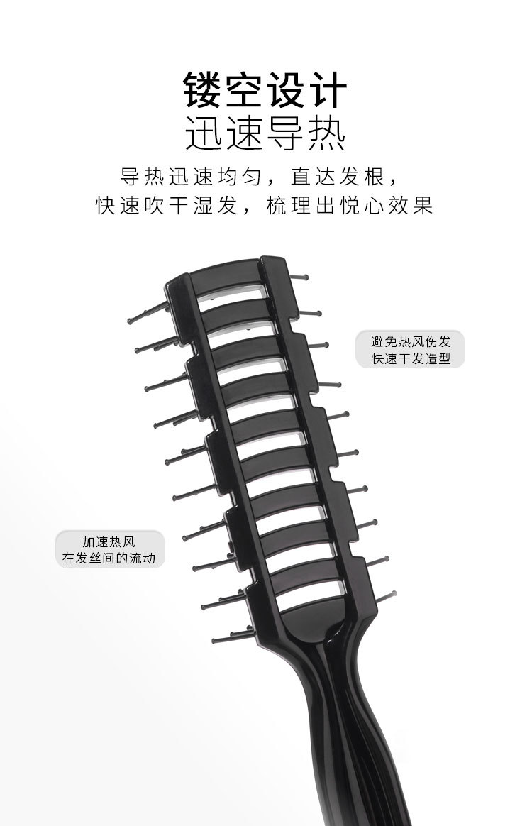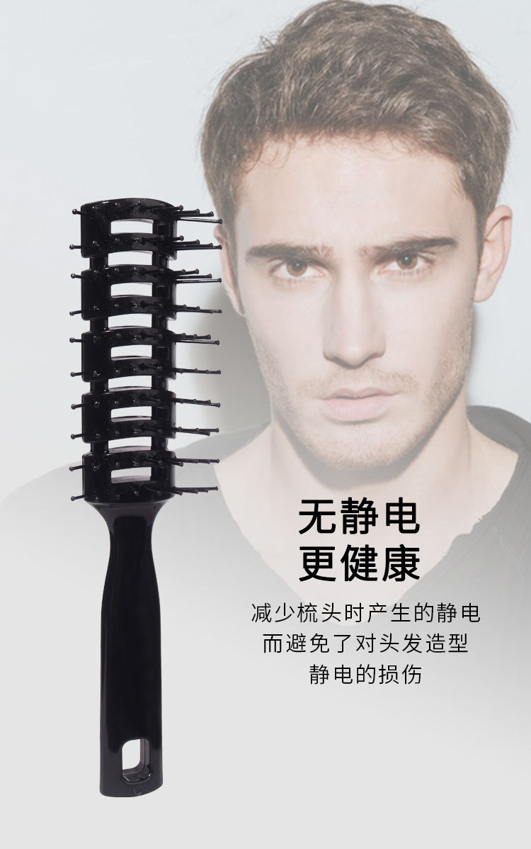 男士美发卷发刘海造型梳子家用按摩镂空排骨梳大背头发型打理神器