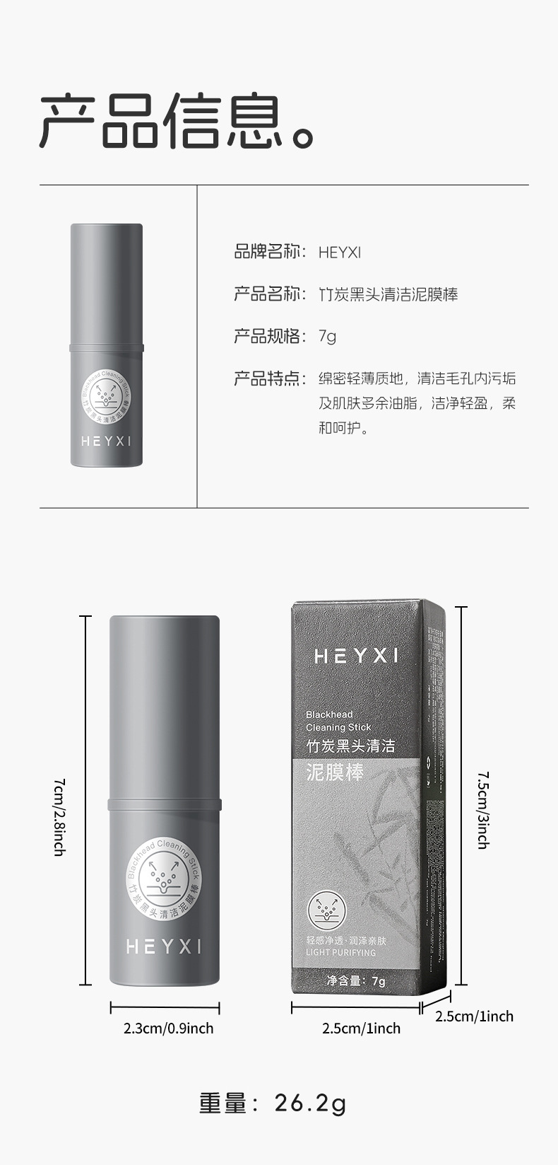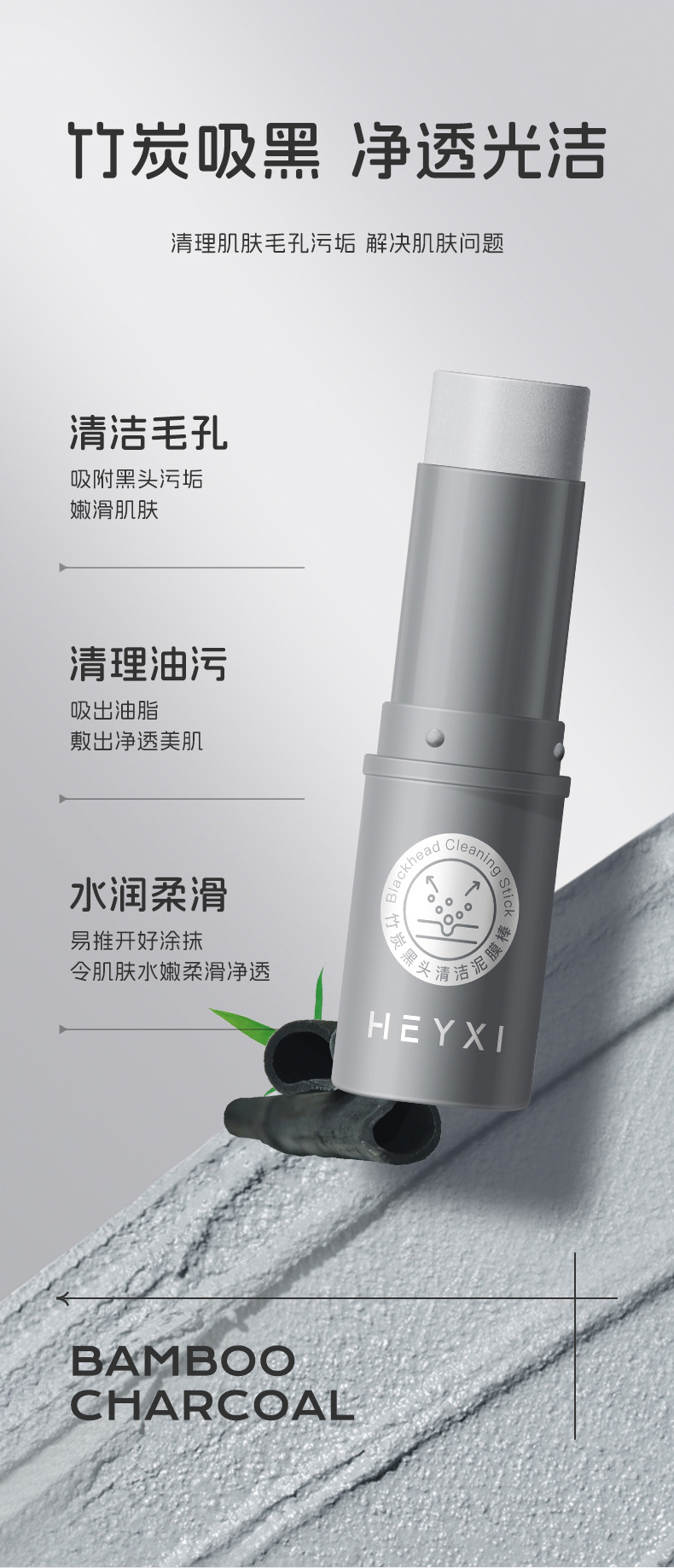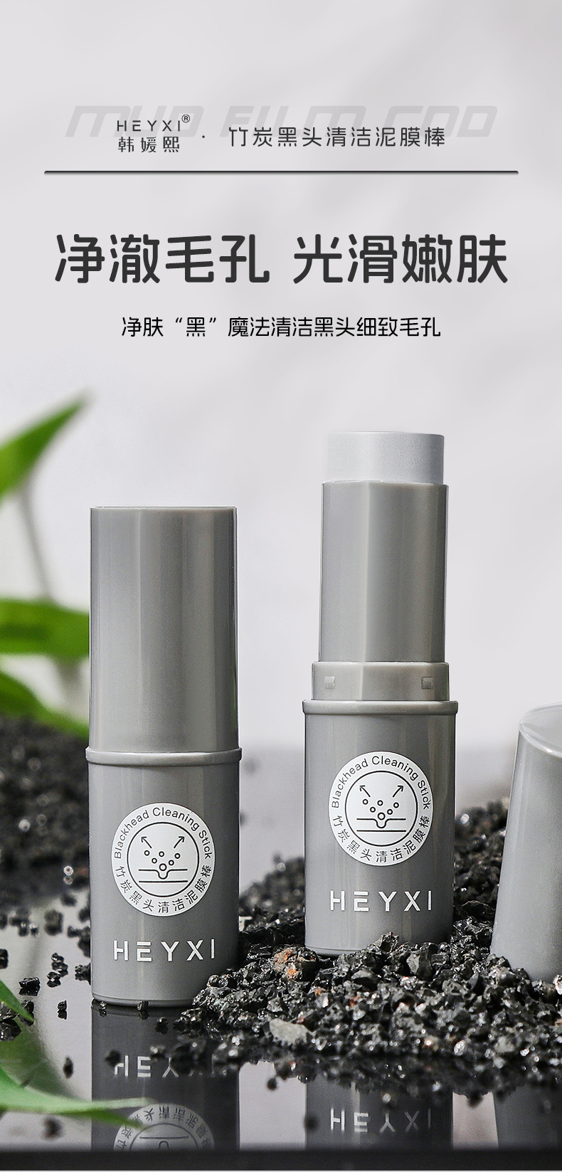 HEYXI韩媛熙竹炭黑头清洁泥膜棒涂抹式固体面膜深层清洁7g