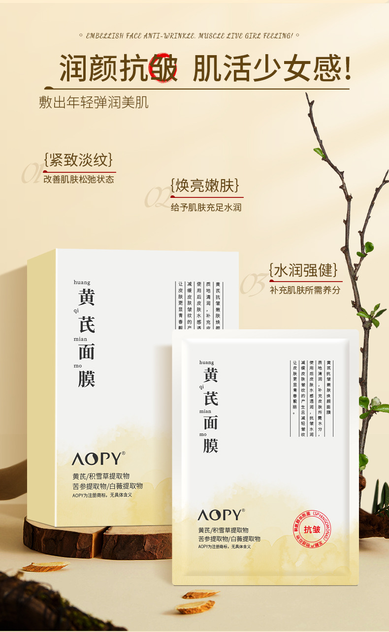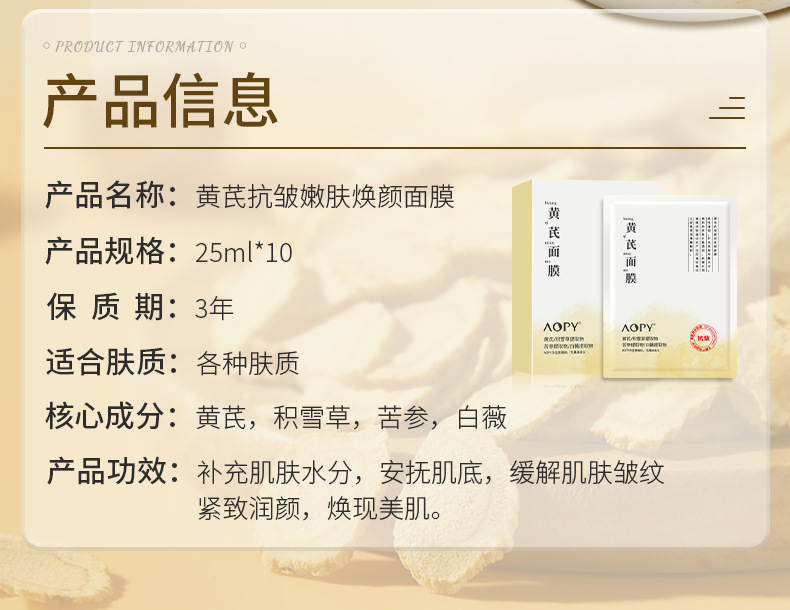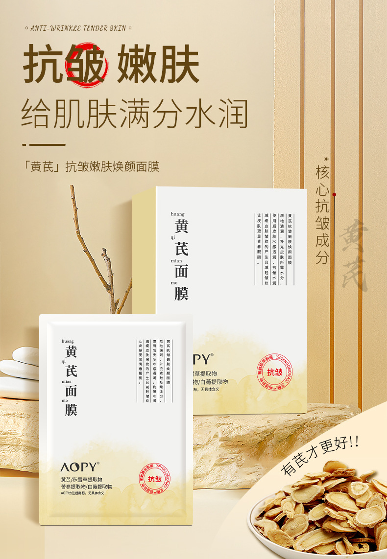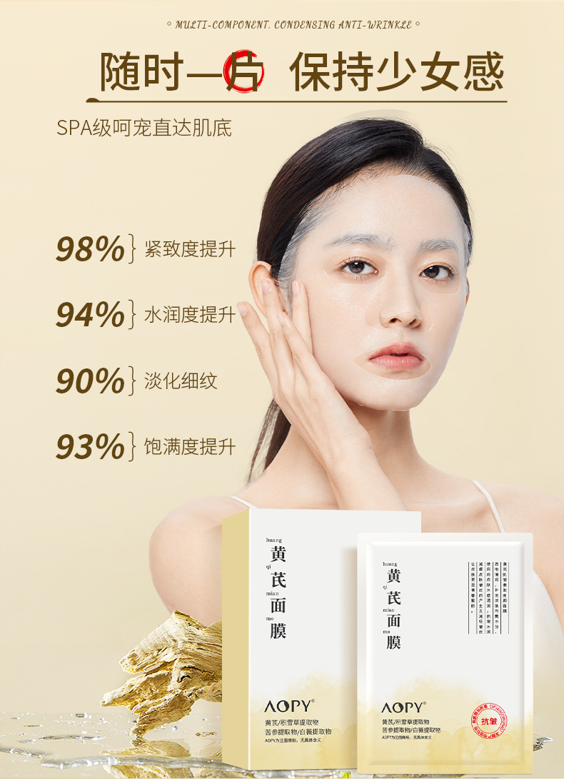 黄芪嫩肤焕颜面膜面膜夏季补水保湿冰膜柔嫩肌肤单片面膜批发