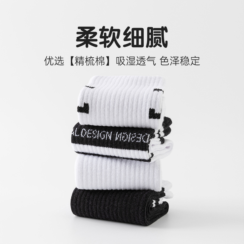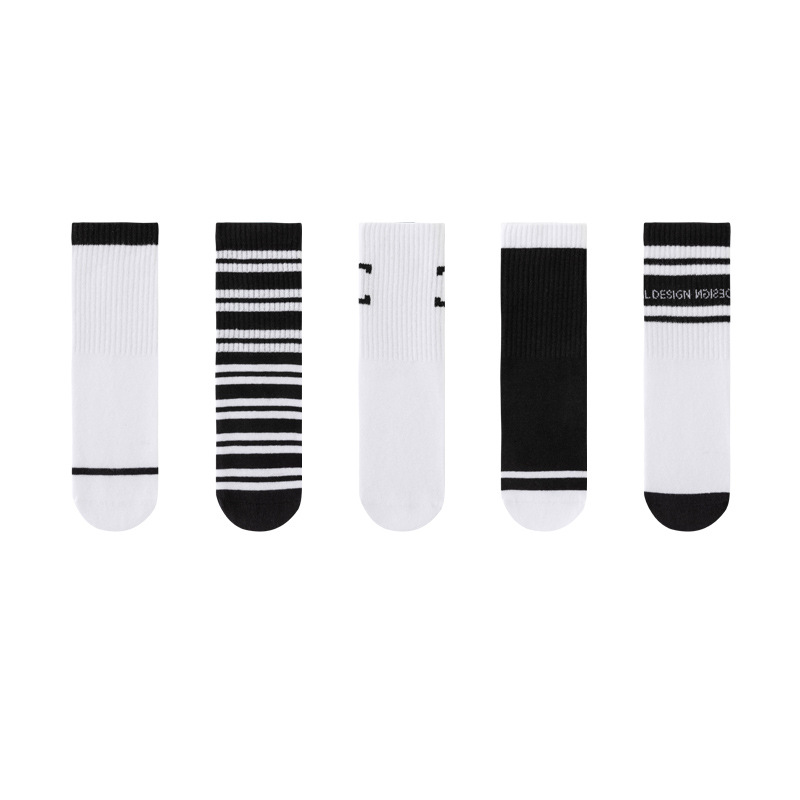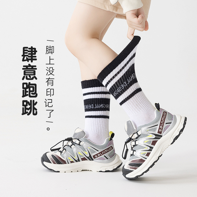 秋季长筒袜女童春秋新款黑白条纹中筒袜男童运动袜儿童袜子