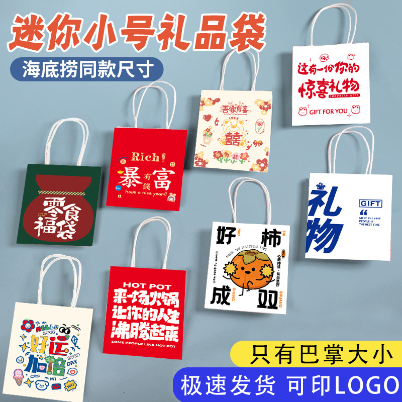 礼品袋小号海底捞同款手提袋迷你小袋子火锅店零食小纸袋现货logo