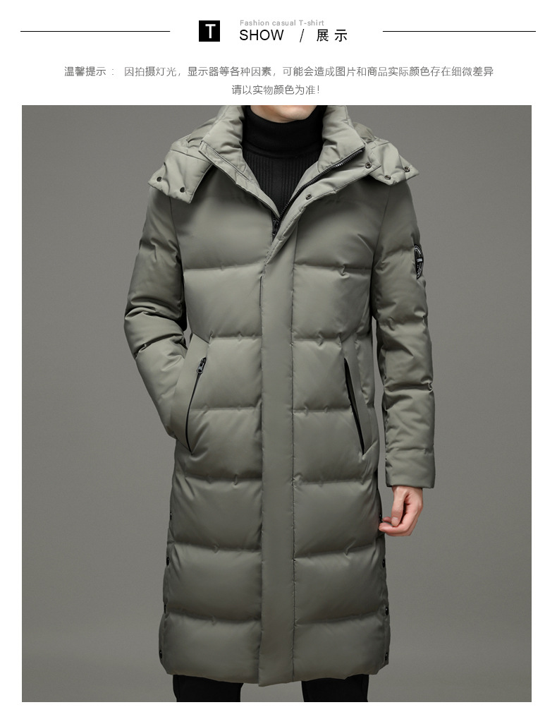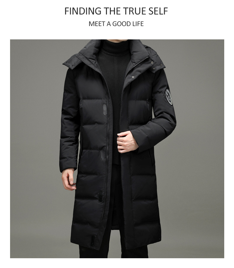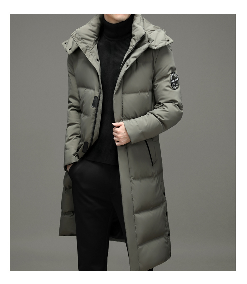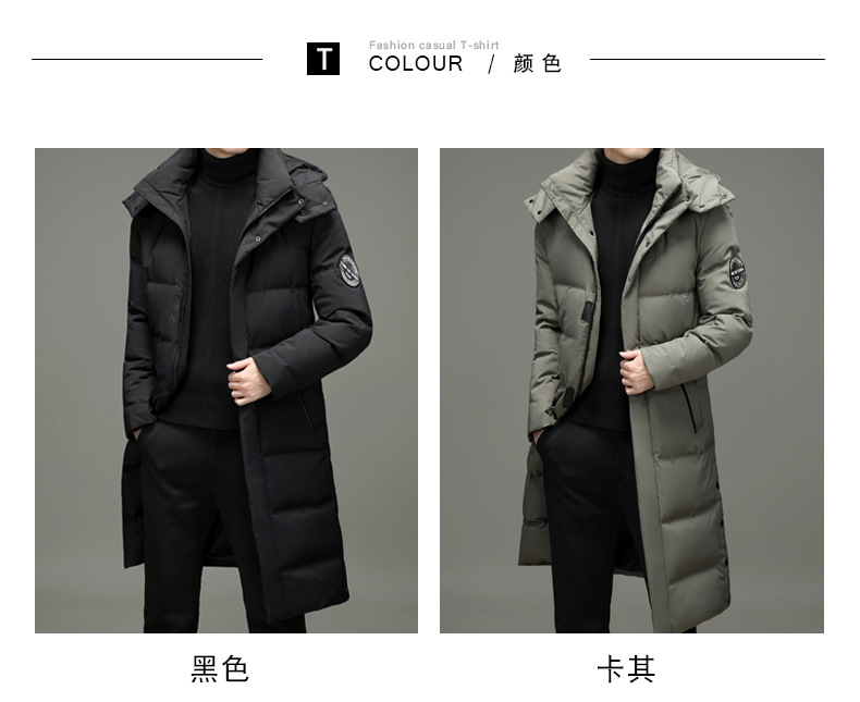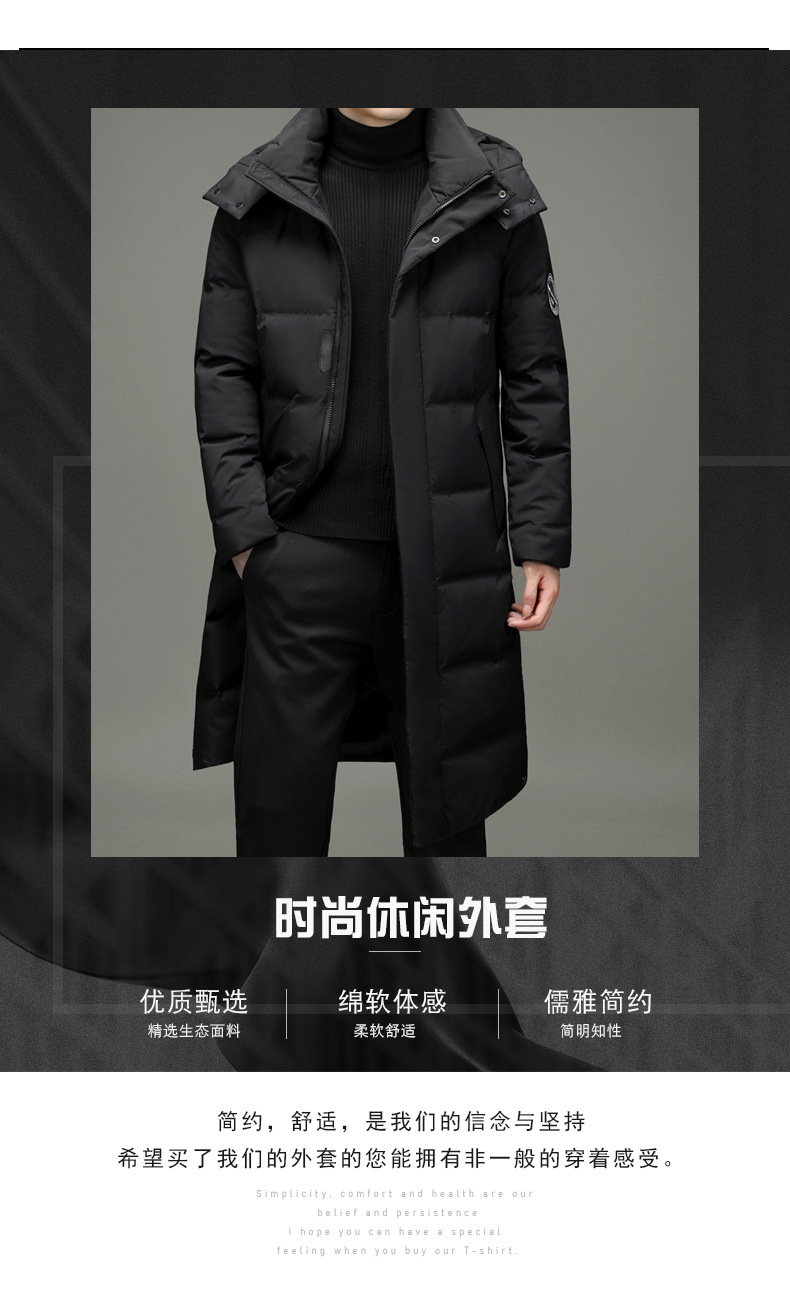 2023年冬季新款长款男士时尚休闲白鸭绒外套男装过膝保暖羽绒服