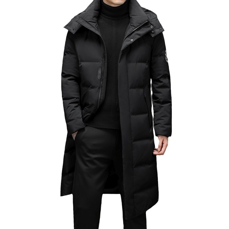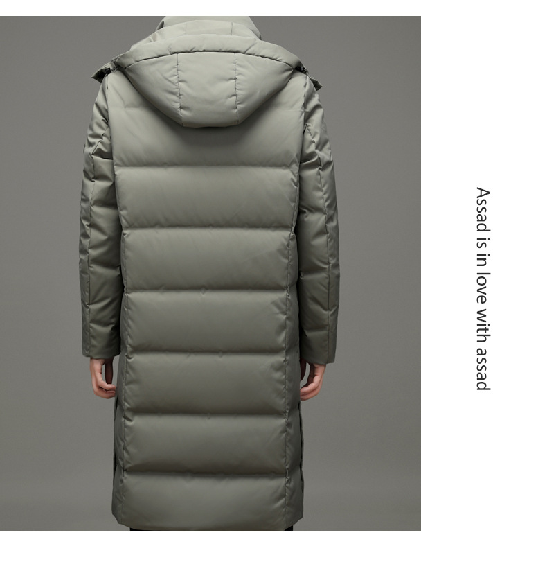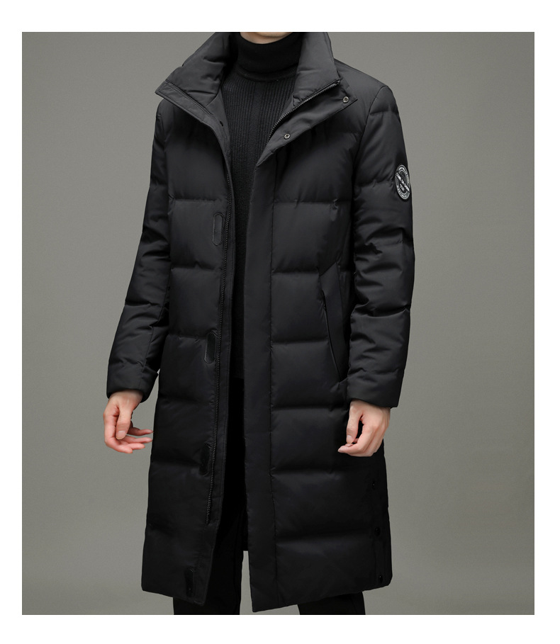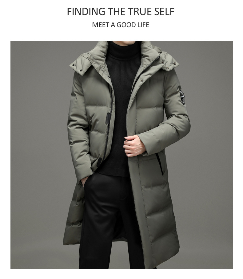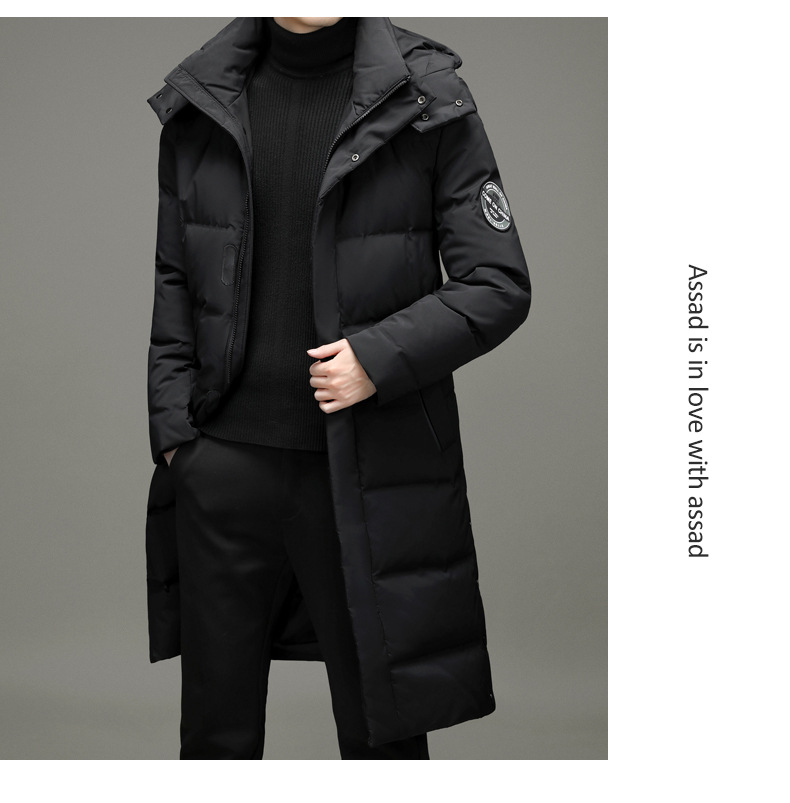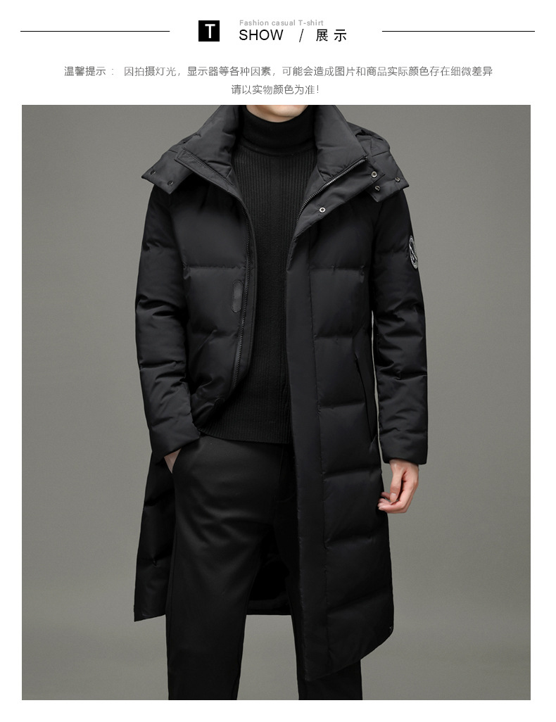 2023年冬季新款长款男士时尚休闲白鸭绒外套男装过膝保暖羽绒服