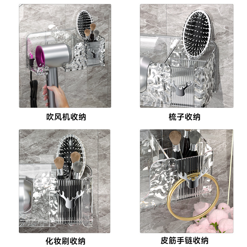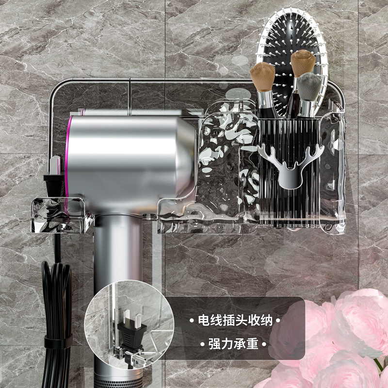 透明水风机置物架免打孔卫生间电吹风挂架浴室壁挂式支架收纳神器
