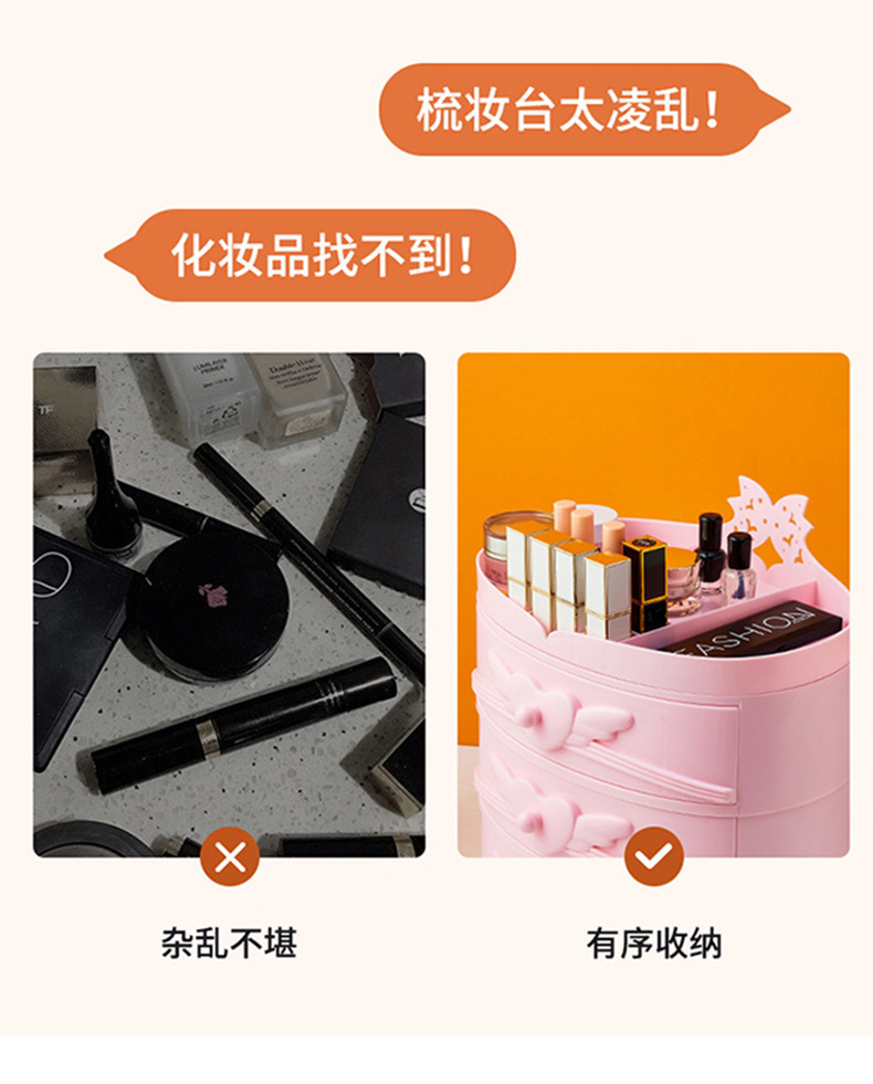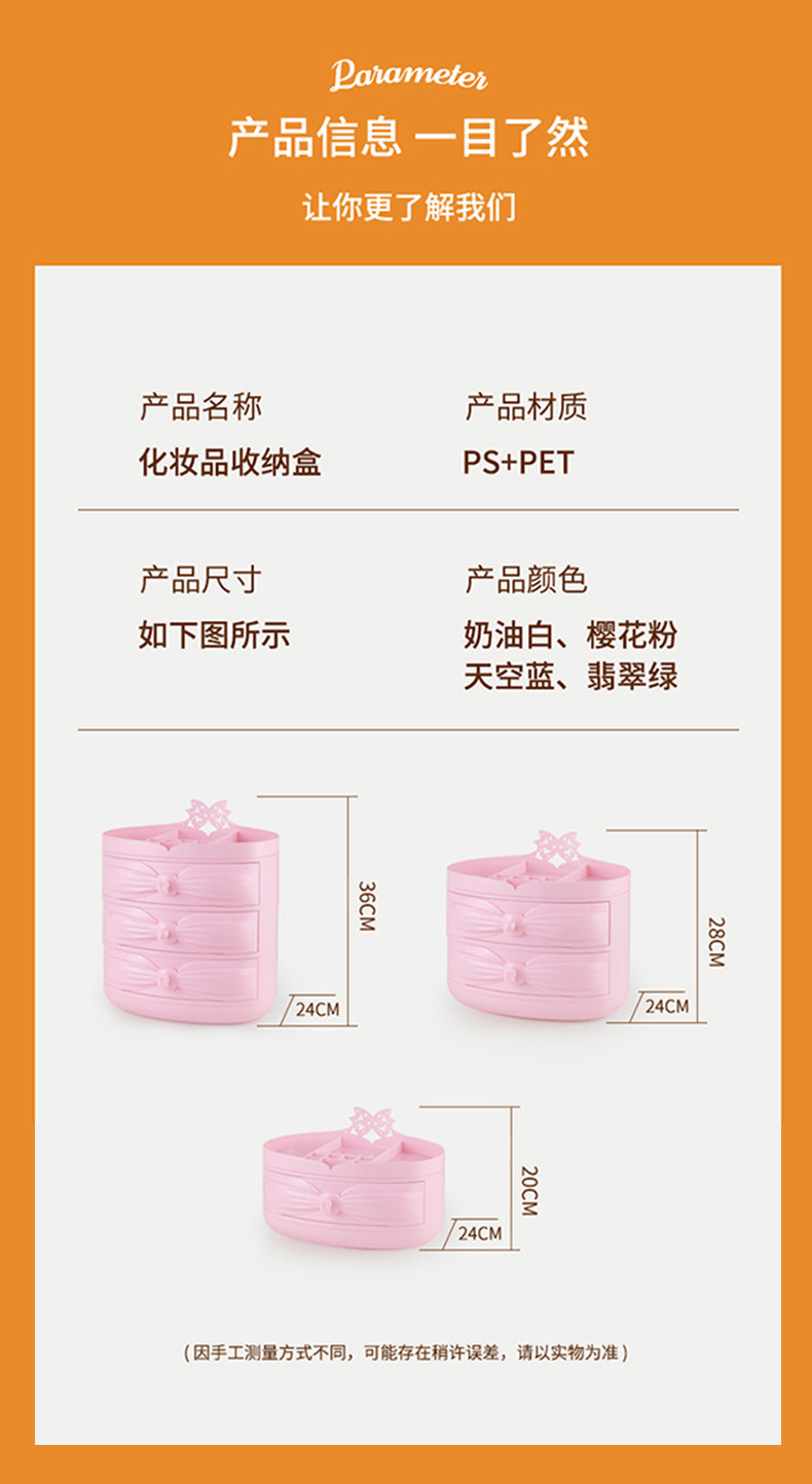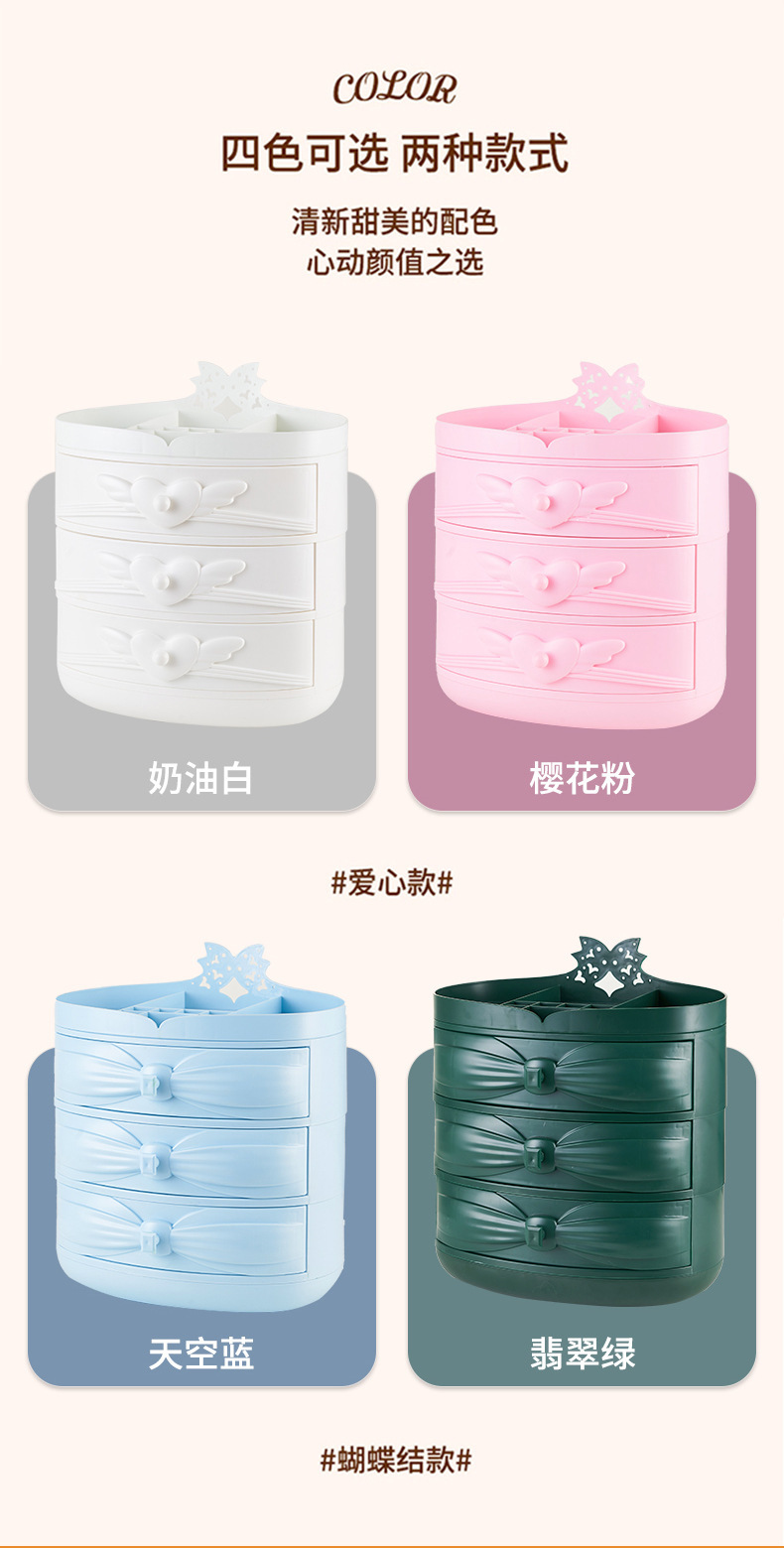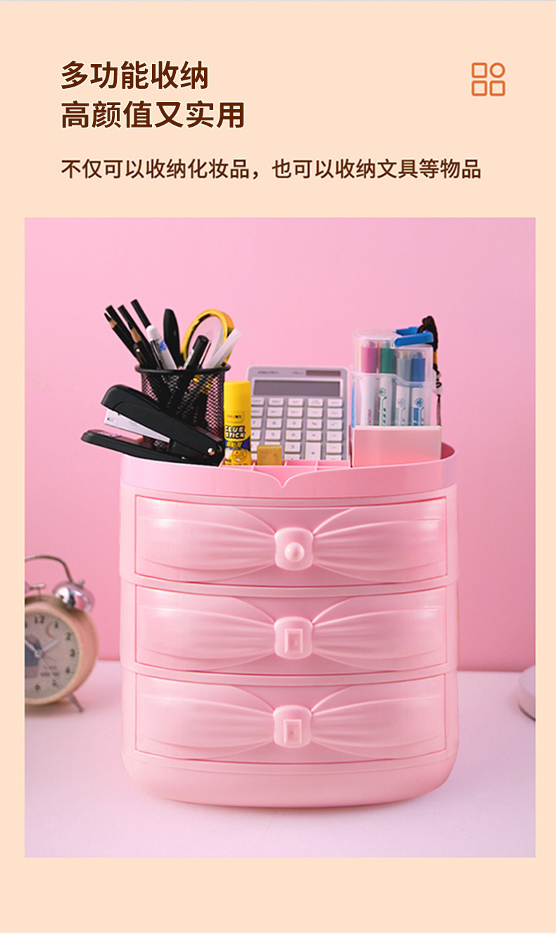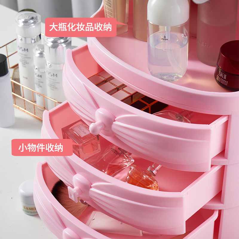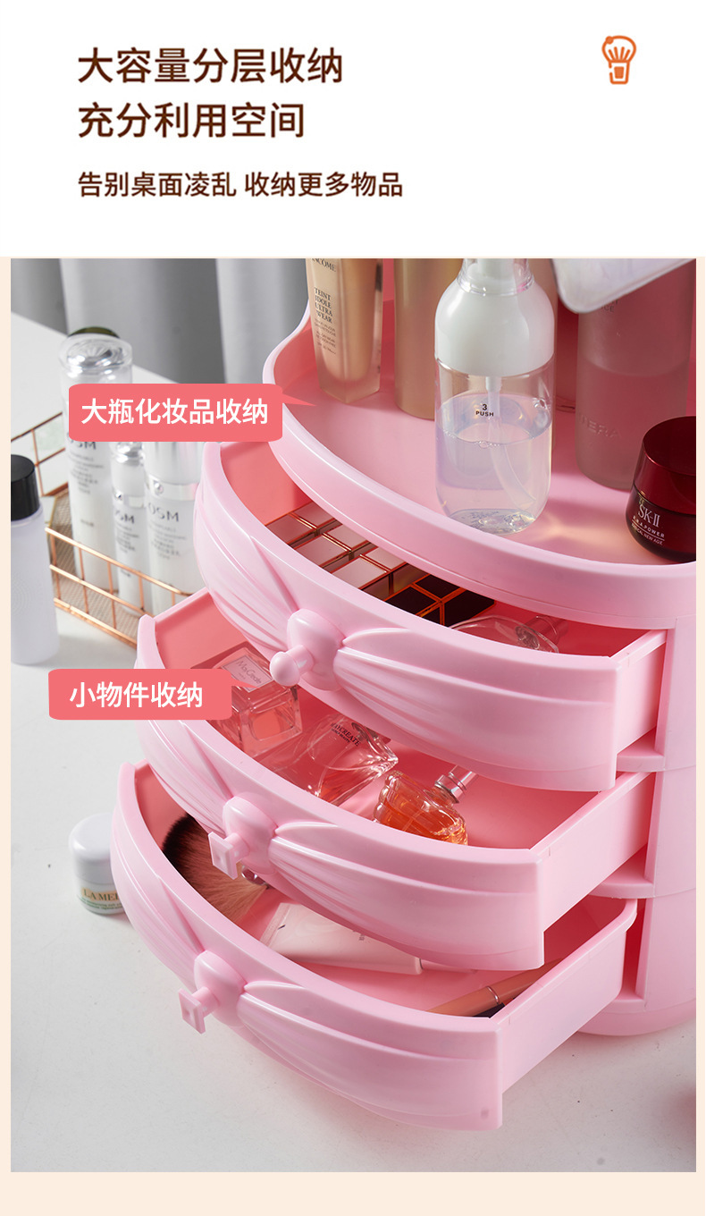 三层化抽屉妆收纳盒 网红塑料化妆品收纳箱 家用多抽屉收纳盒