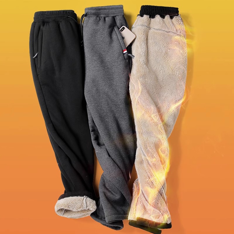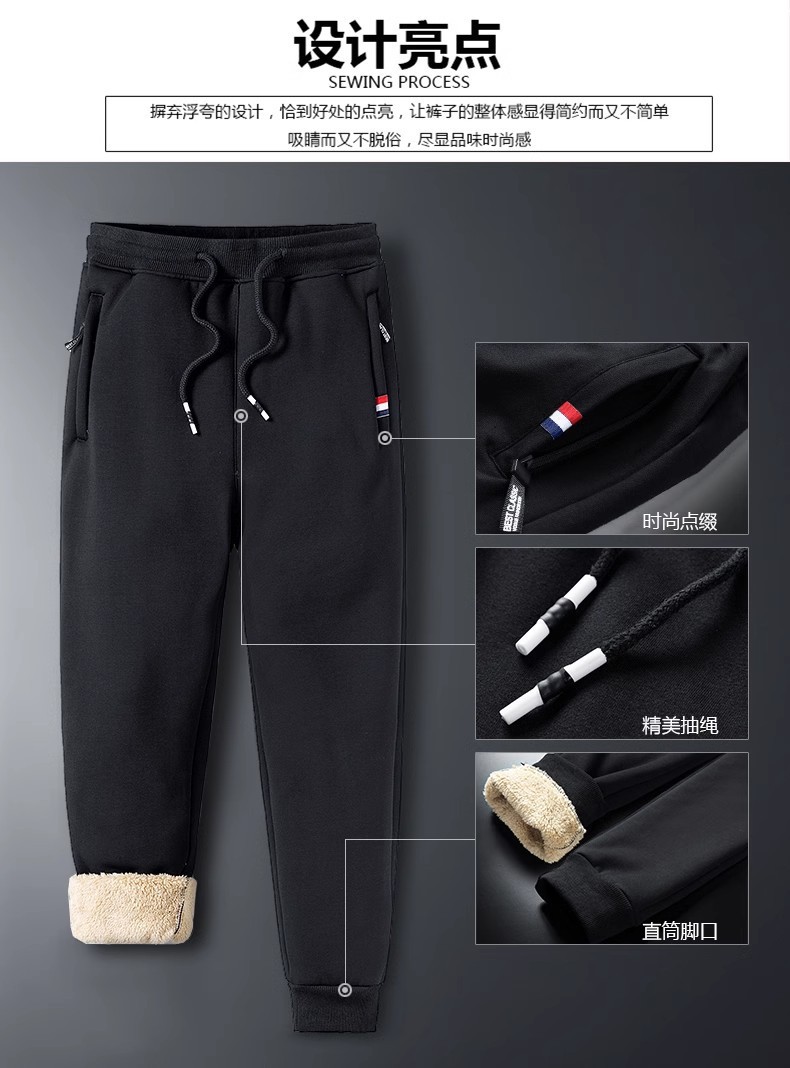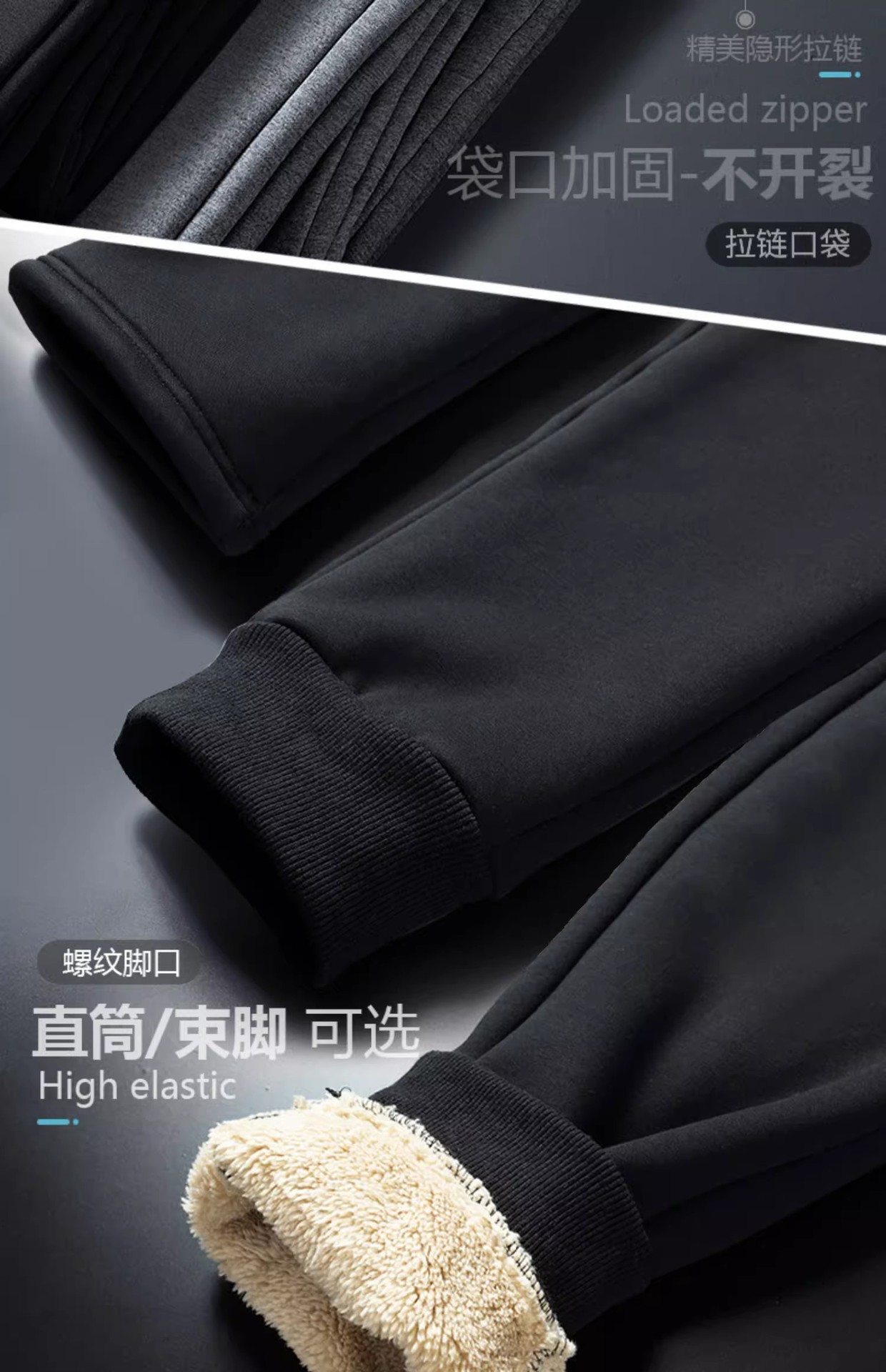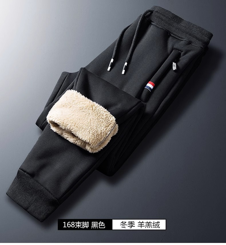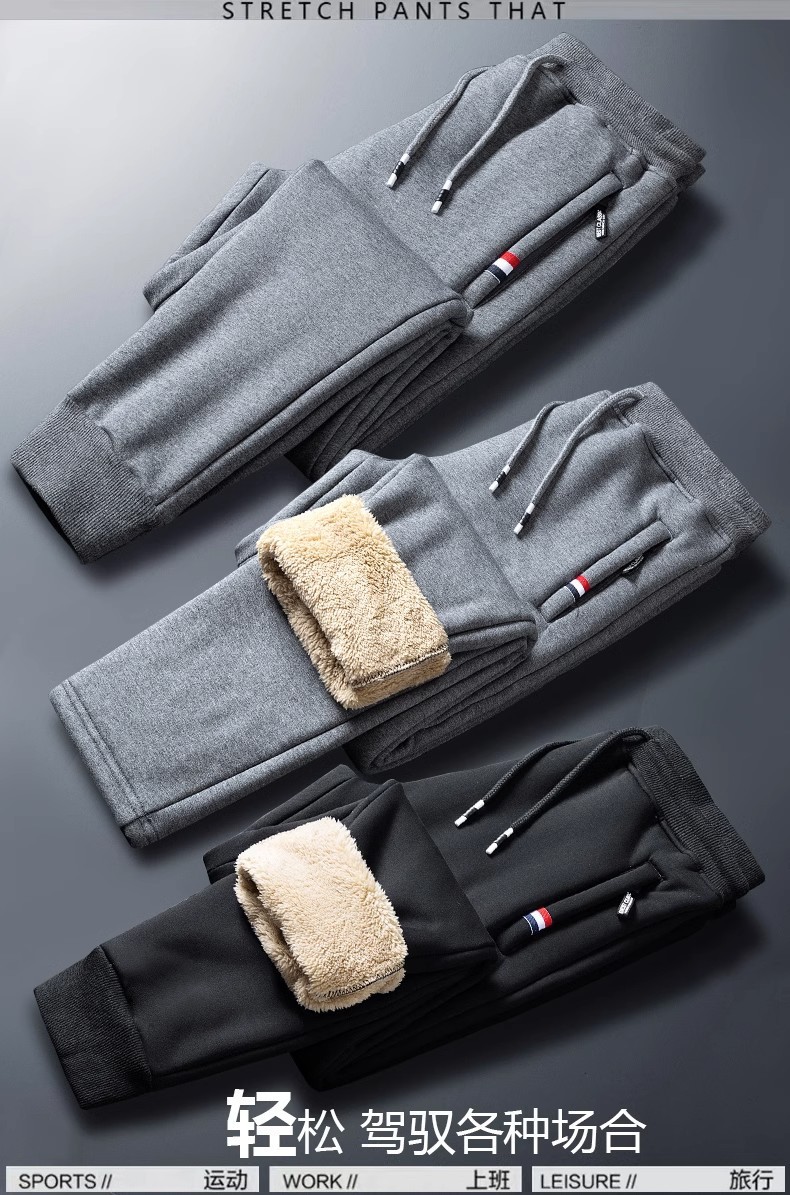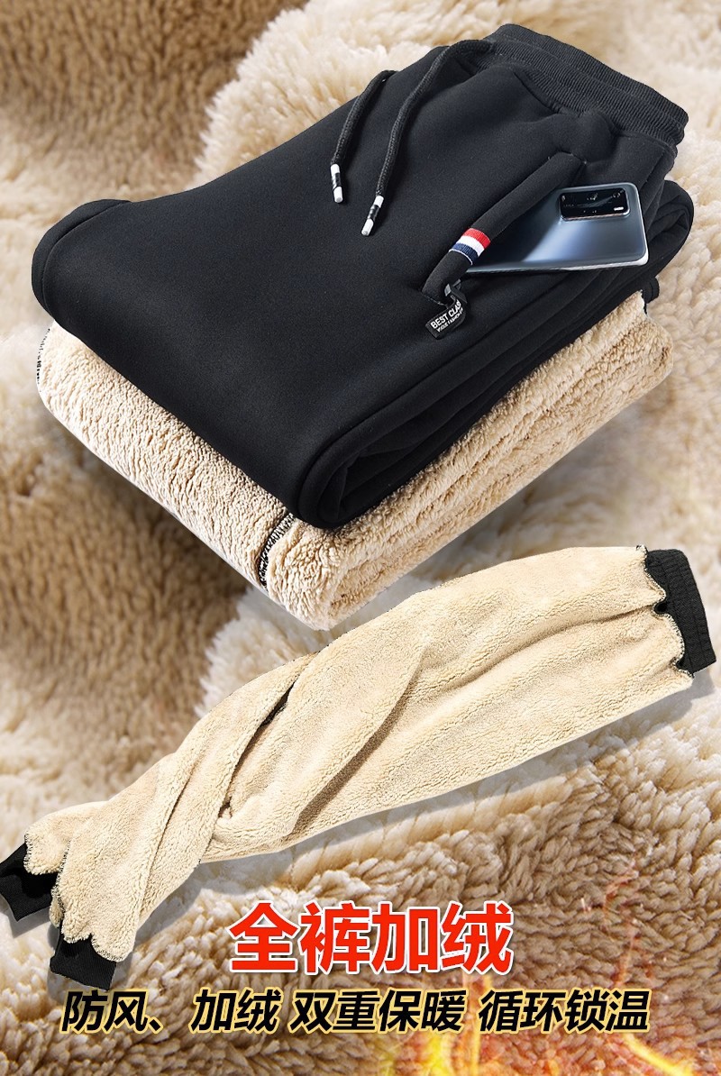 男士加绒裤子男加厚运动长裤秋冬季保暖羊羔绒秋冬宽松大码休闲裤