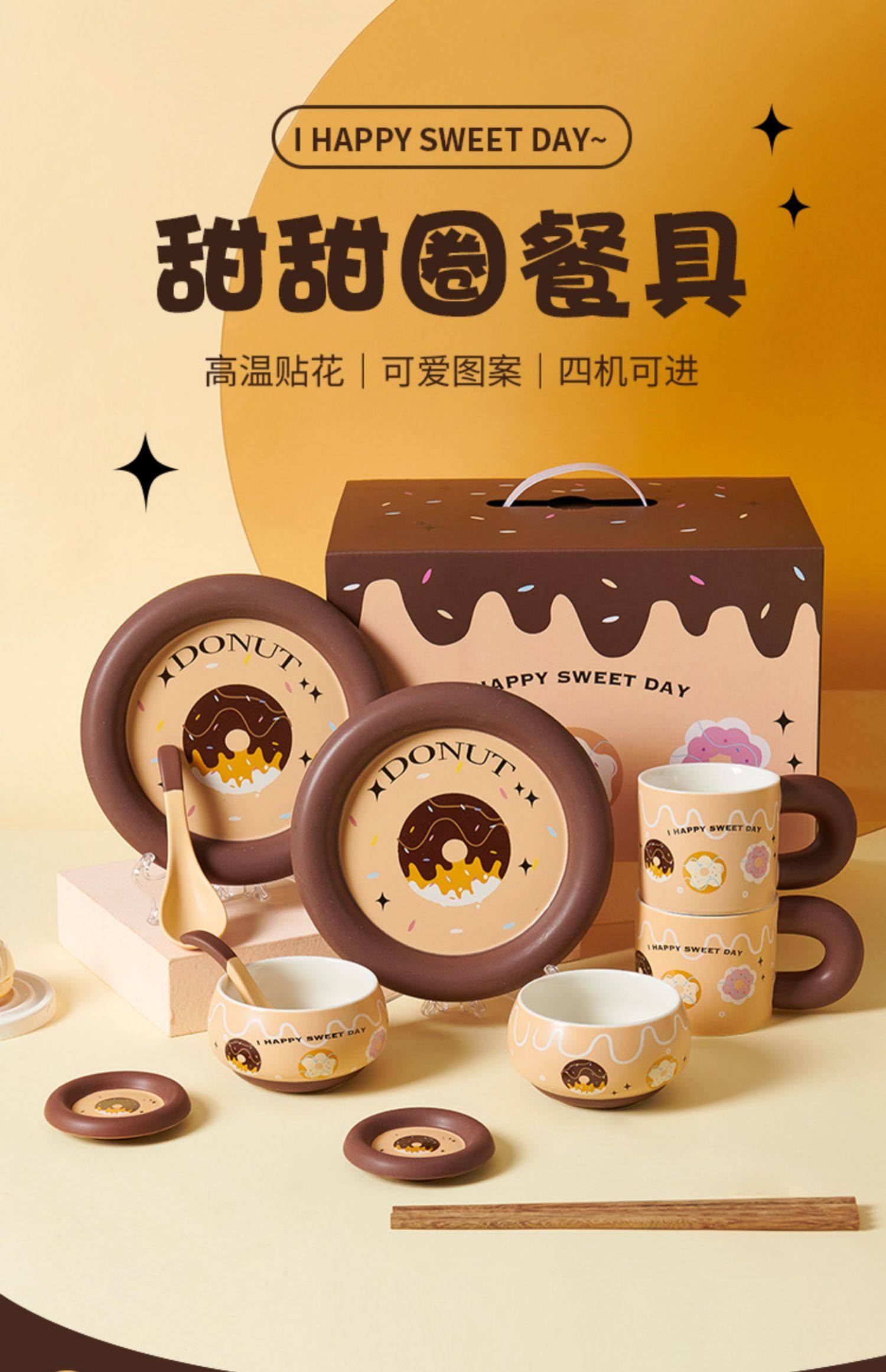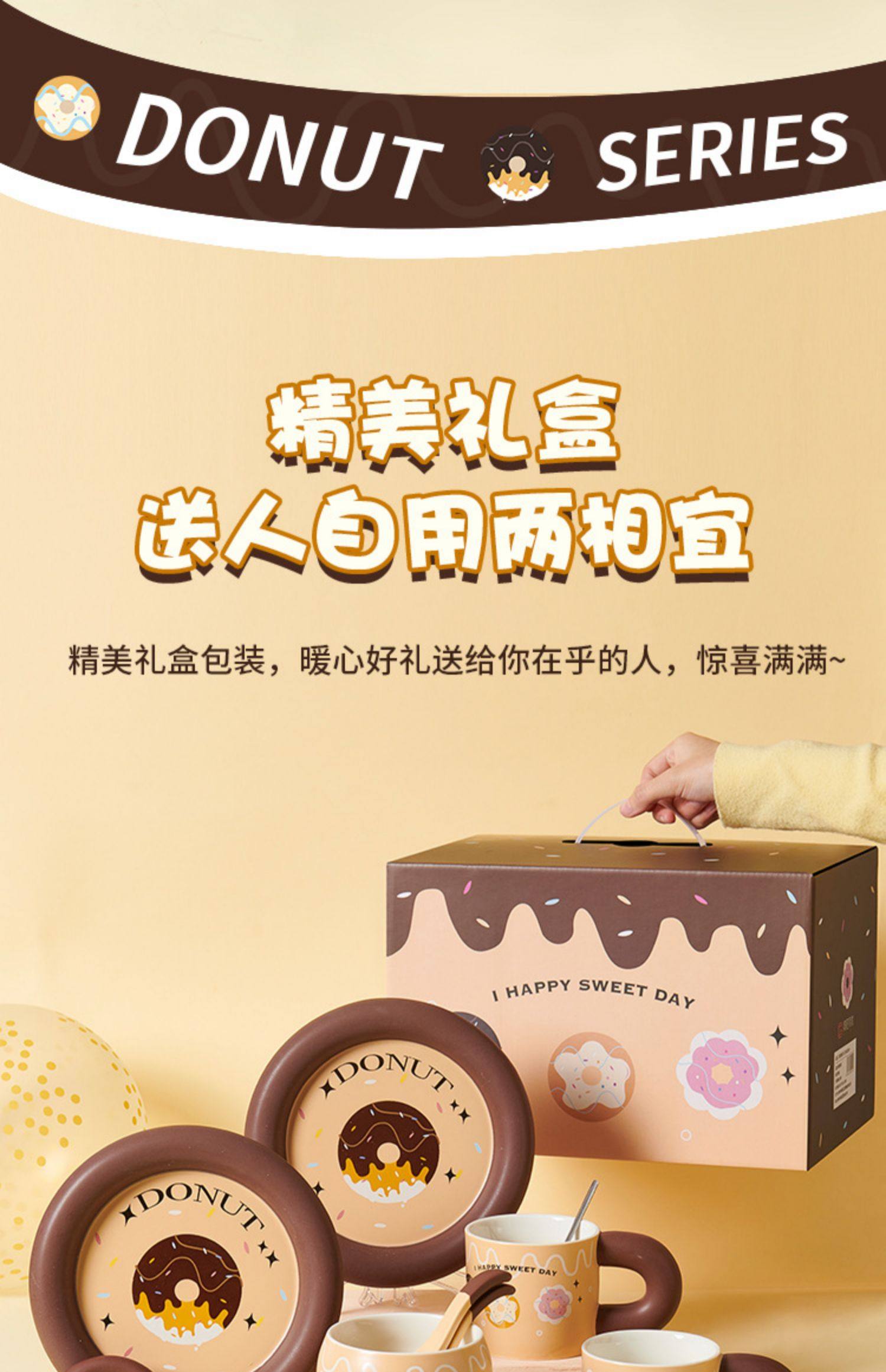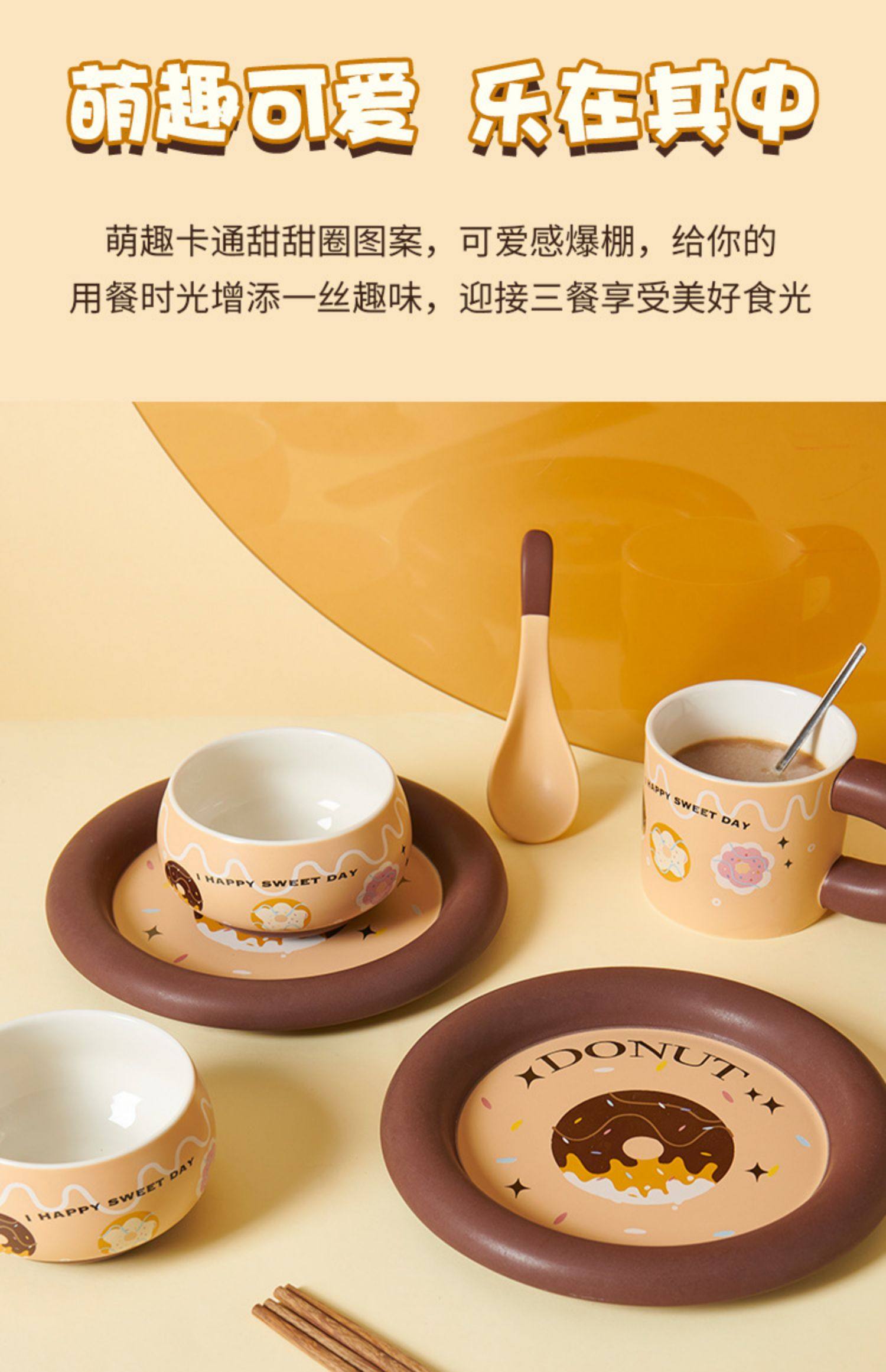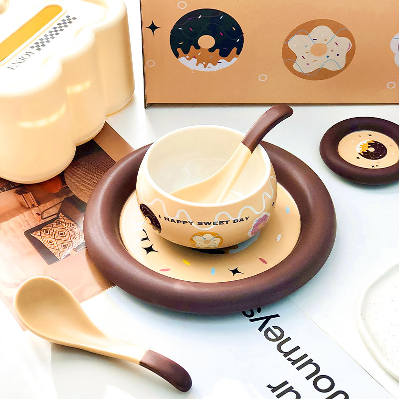 2024新款可爱餐具碗盘套装1-2人食伴手礼送礼碗碟杯子勺子套装