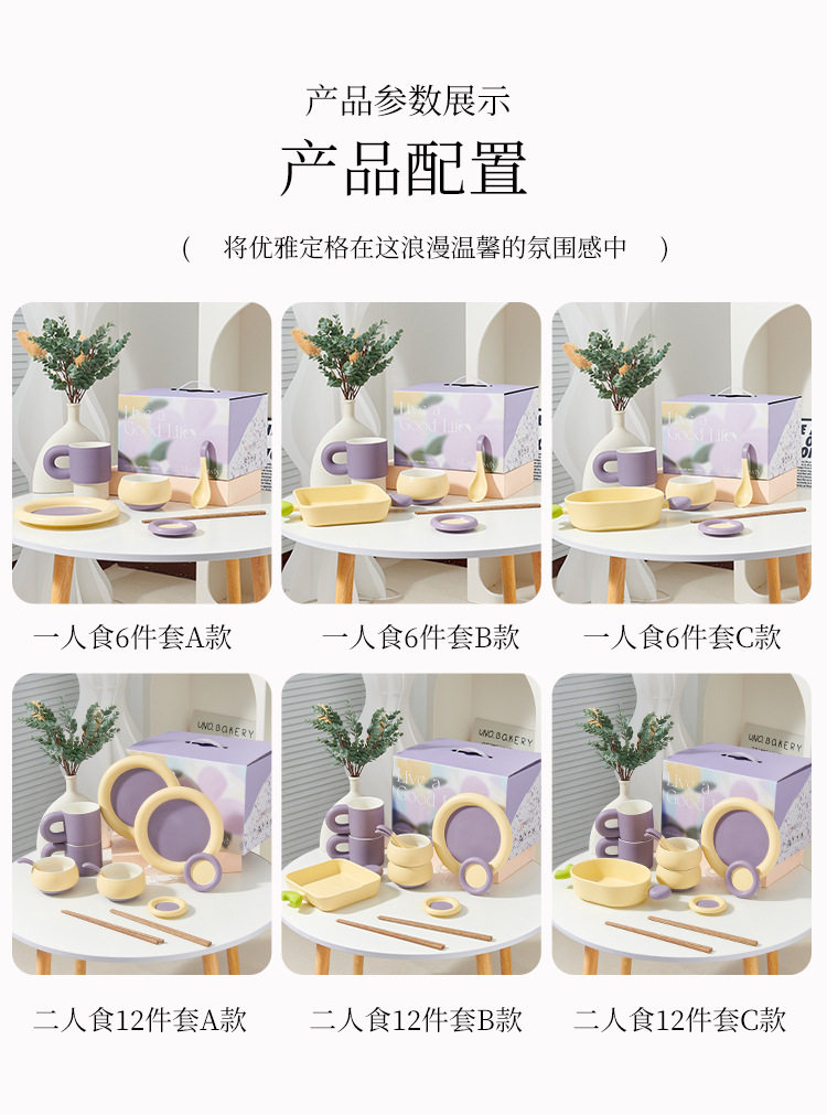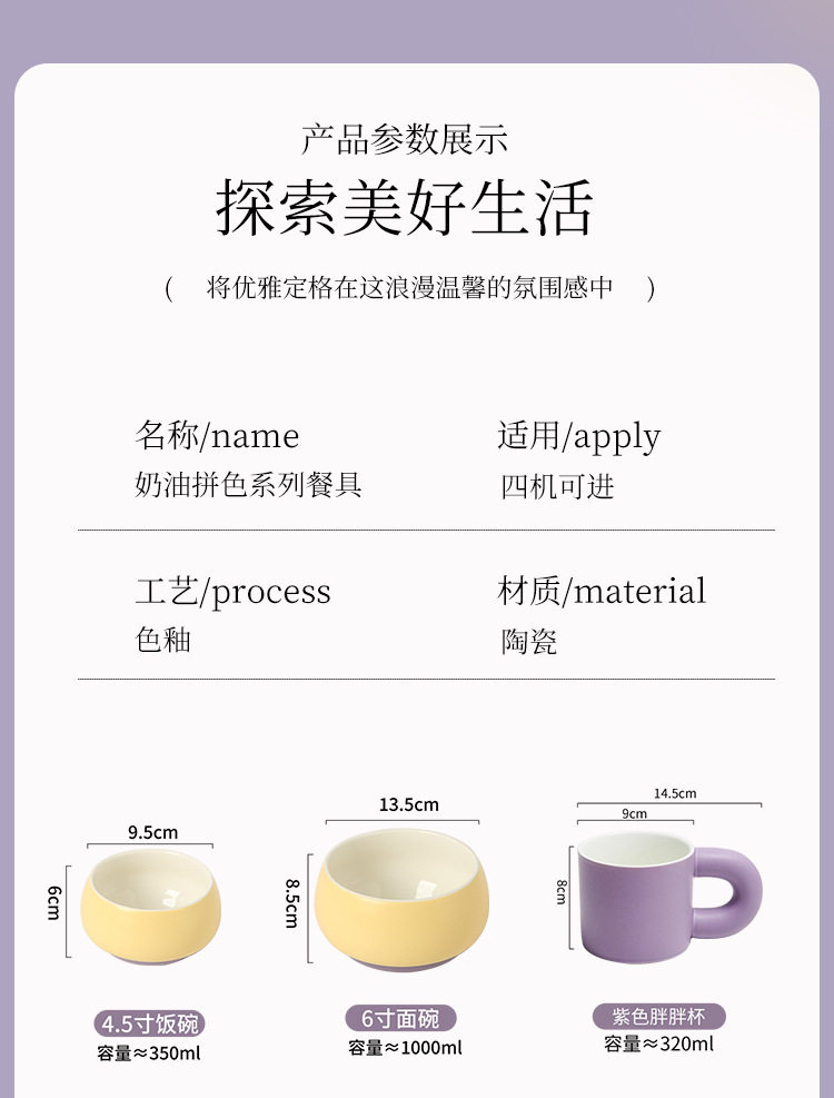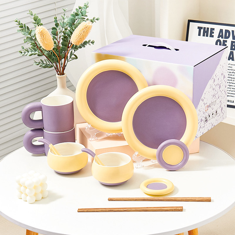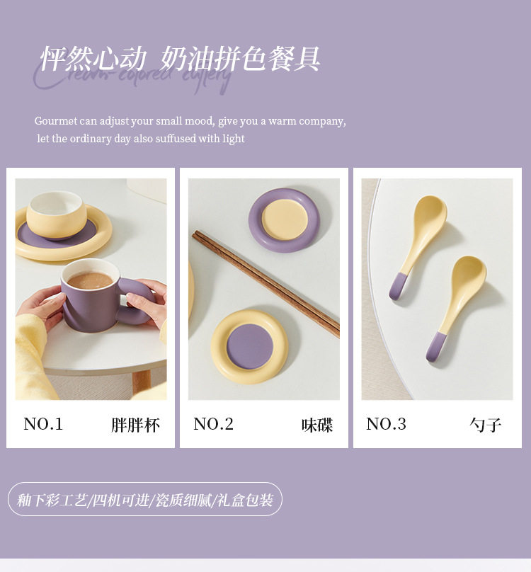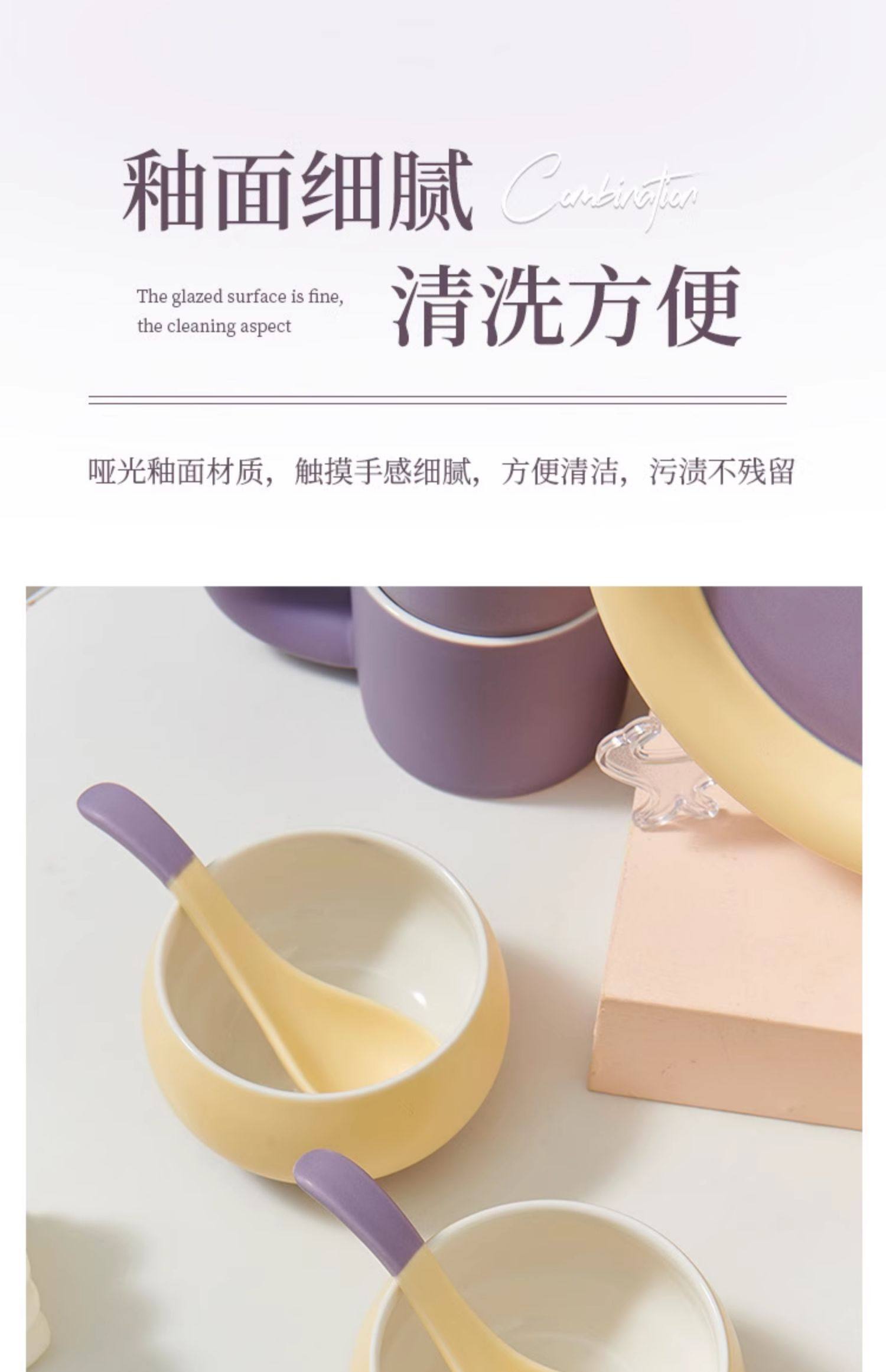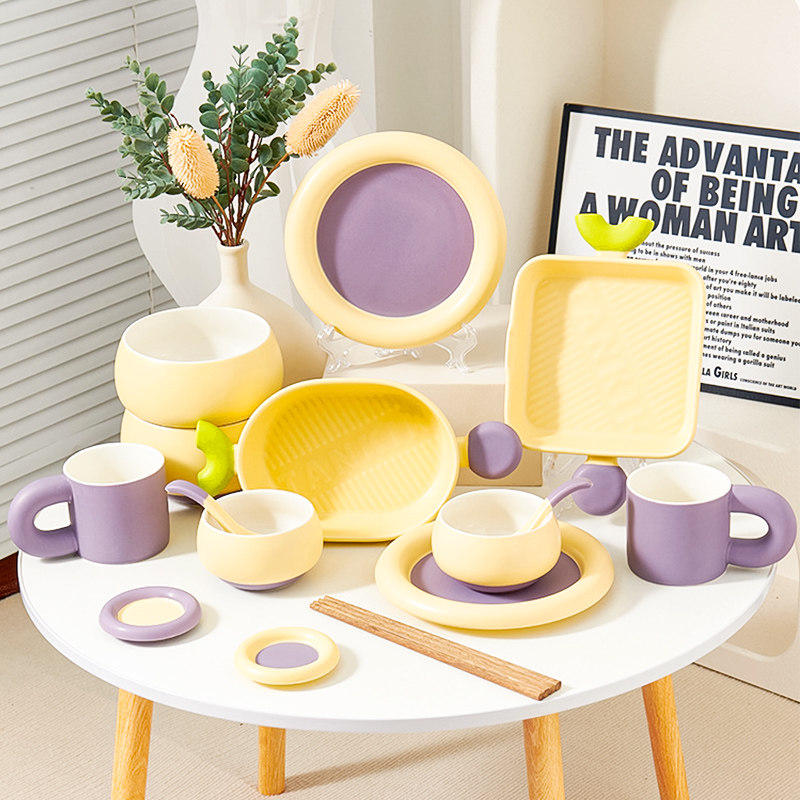 奶油拼色系列创意家用陶瓷晚盘组合高颜值碗筷碗碟简约风餐具套装