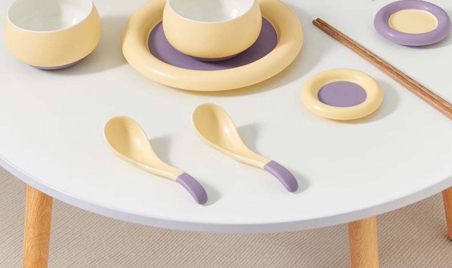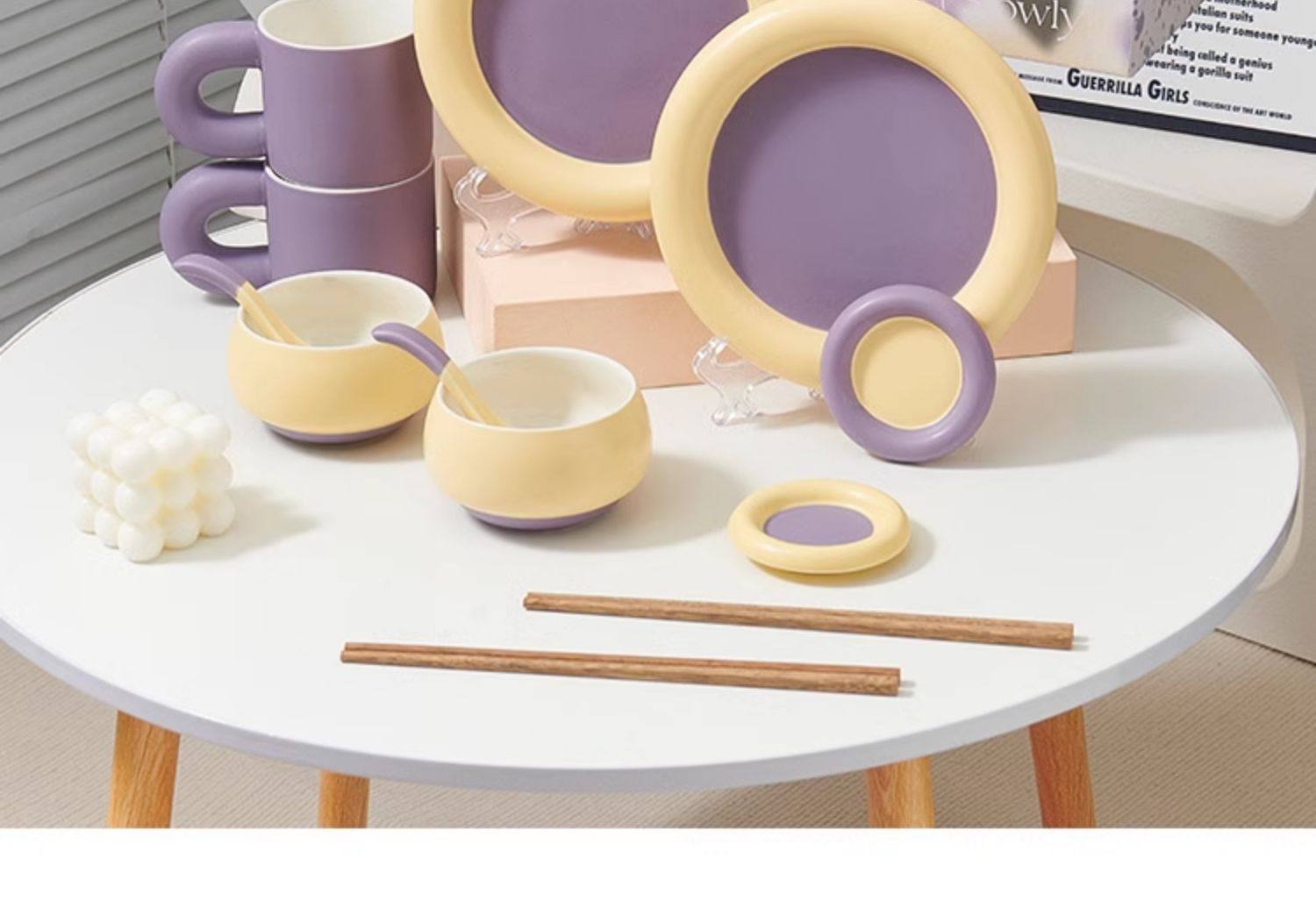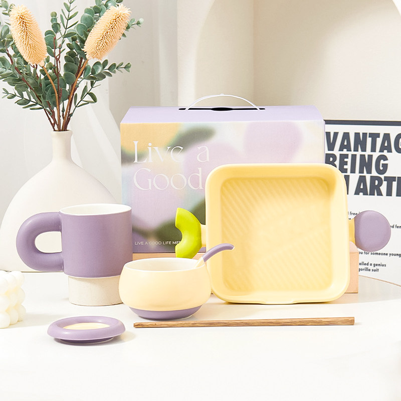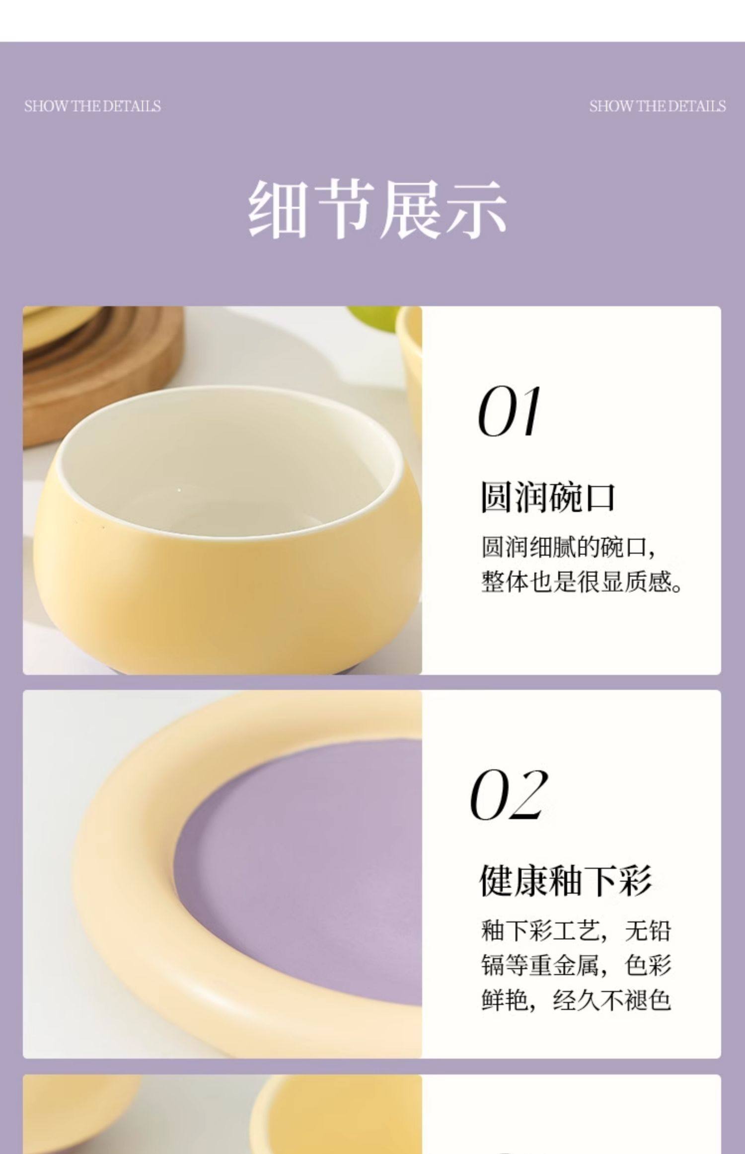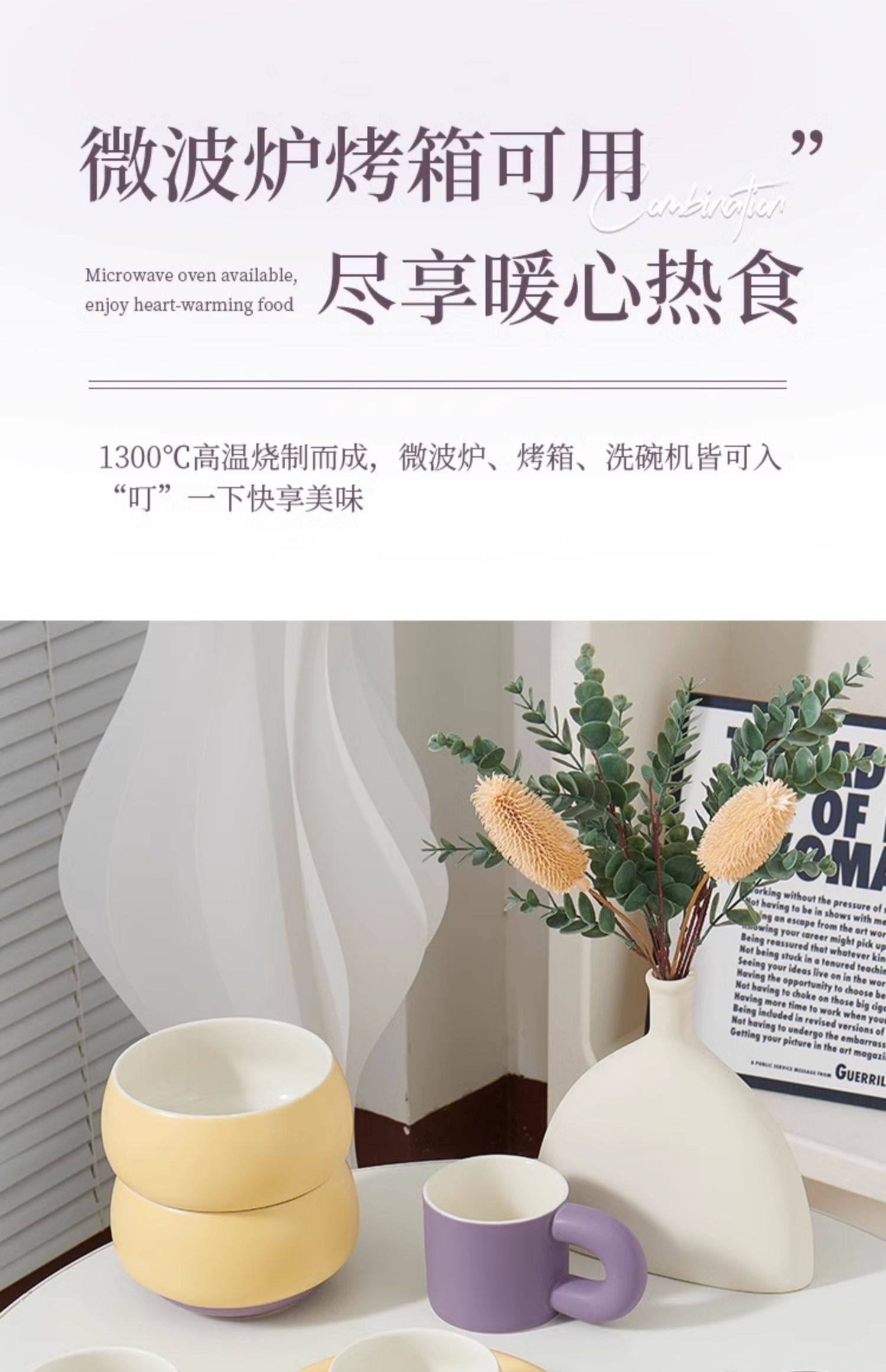 奶油拼色系列创意家用陶瓷晚盘组合高颜值碗筷碗碟简约风餐具套装