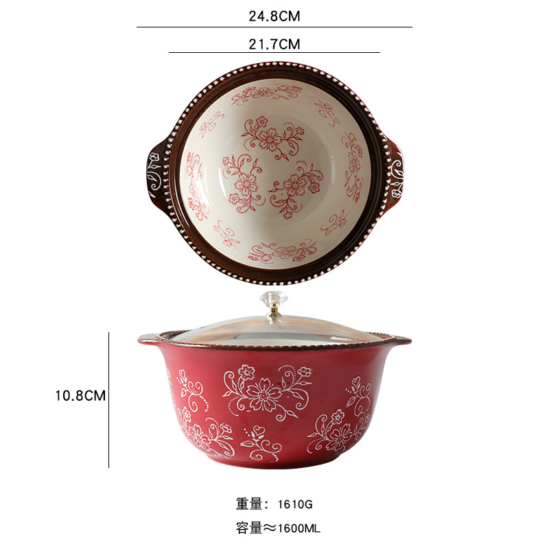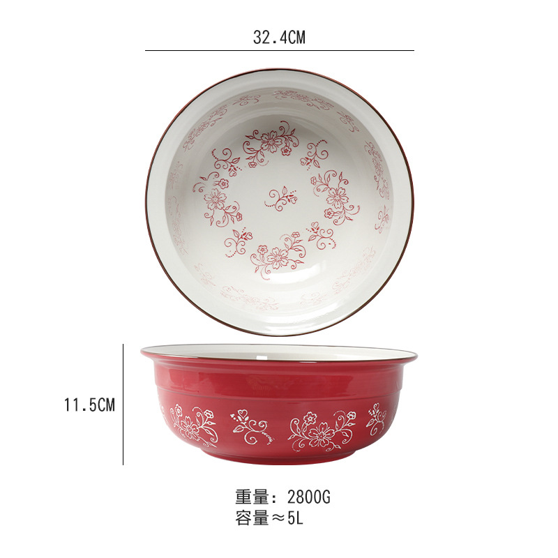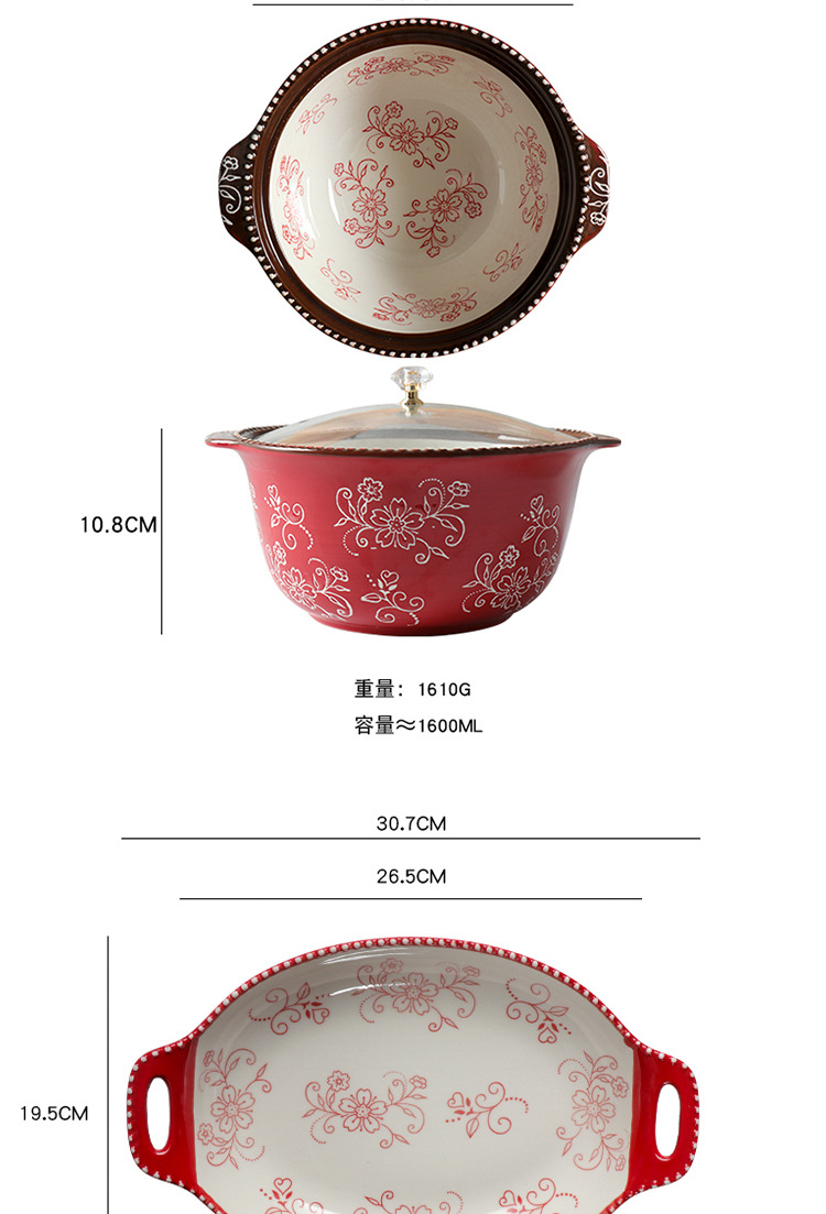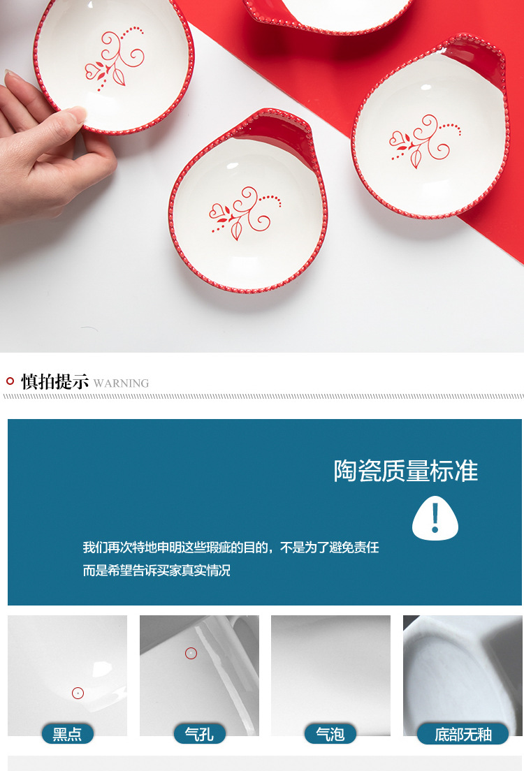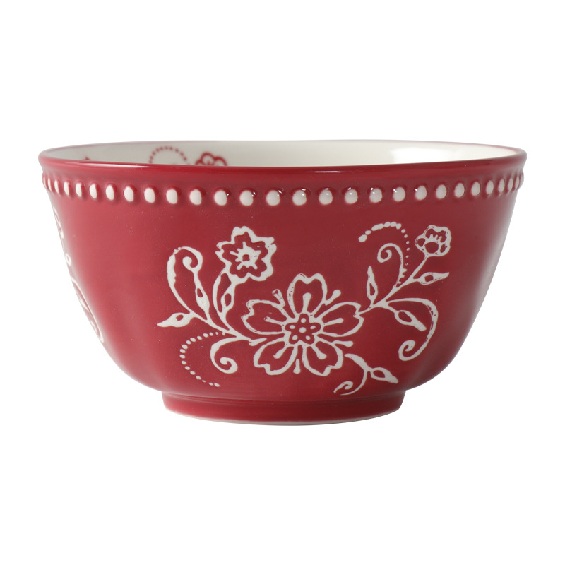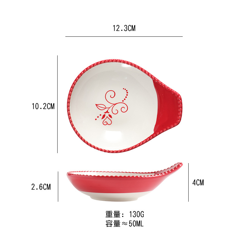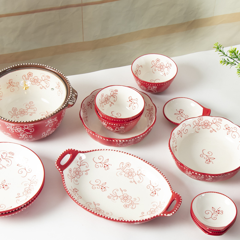 (红勾花)家用陶瓷餐具ins风米饭碗高温釉下彩花型碗高颜值圆盘