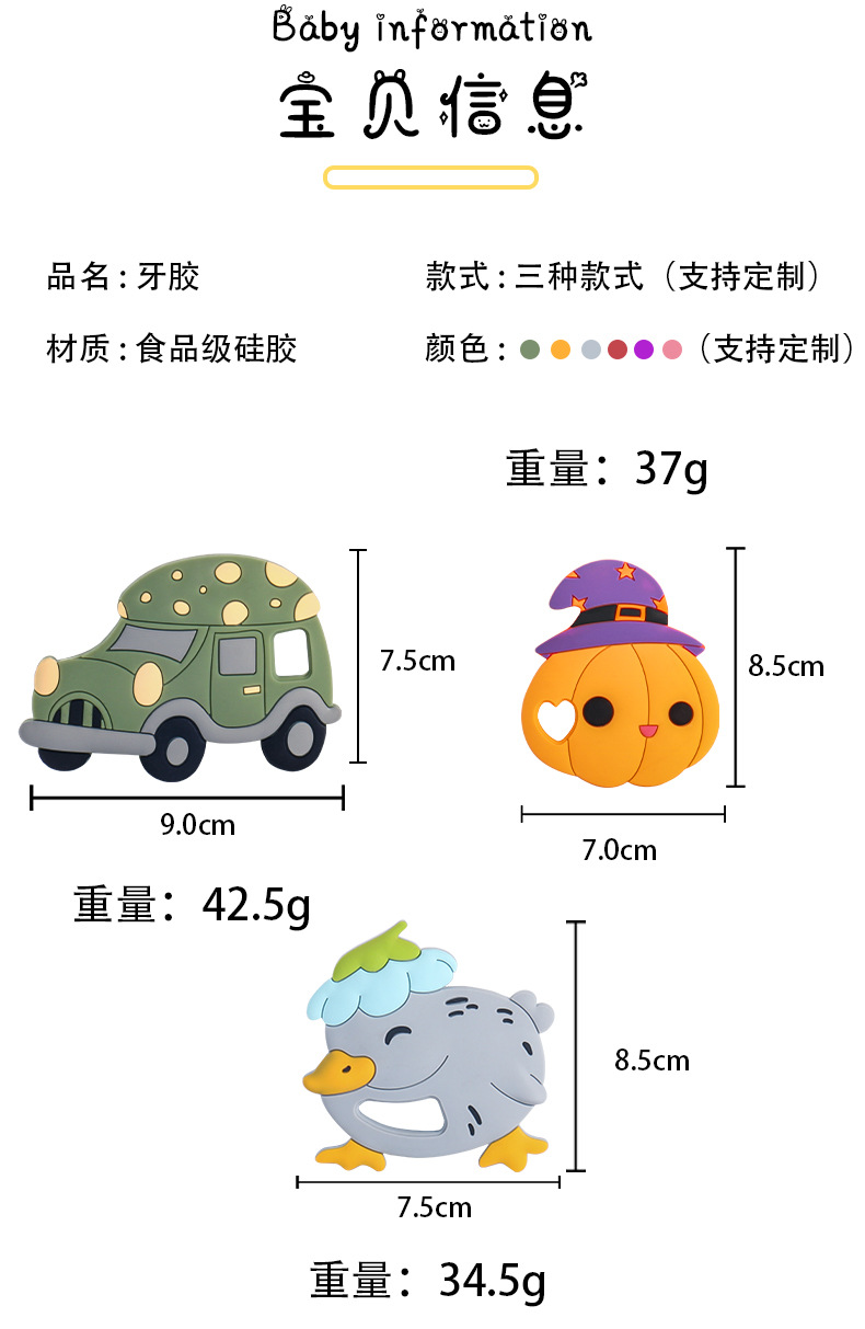 婴儿牙胶圣诞节硅胶卡通牙胶万圣节食品级牙胶出牙玩具现货批发