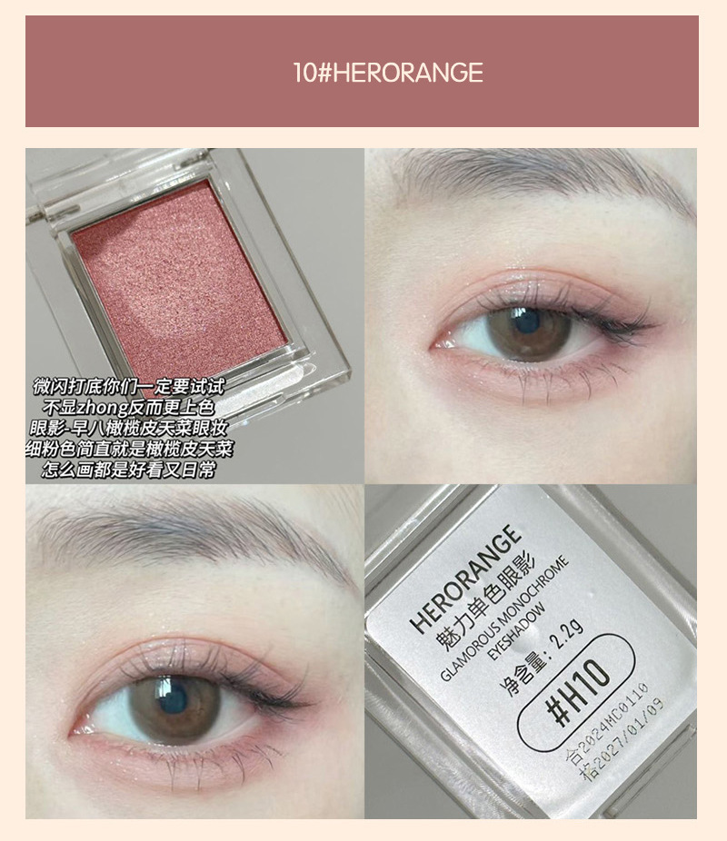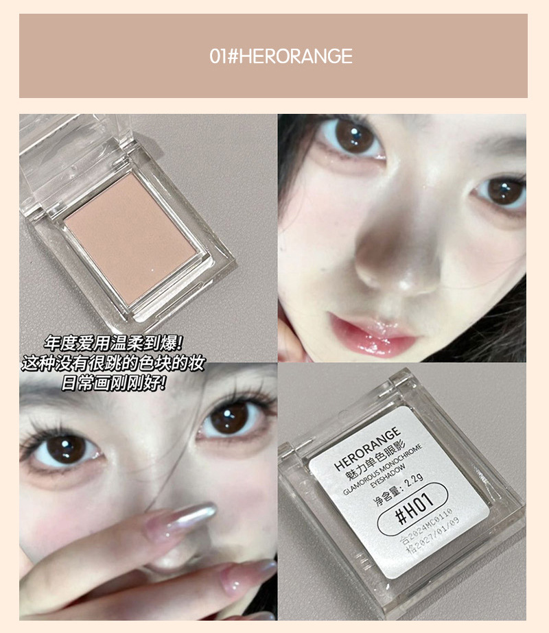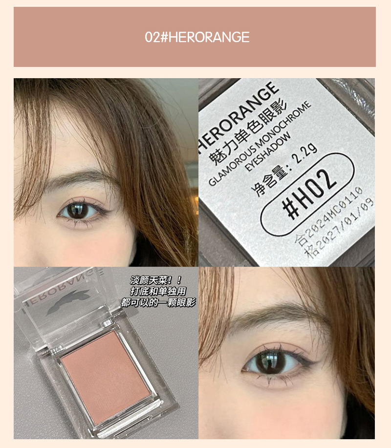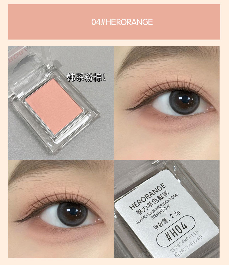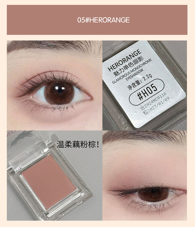 HERORANGE~魅力单色眼影低饱和珠光哑光粉质细腻打底色女平价彩妆