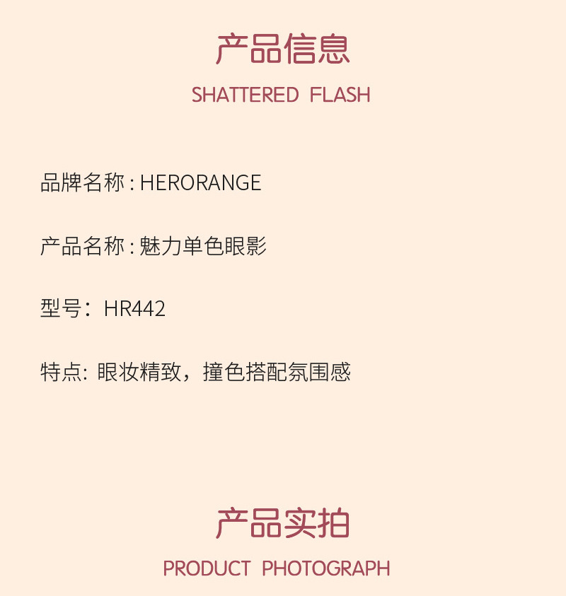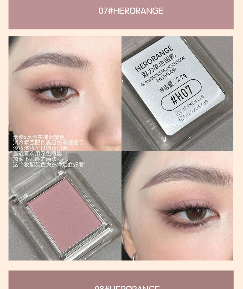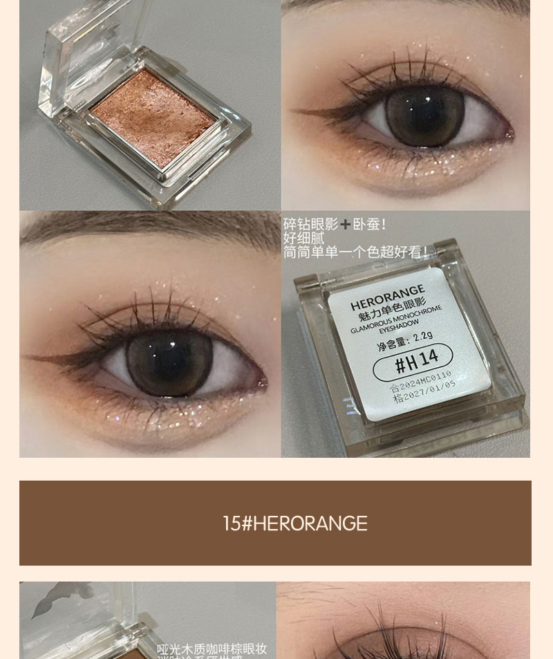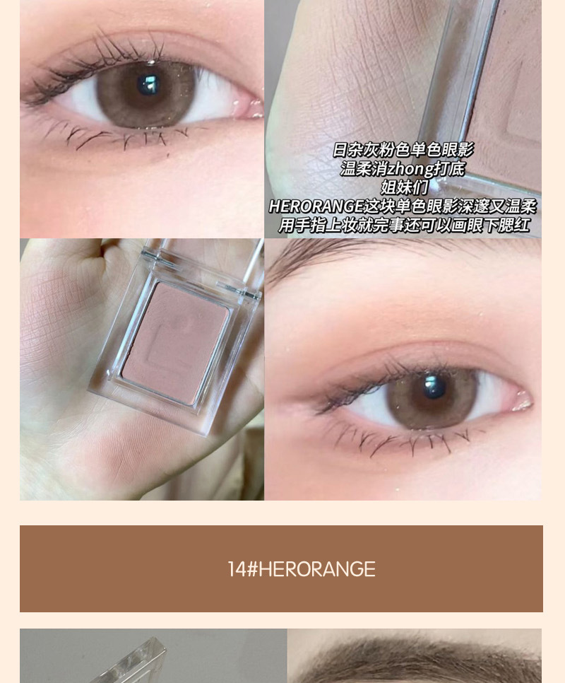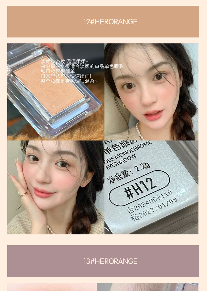 HERORANGE~魅力单色眼影低饱和珠光哑光粉质细腻打底色女平价彩妆