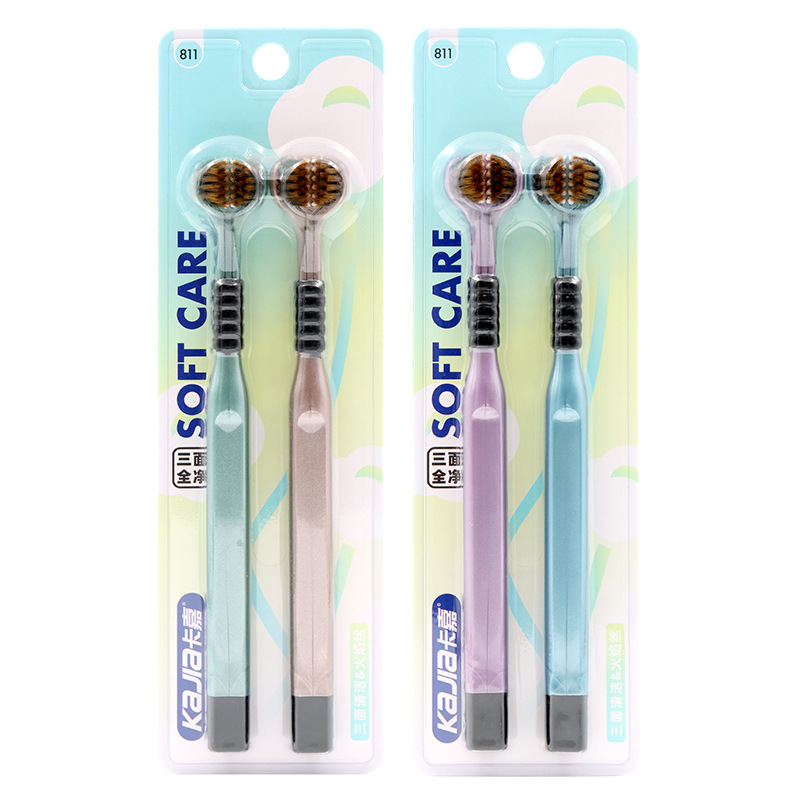 三面牙刷卡嘉两支装高端软毛火焰丝软毛牙刷超密高端牙刷批发牙刷