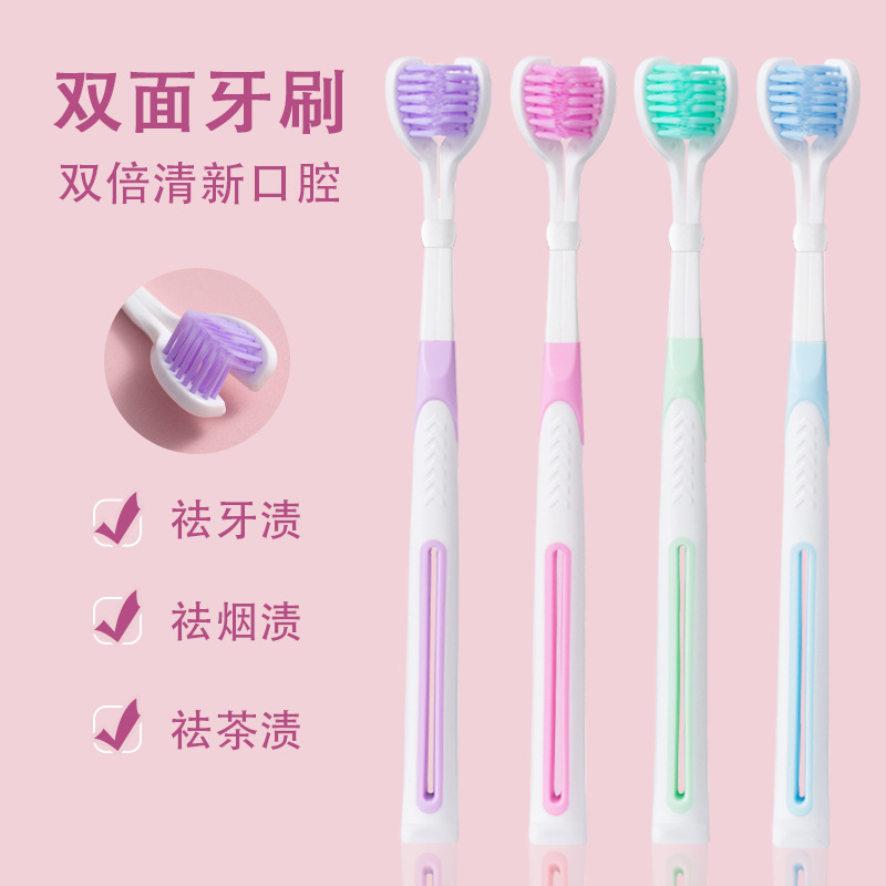 雅琳娜爆款三面牙刷软毛成人刮舌苔三头U型马卡龙色厂家直销418