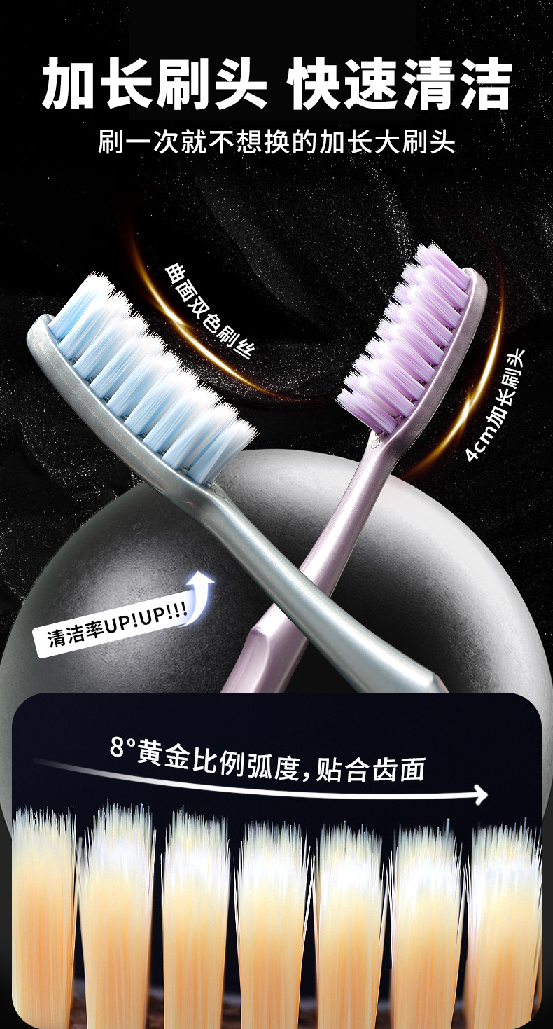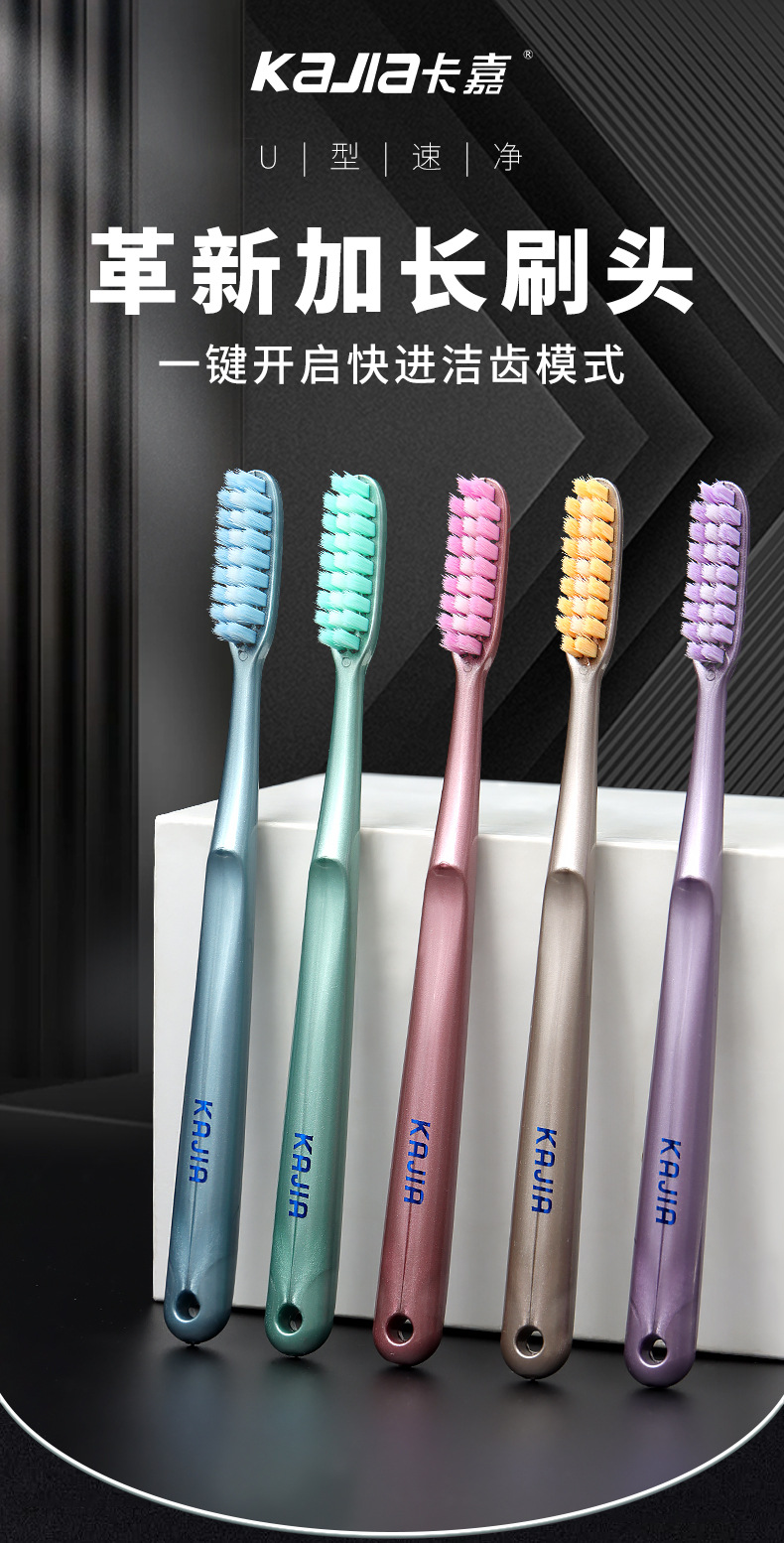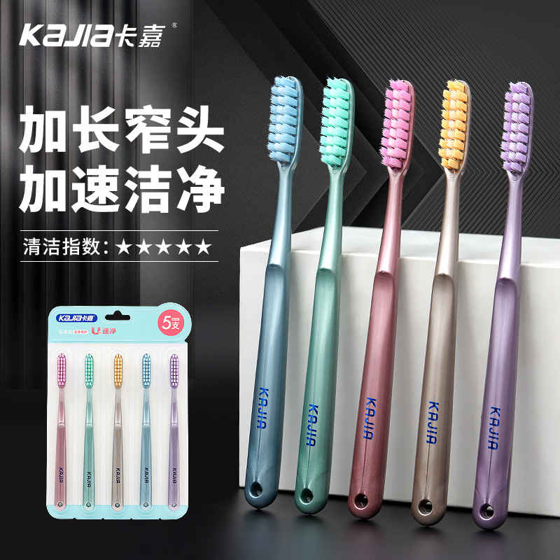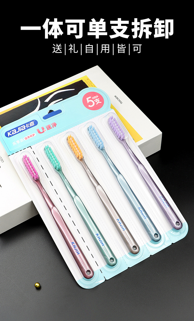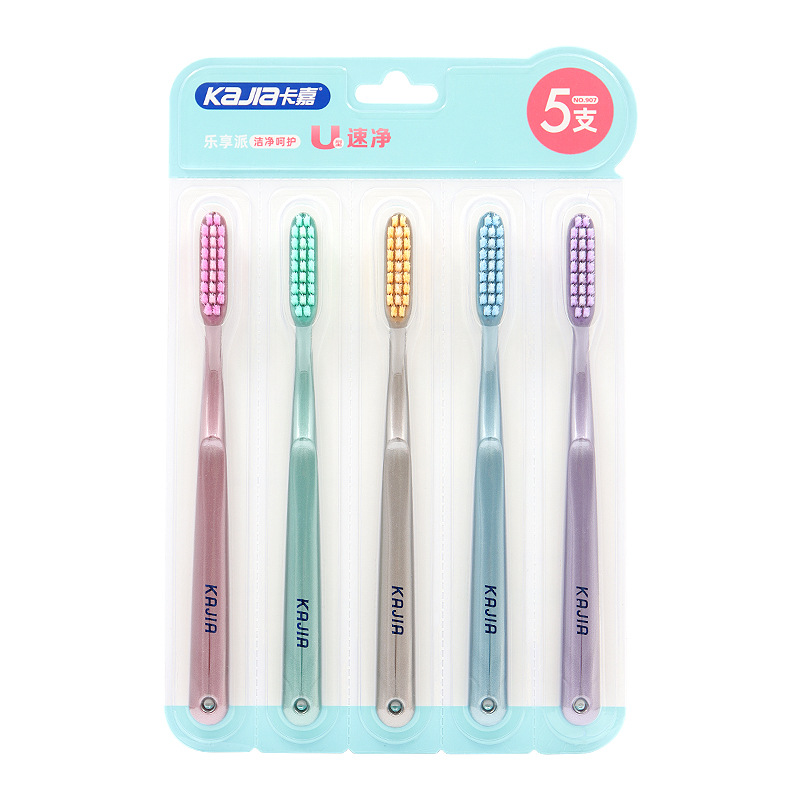 五支装马卡龙家庭款长头软毛牙刷高档成人家用情侣不掉毛牙刷批发