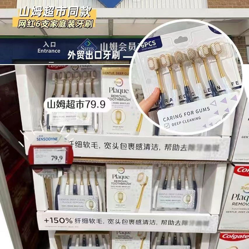 山姆同款硬毛牙刷成人6支家庭用清洁呵护牙龈细软毛牙刷