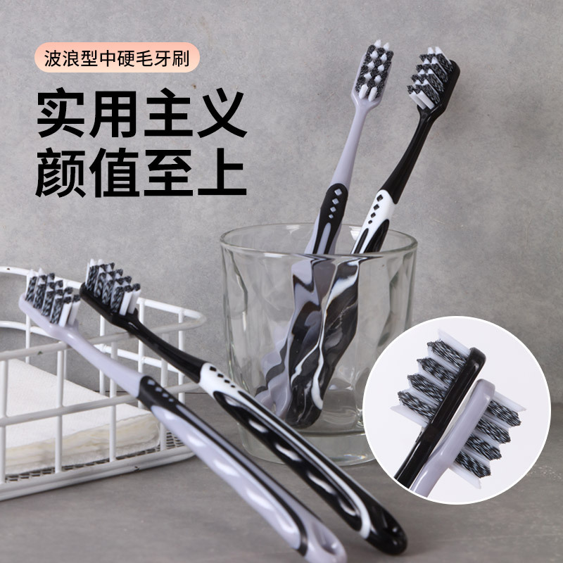 新款波浪型中硬毛牙刷高档螺旋杜邦刷毛牙刷深度清洁男士成人牙刷