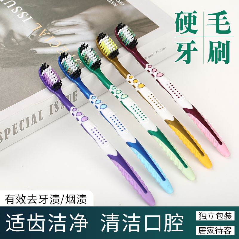 硬毛牙刷成人男大头去烟渍特硬毛去牙渍家庭装超市2元店5元店牙刷