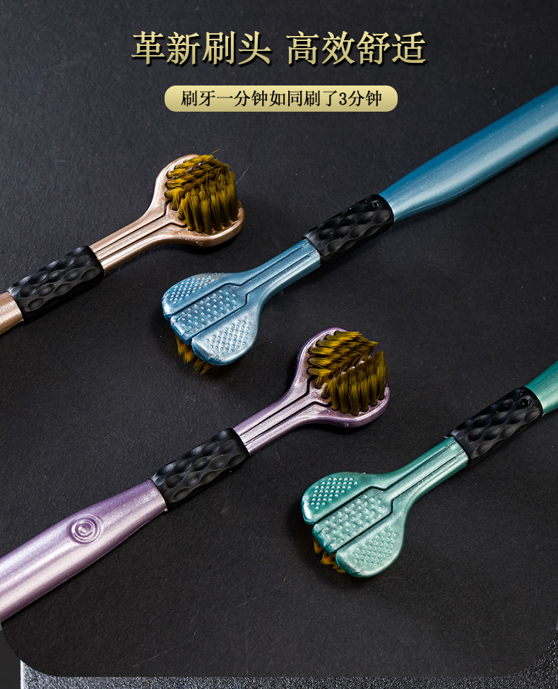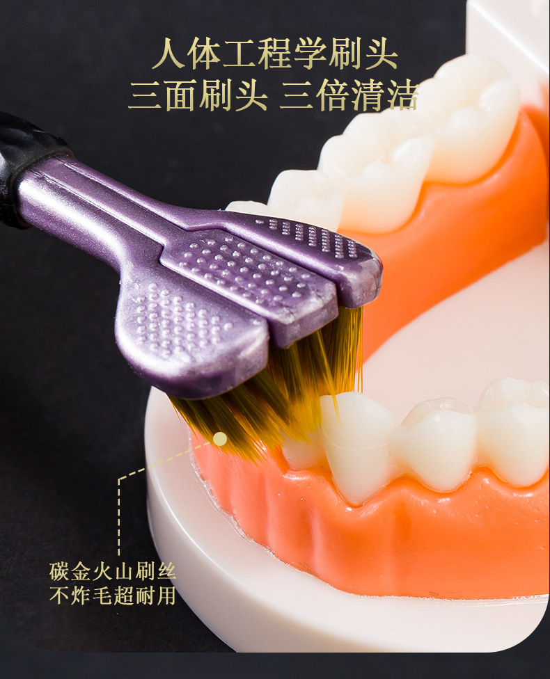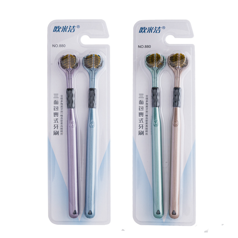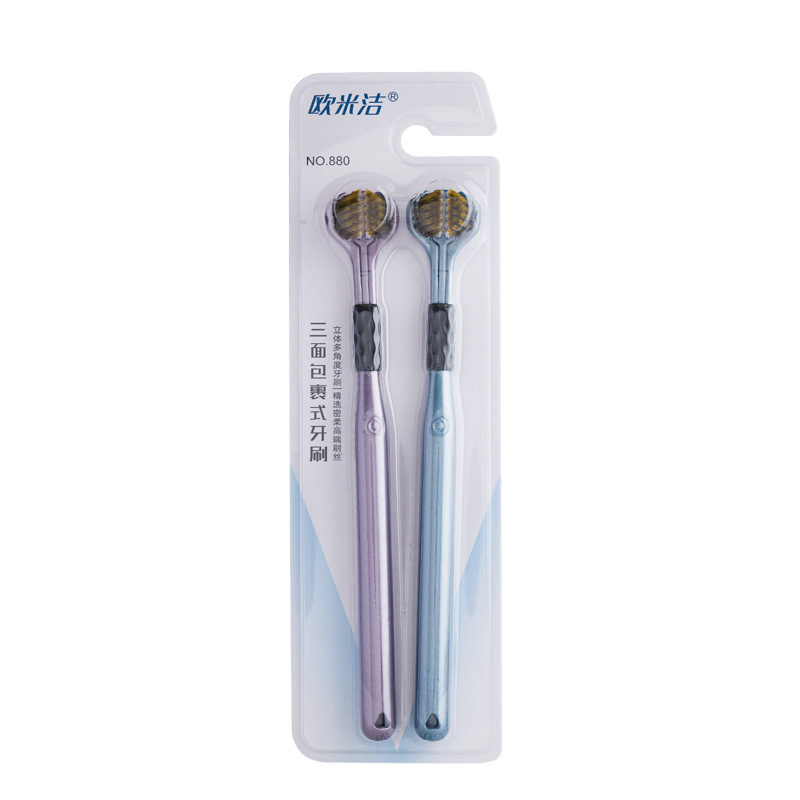三面牙刷软毛成人包裹360牙刷刮舌苔三头U型家用软毛三面2支装