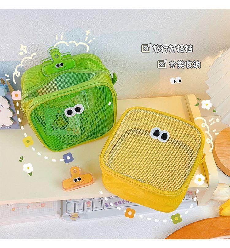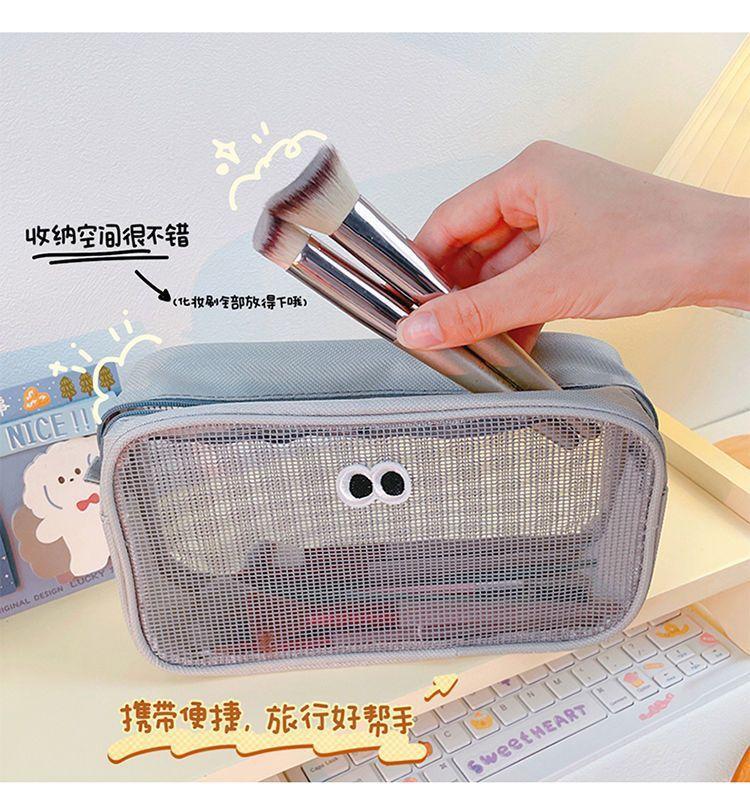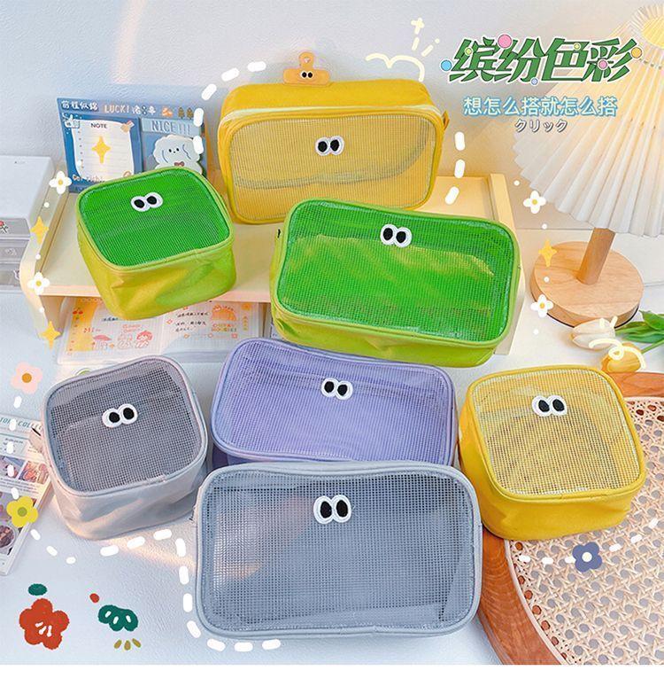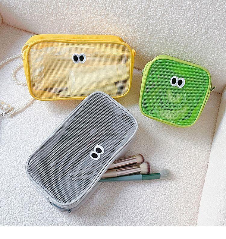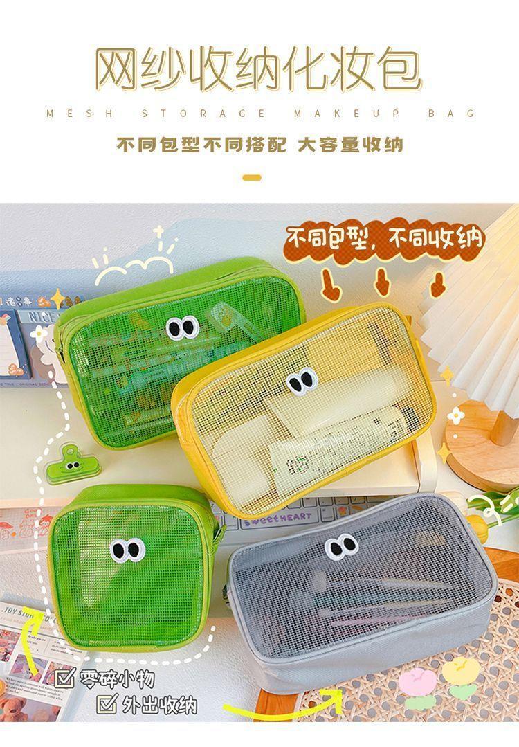 网纱化妆包立体大容量洗漱包旅行护肤品收纳小包大眼睛数码整理包