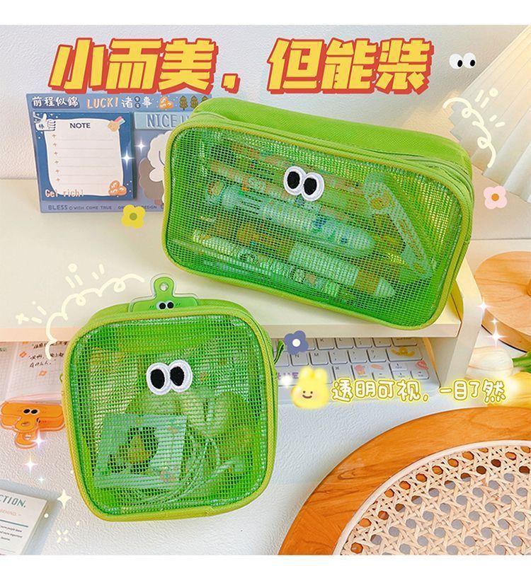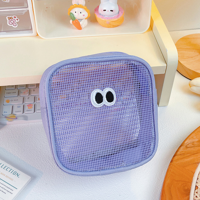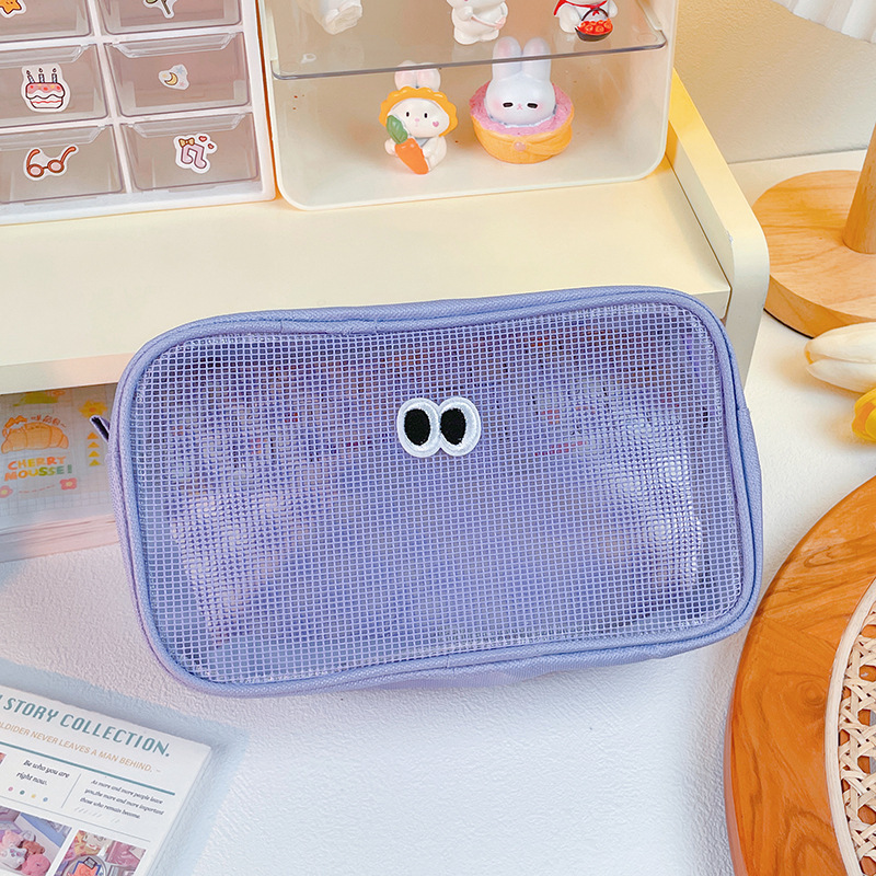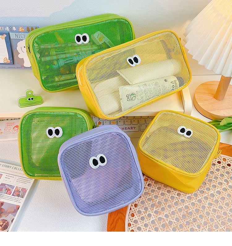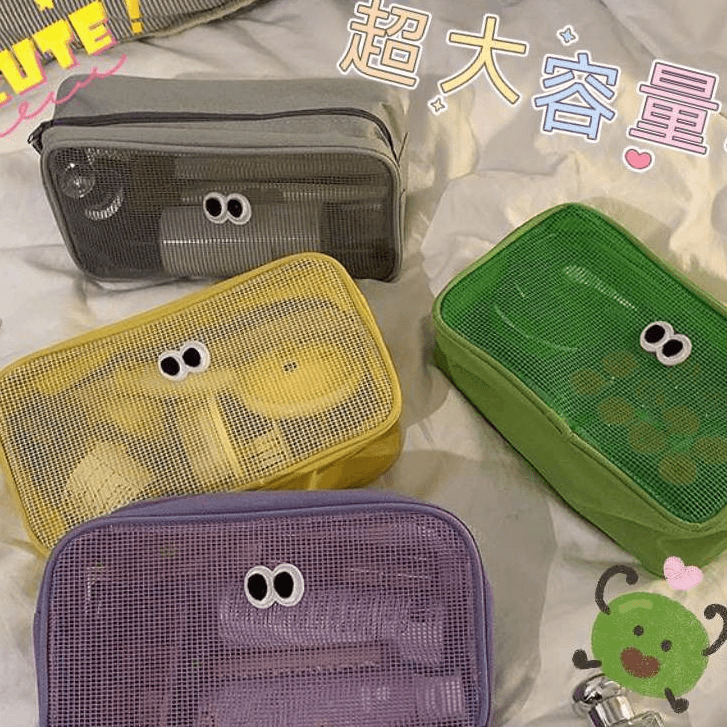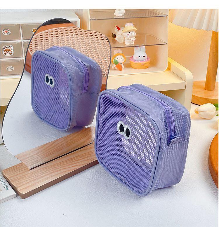 网纱化妆包立体大容量洗漱包旅行护肤品收纳小包大眼睛数码整理包