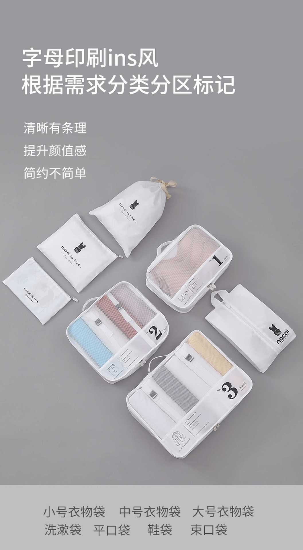 旅行收纳袋装行李箱七件套出差衣物整理分装袋内衣鞋子收纳整理包