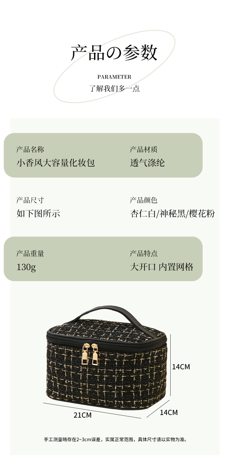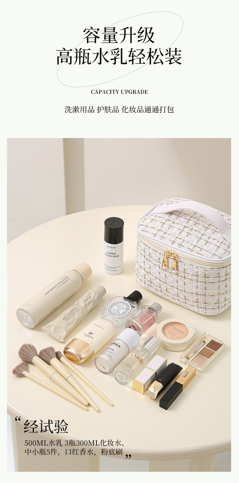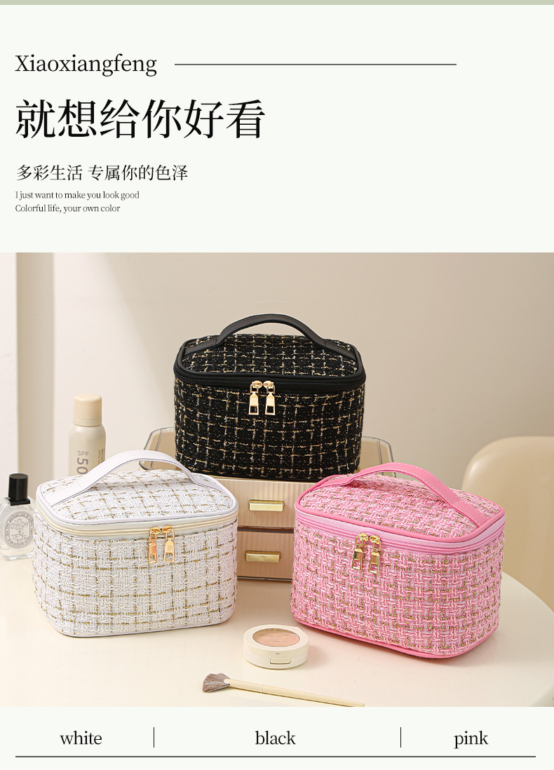 新款大容量小香风化妆包通勤旅游化妆品收纳包女士时尚手提洗漱包