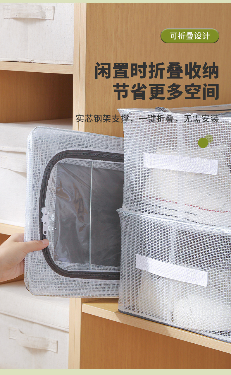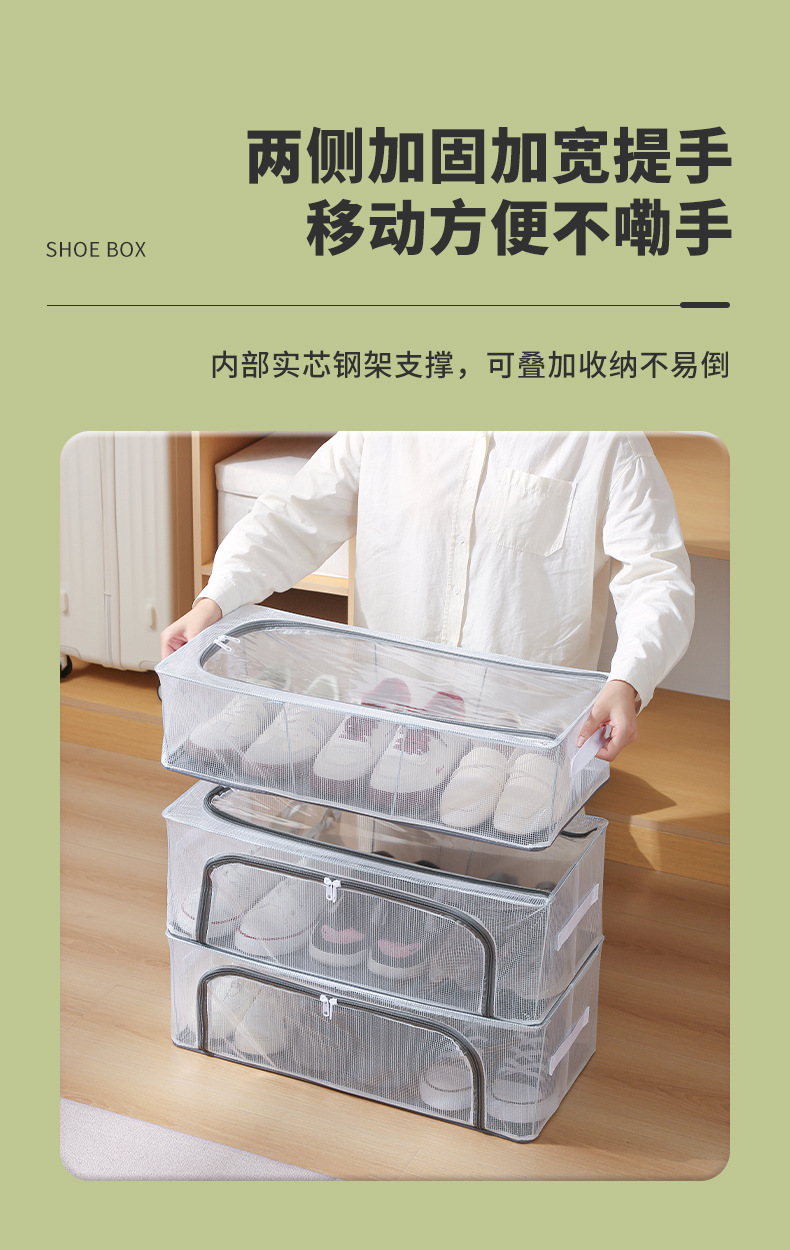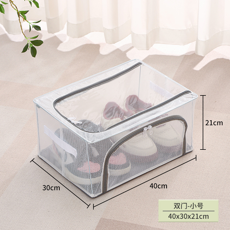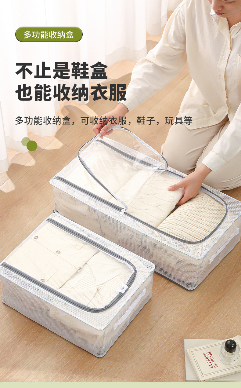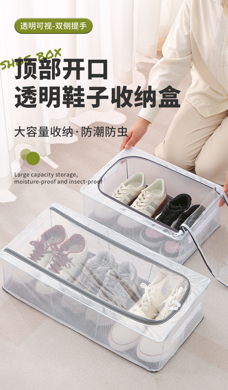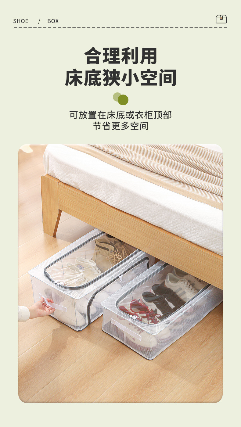 跨境床底收纳鞋盒透明PVC防尘潮衣服杂物收纳箱可折叠大号整理箱