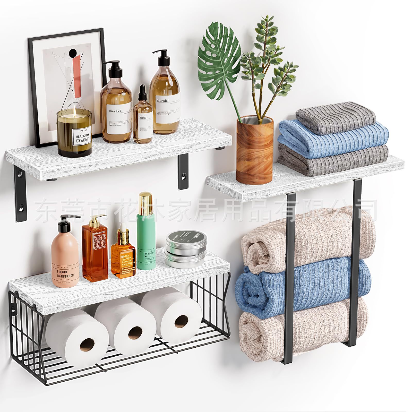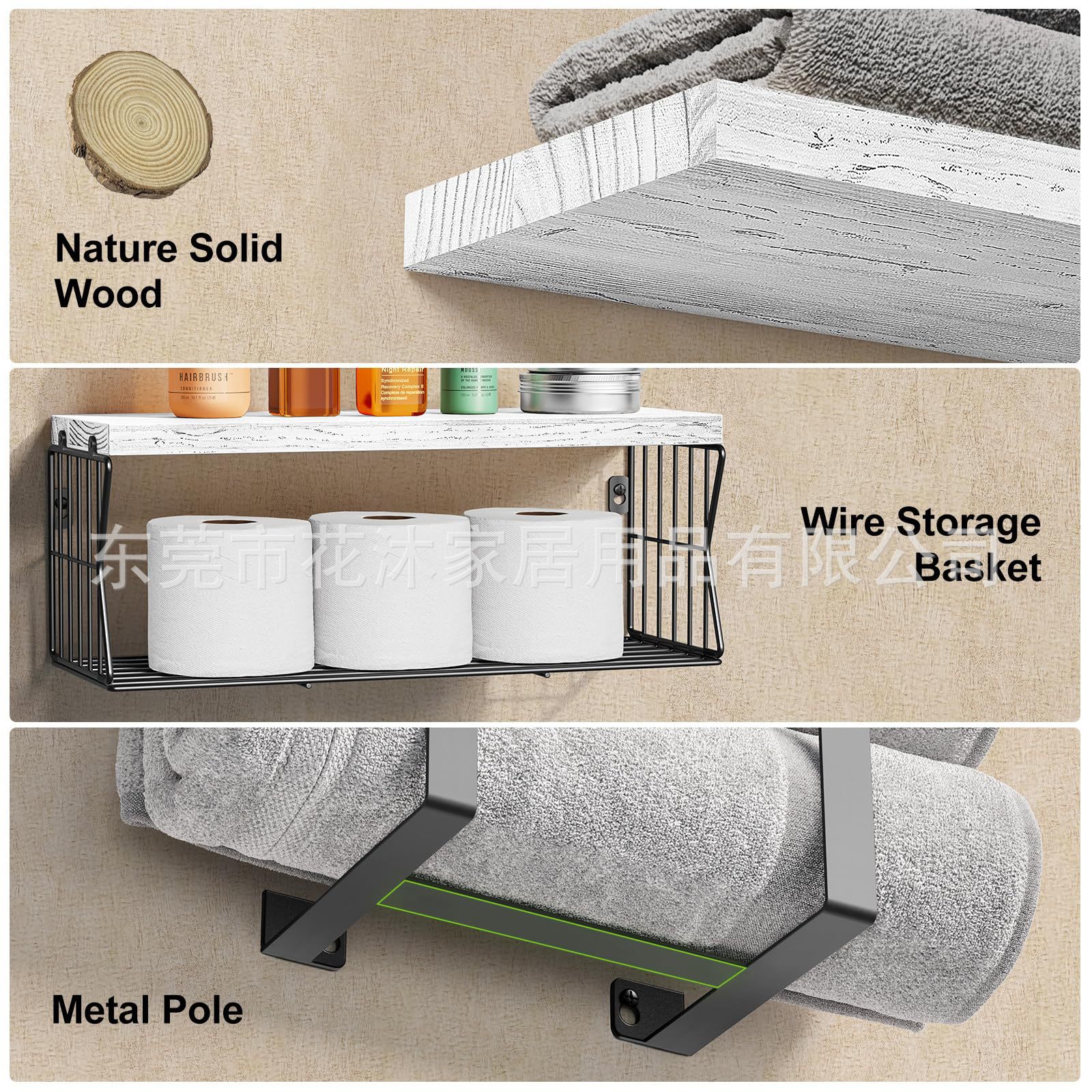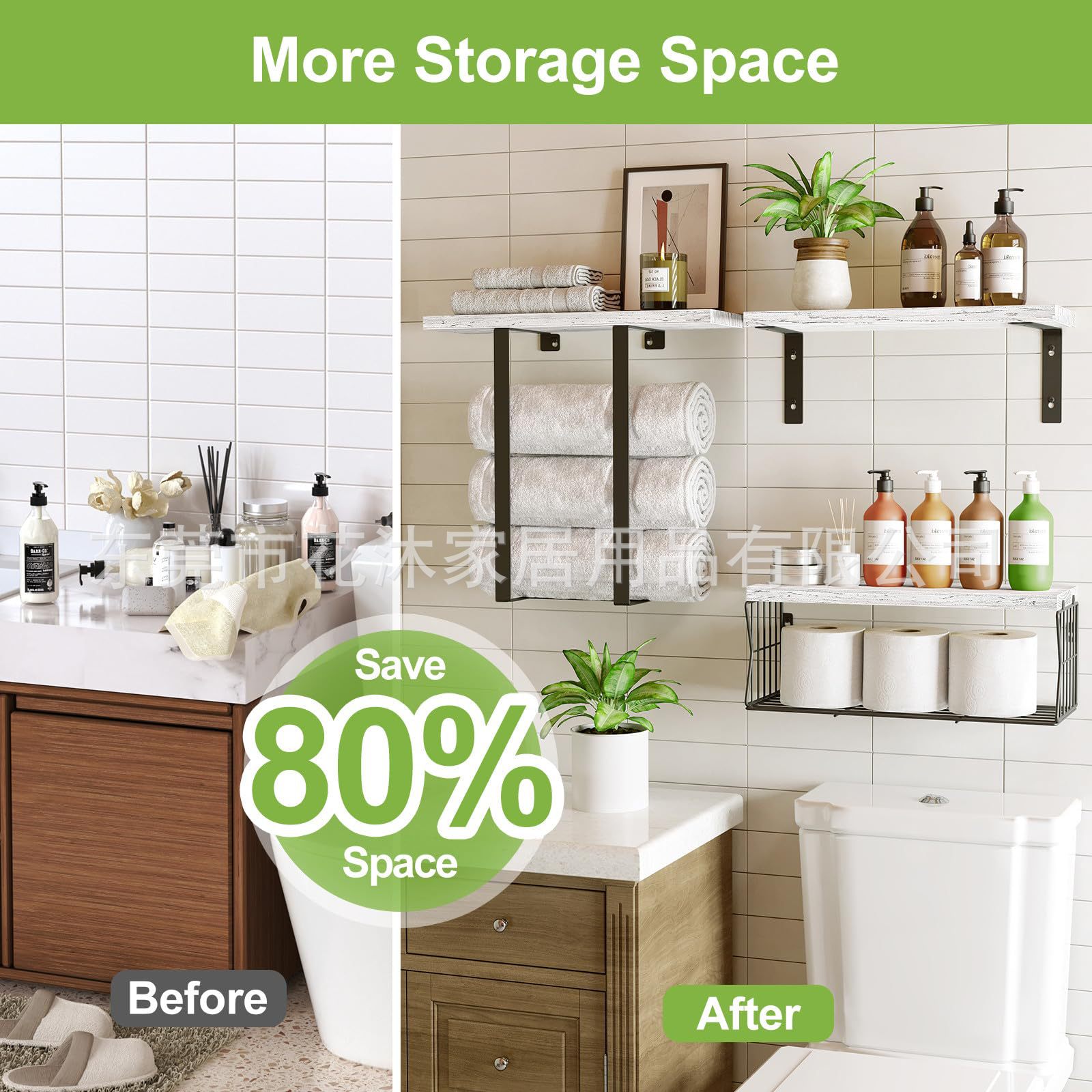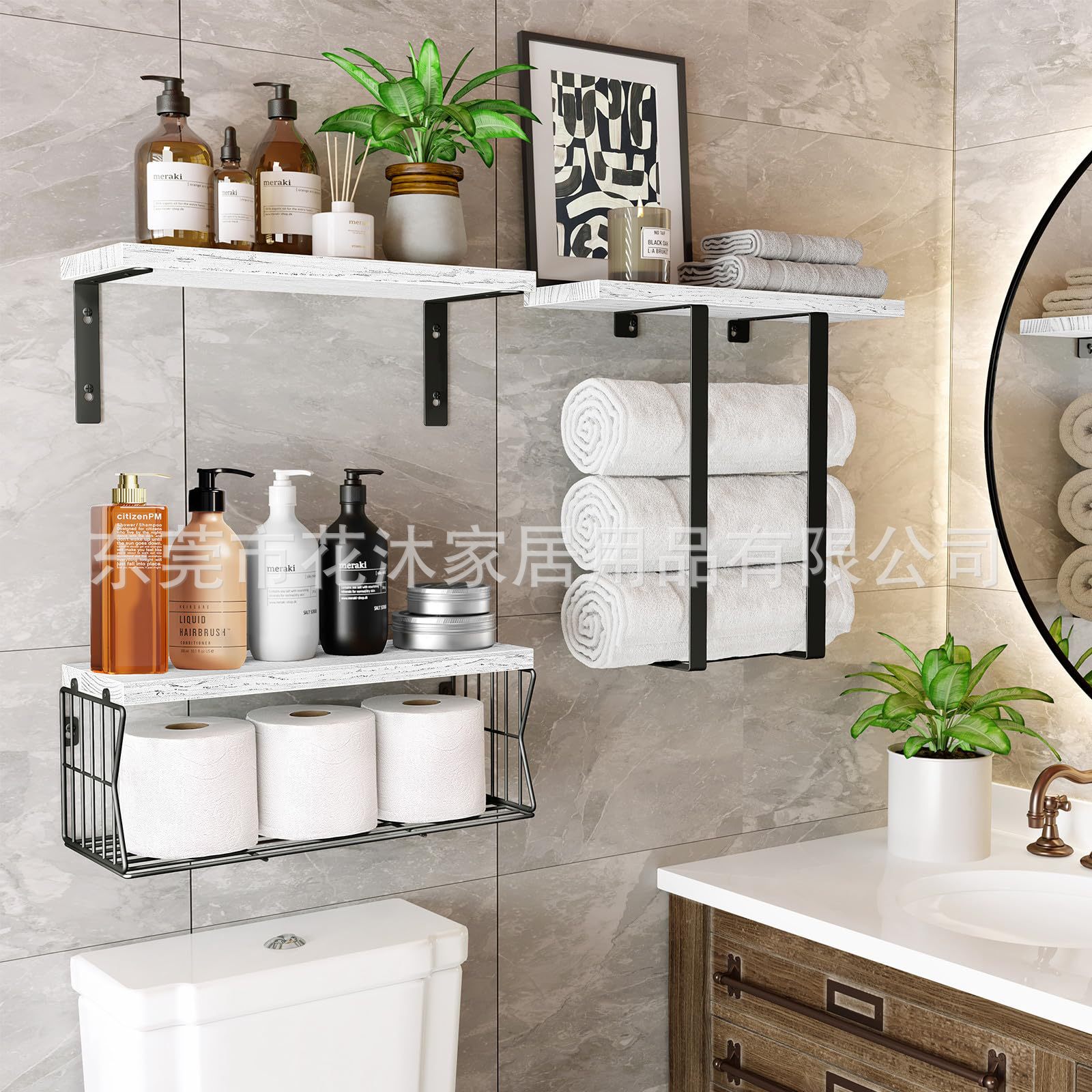 亚马逊浴室毛巾架带隔板壁挂式置物架纸巾洗漱用品收纳架厂家直销
