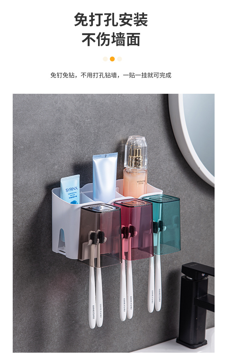 电动牙刷置物架卫生间壁挂家庭漱口杯架子免打孔牙杯牙具收纳套装
