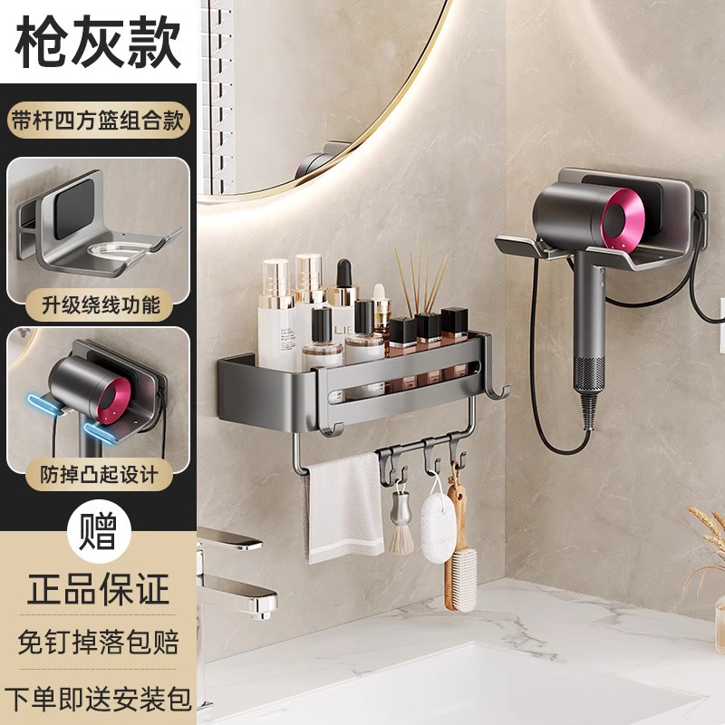 吹风机置物架免打孔卫生间壁挂式电吹风支架挂架浴室风筒收纳架子