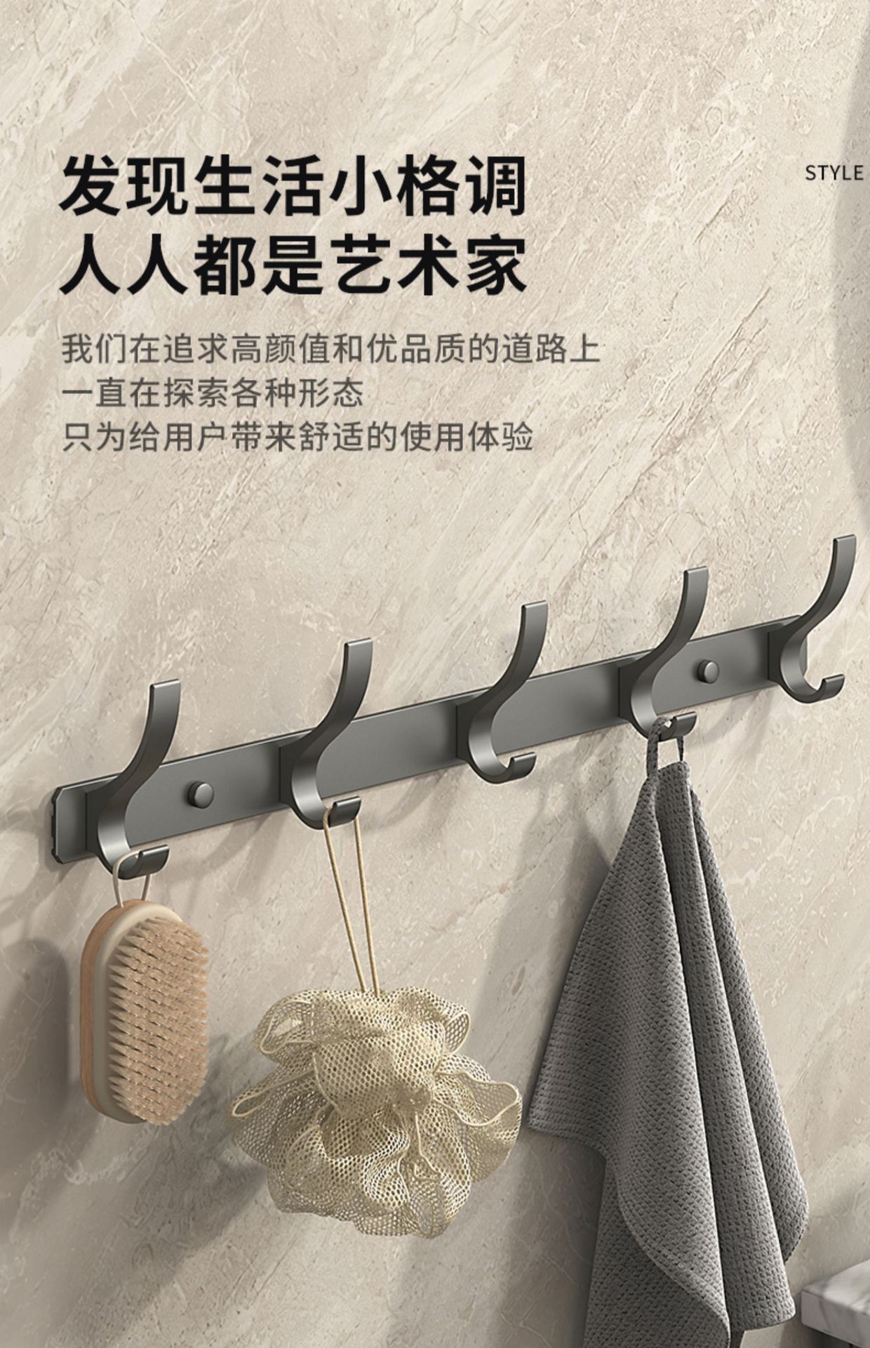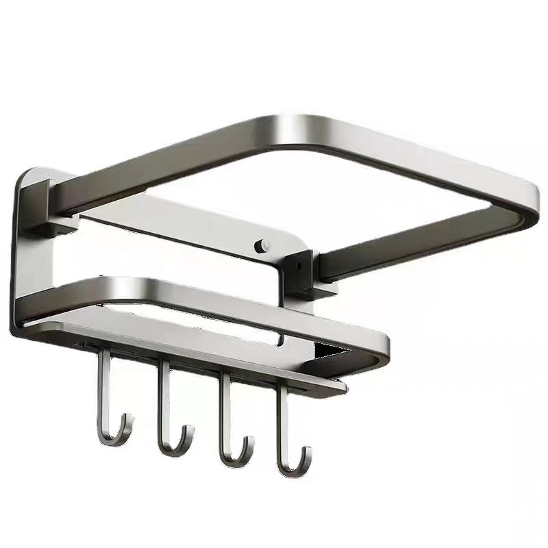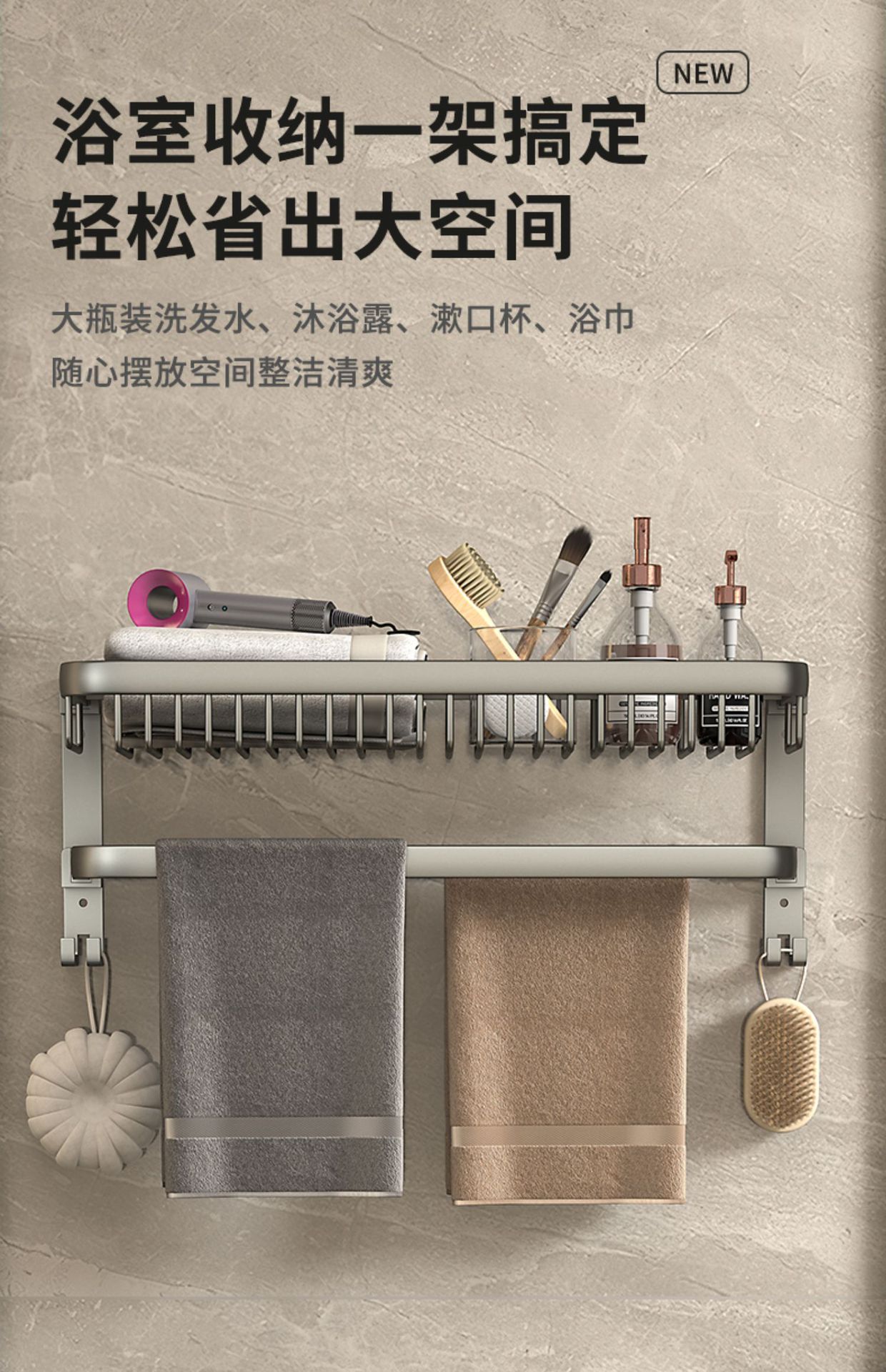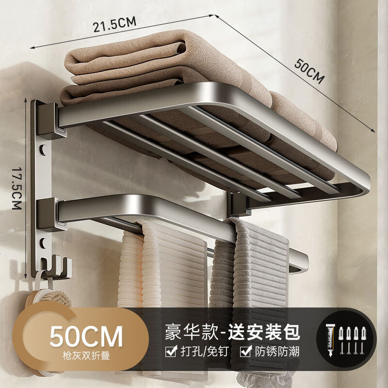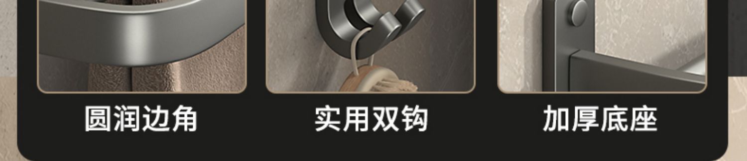 毛巾架卫生间置物架一体免打孔壁挂浴室厕所卫浴套装太空铝浴巾架
