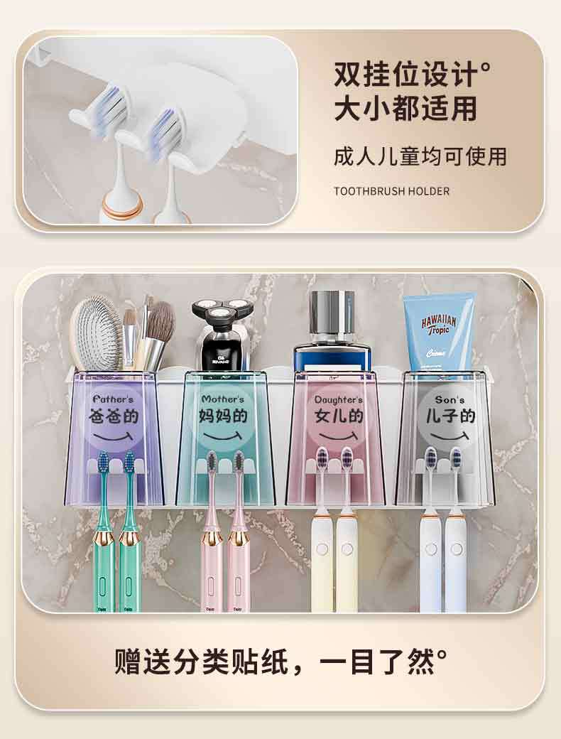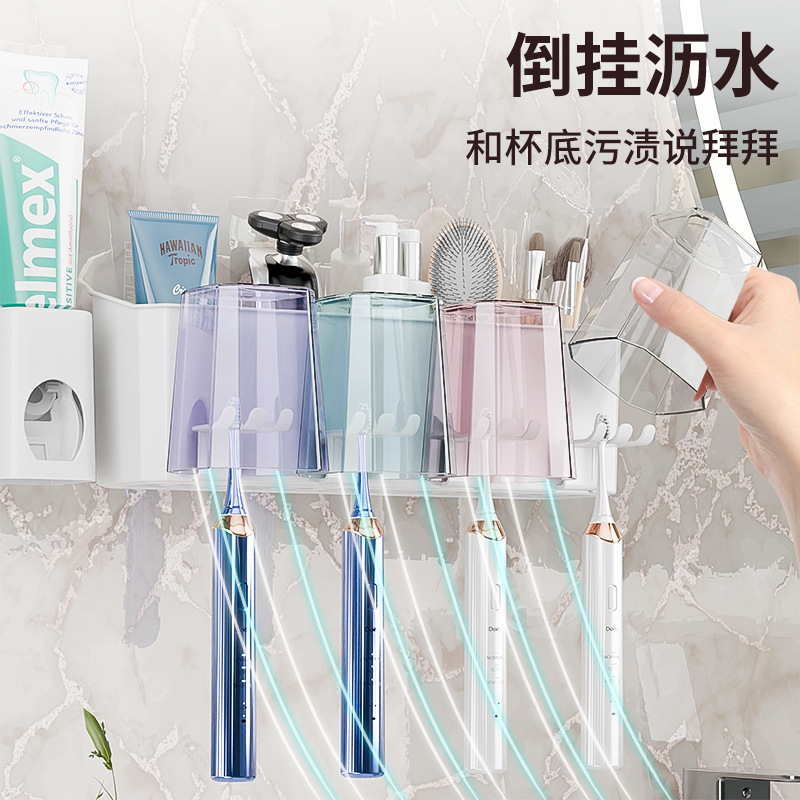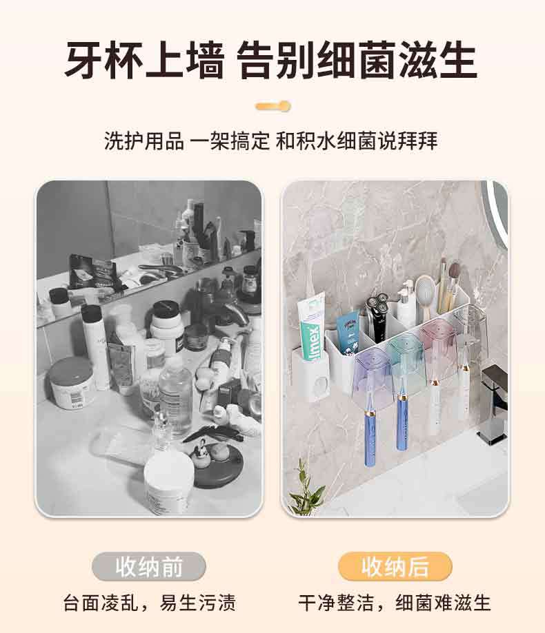 牙刷置物架壁挂免打孔漱口杯刷牙杯挤牙膏器牙刷牙杯置物架收纳盒