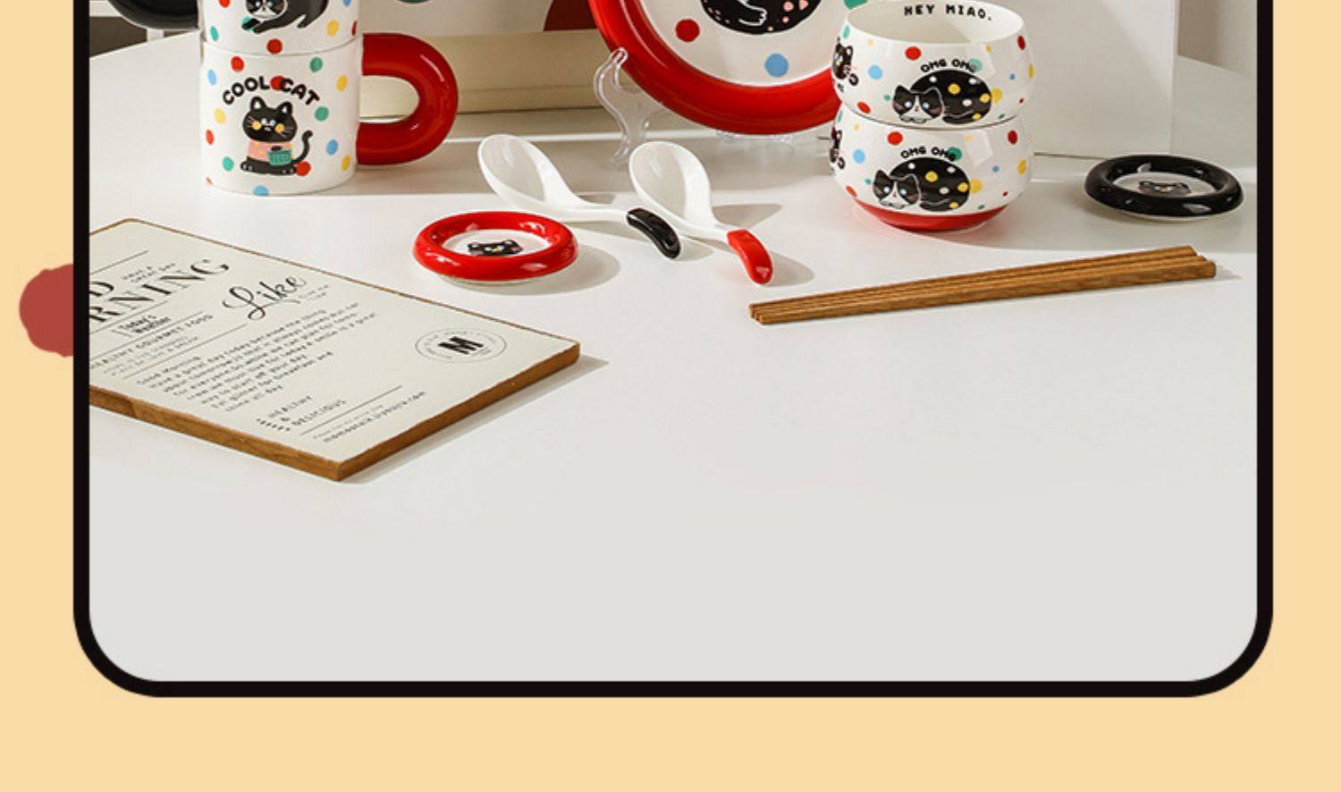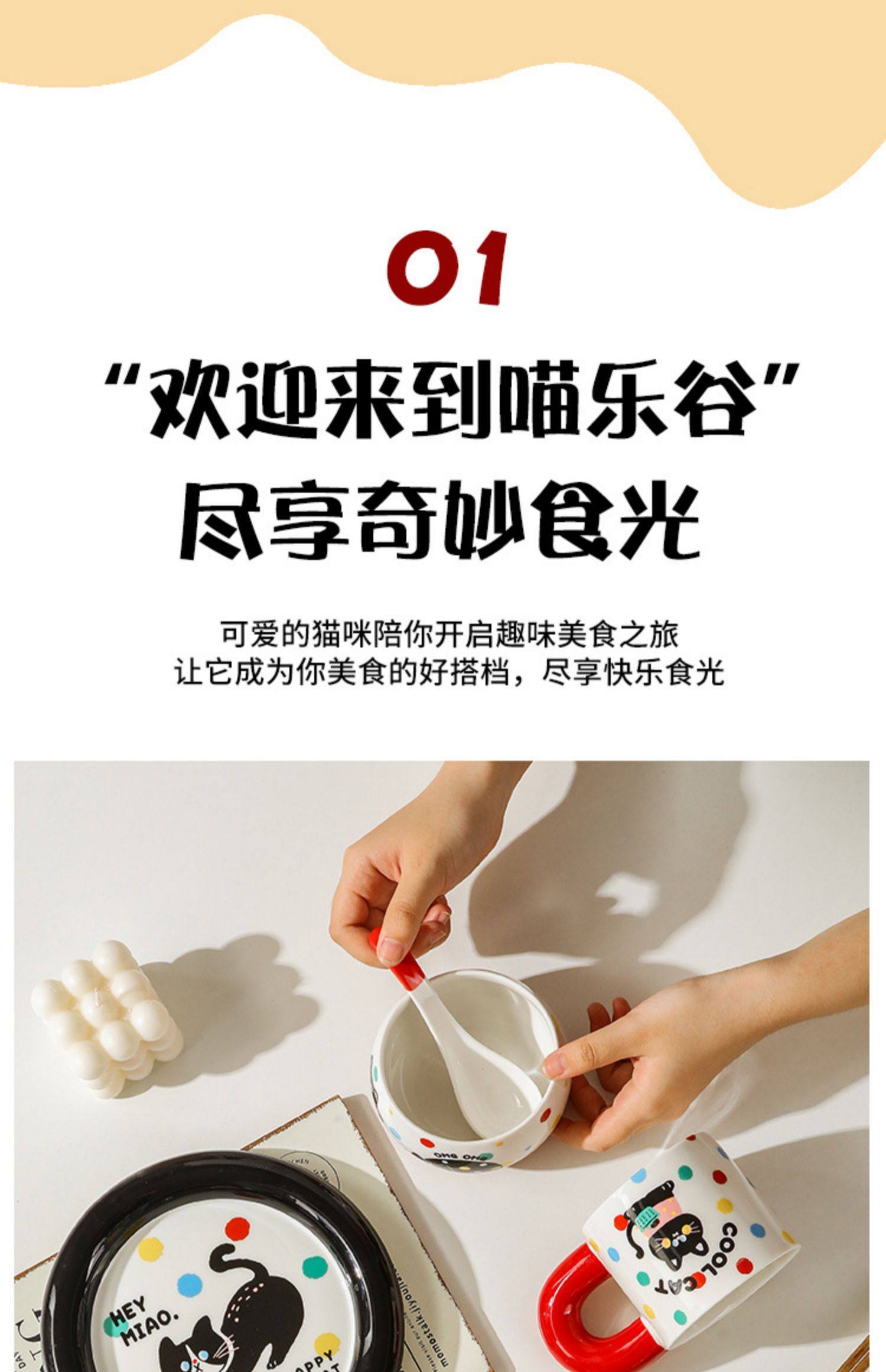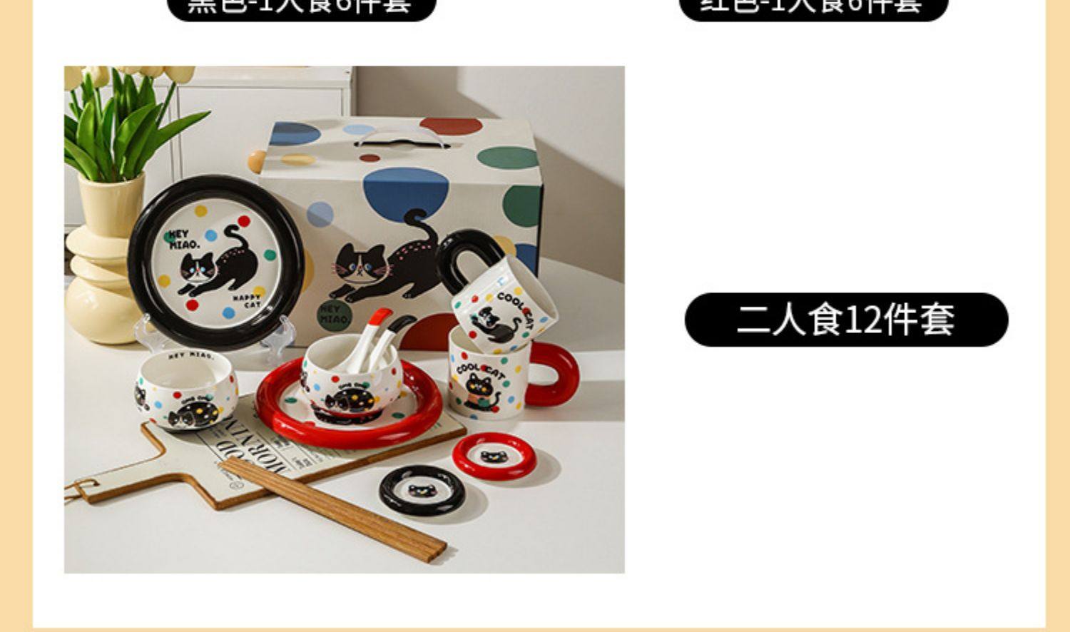 2024新款可爱猫咪餐具碗盘勺杯子情侣套装送礼好看碗碟家用1-2人