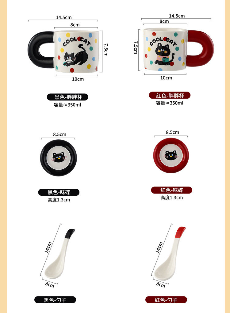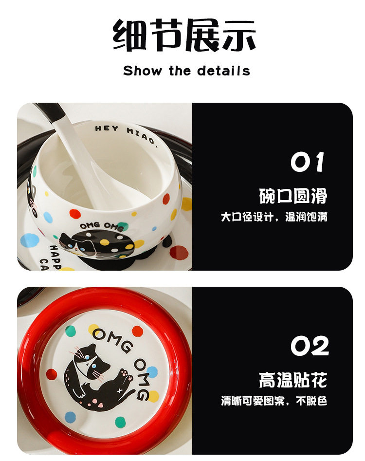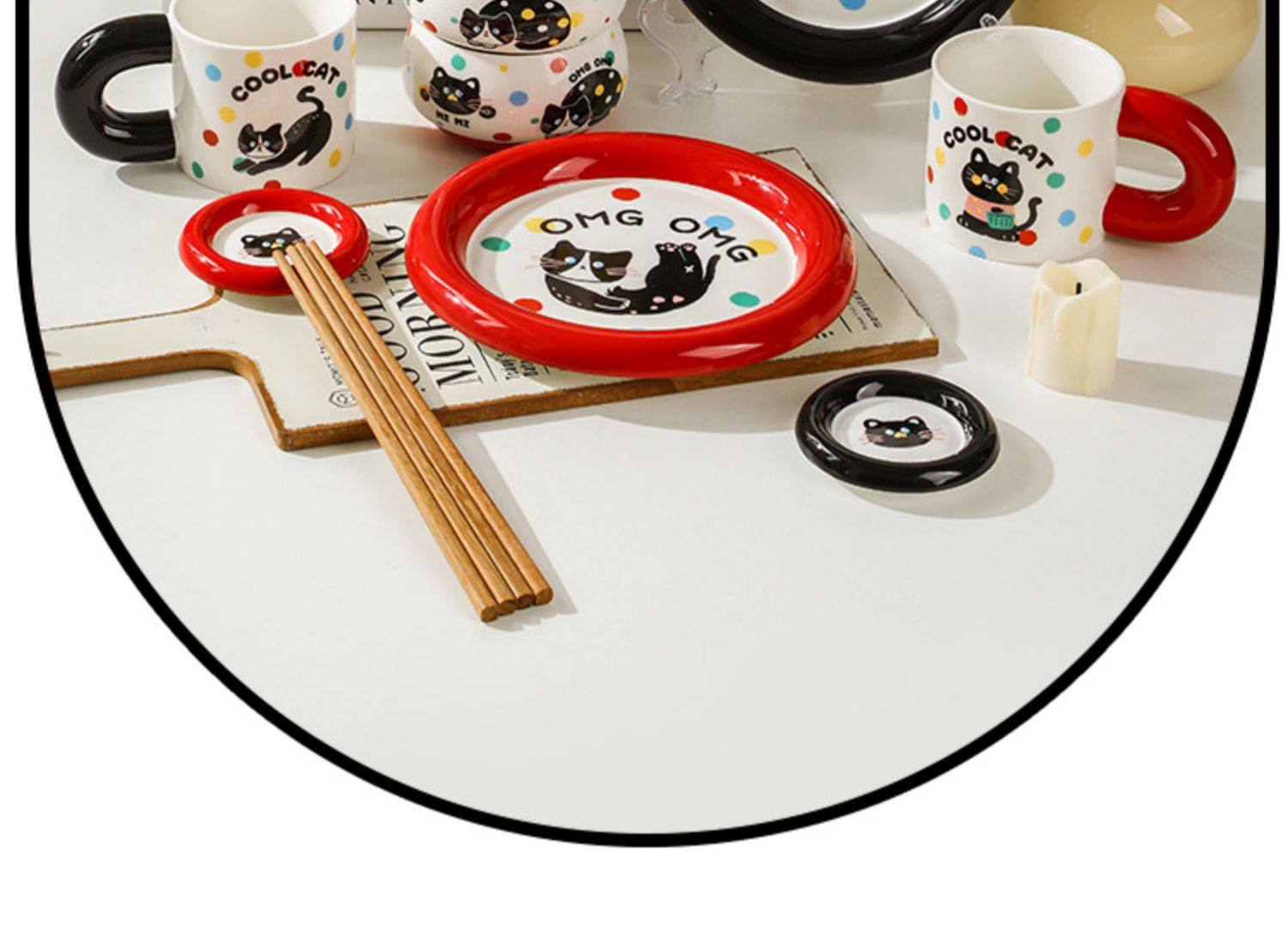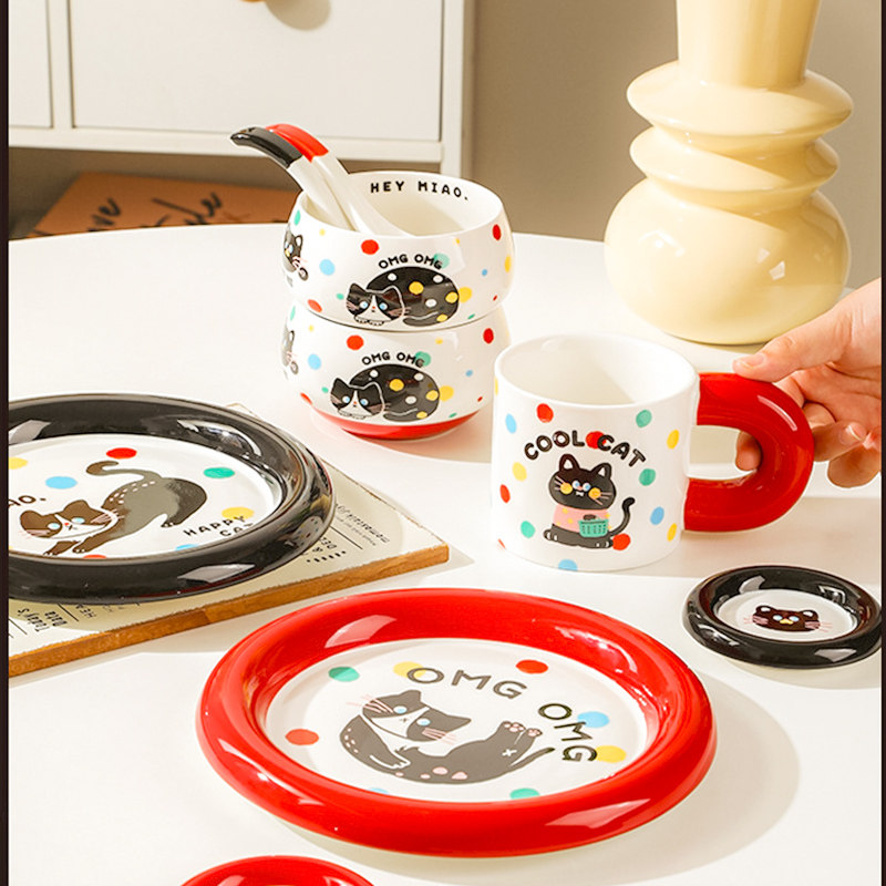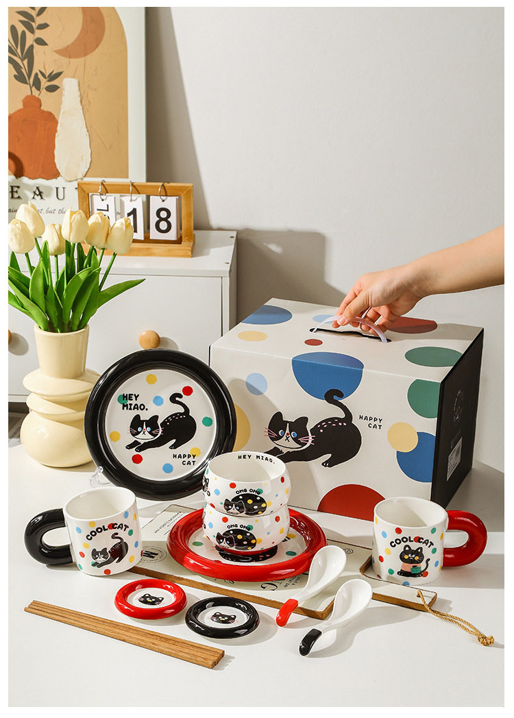 2024新款可爱猫咪餐具碗盘勺杯子情侣套装送礼好看碗碟家用1-2人