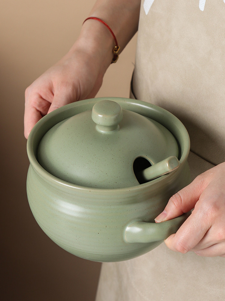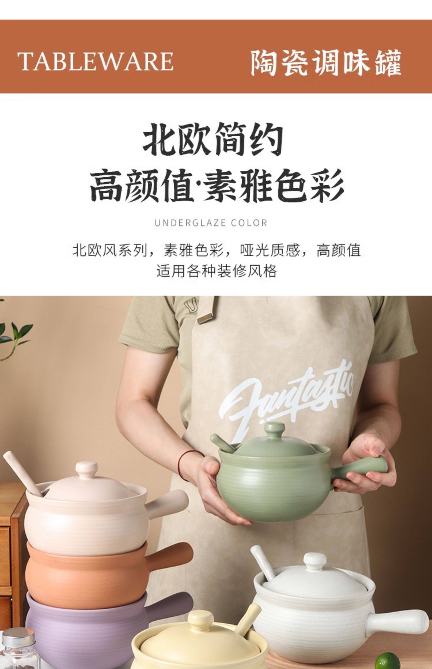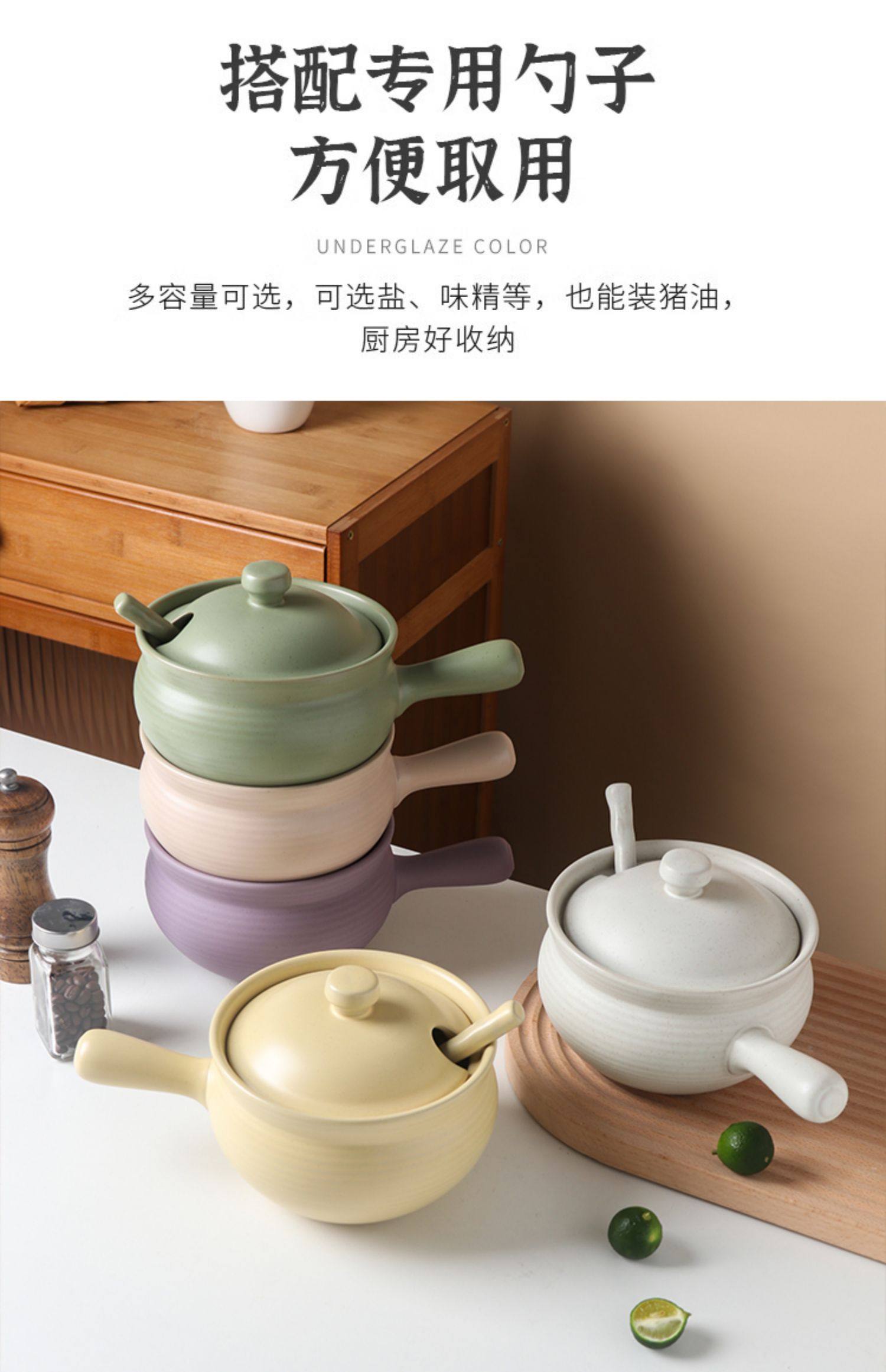陶煲王双耳猪油罐陶瓷辣椒油耐高温油泼辣子厨房带盖猪油调味罐