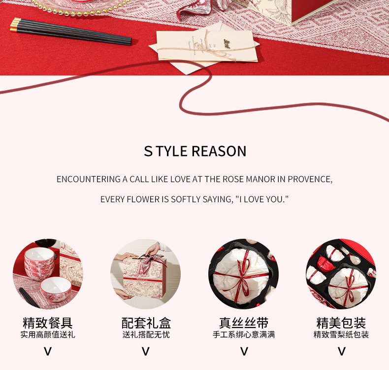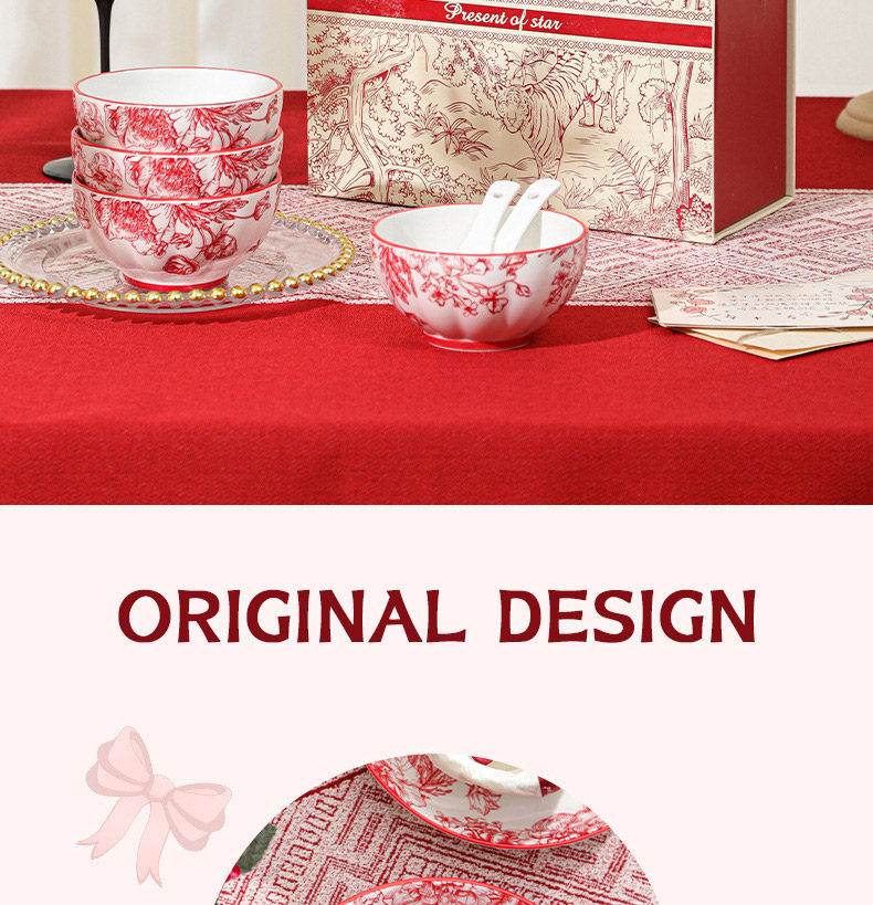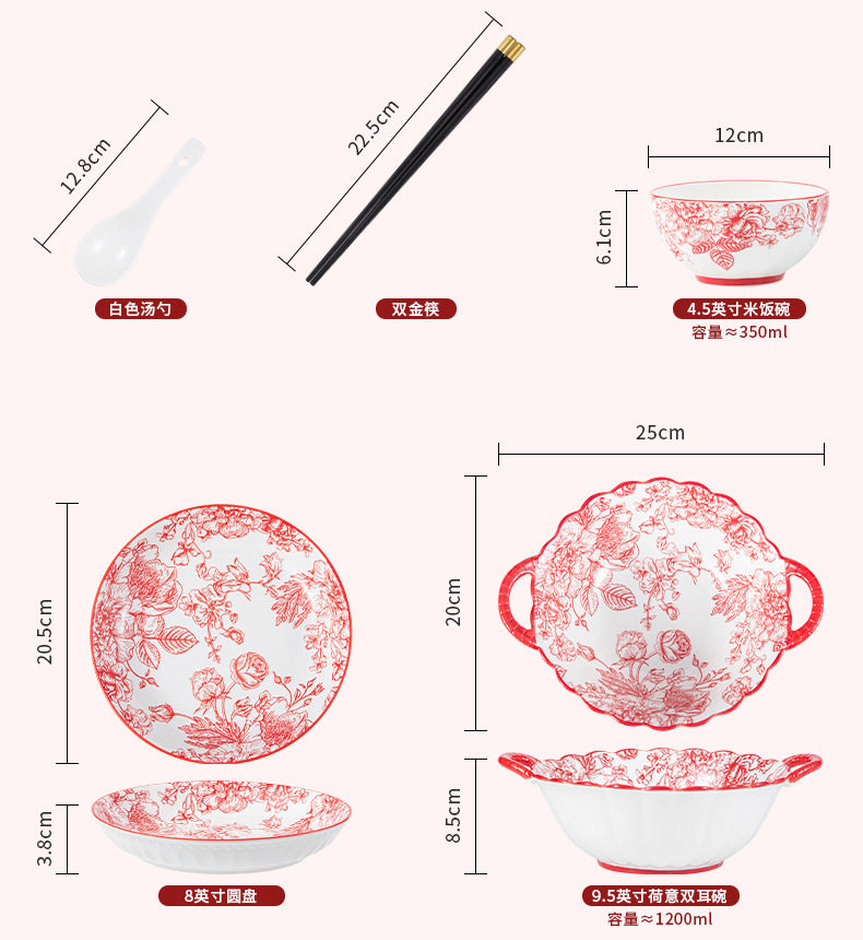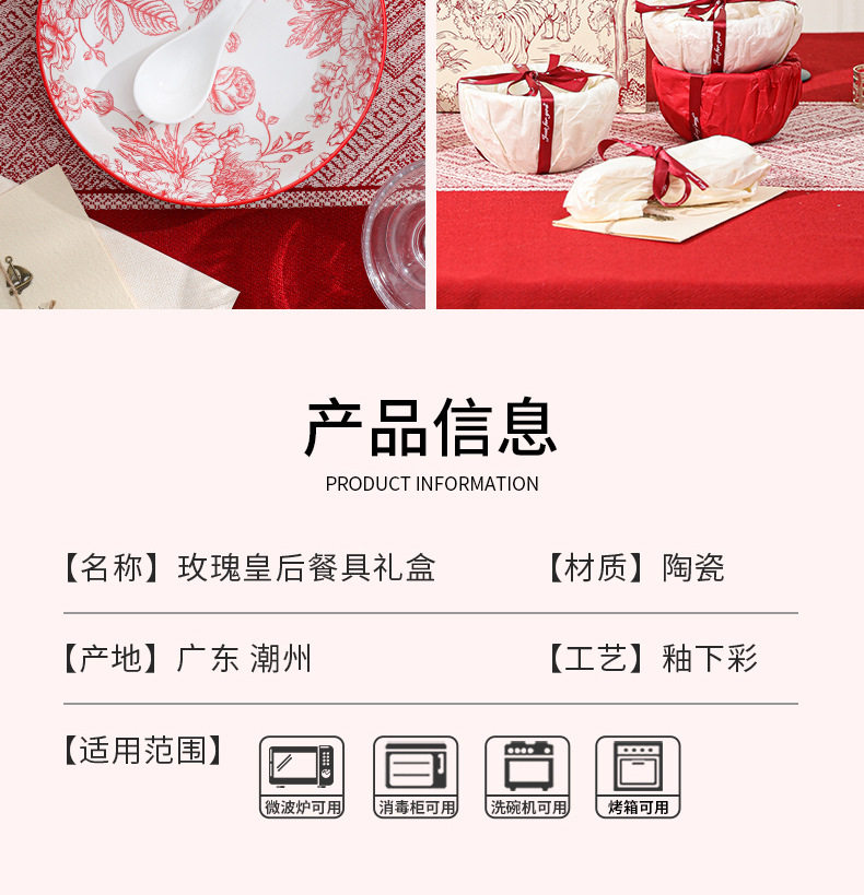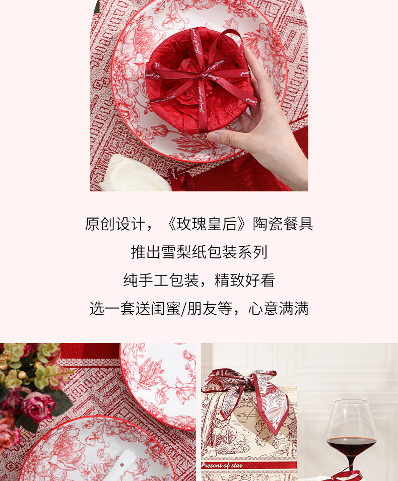 2024新款中式红色喜庆陶瓷碗盘筷勺餐具套装高档礼盒装结婚送礼品