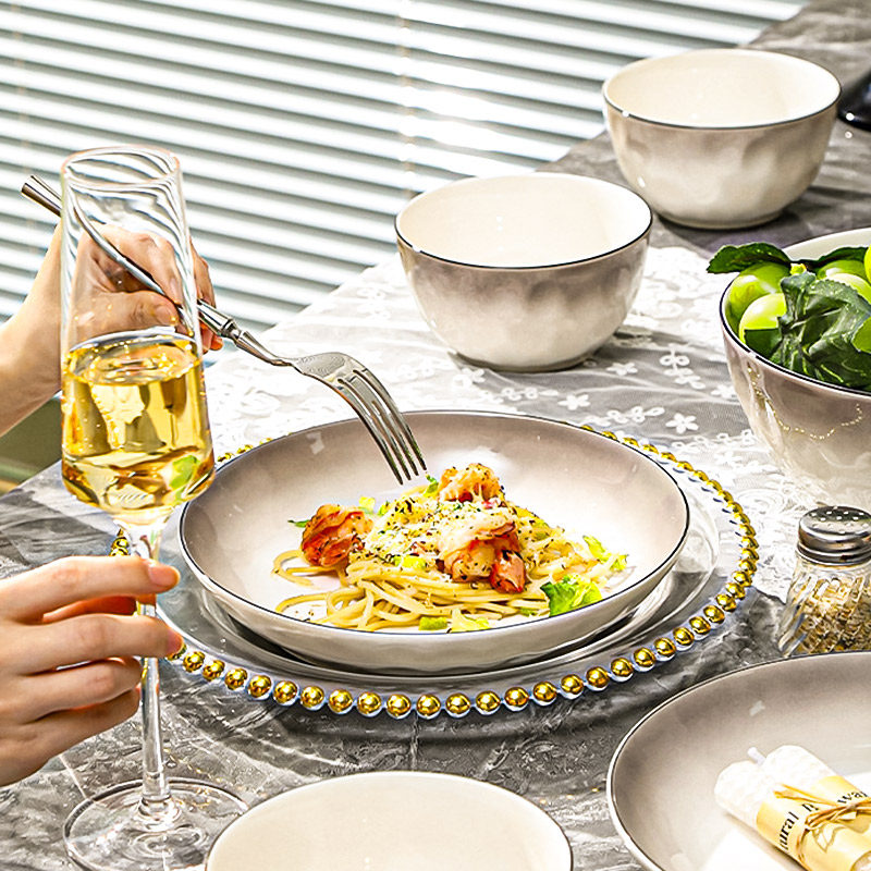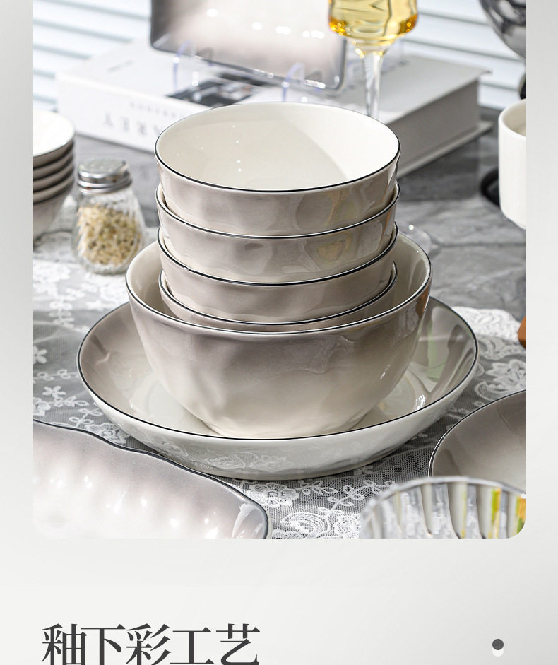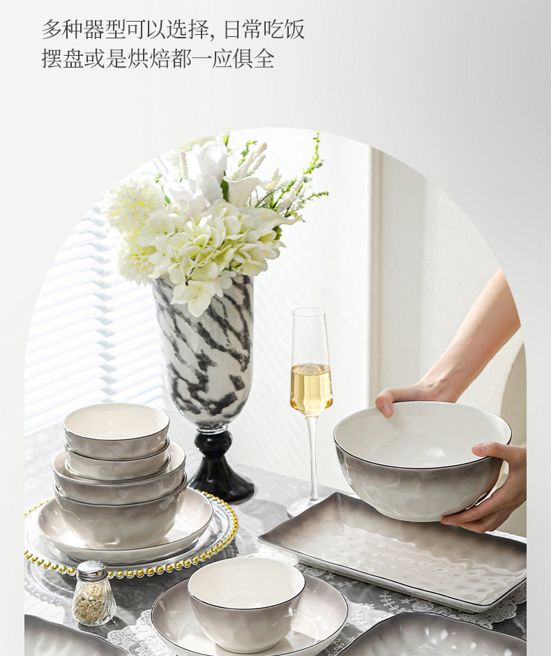 中式简约碗盘餐具套装家用轻奢吃饭碗盘子碟套装礼盒装送礼ins风