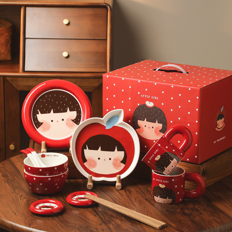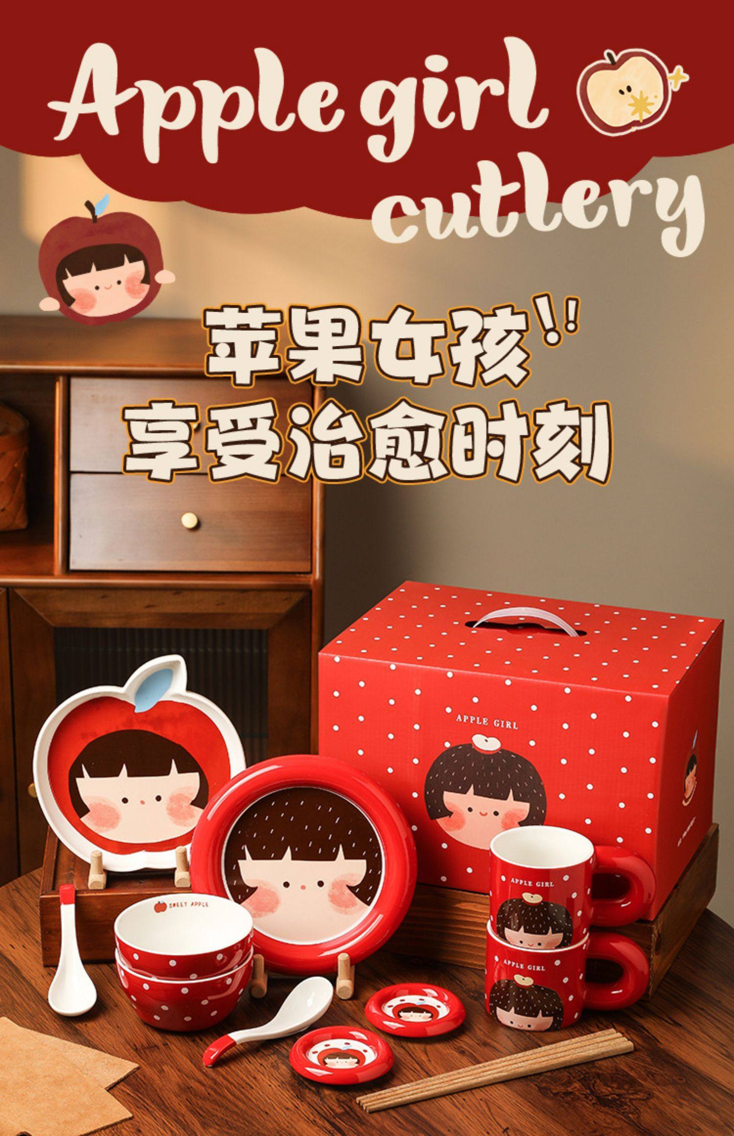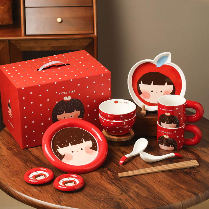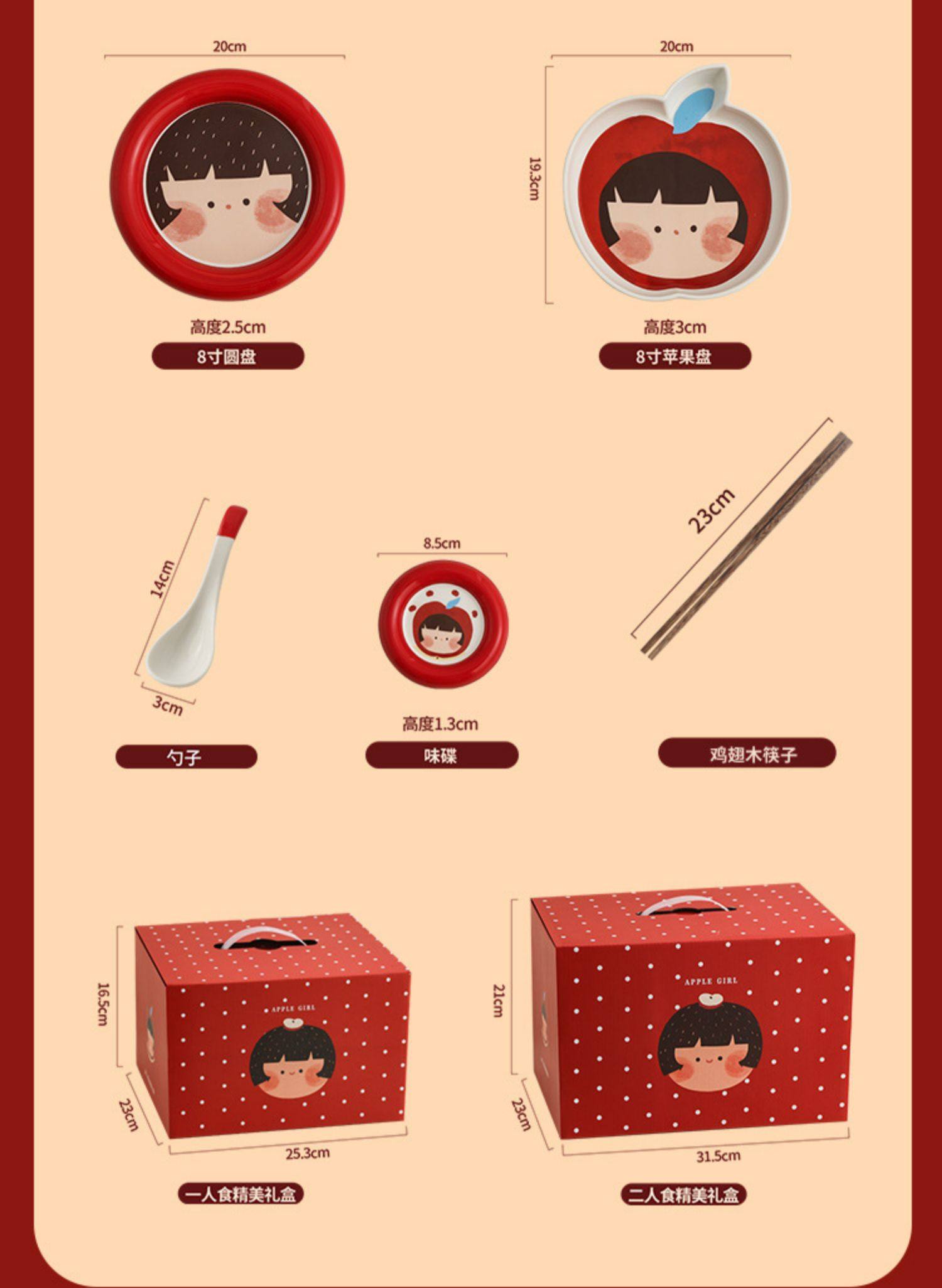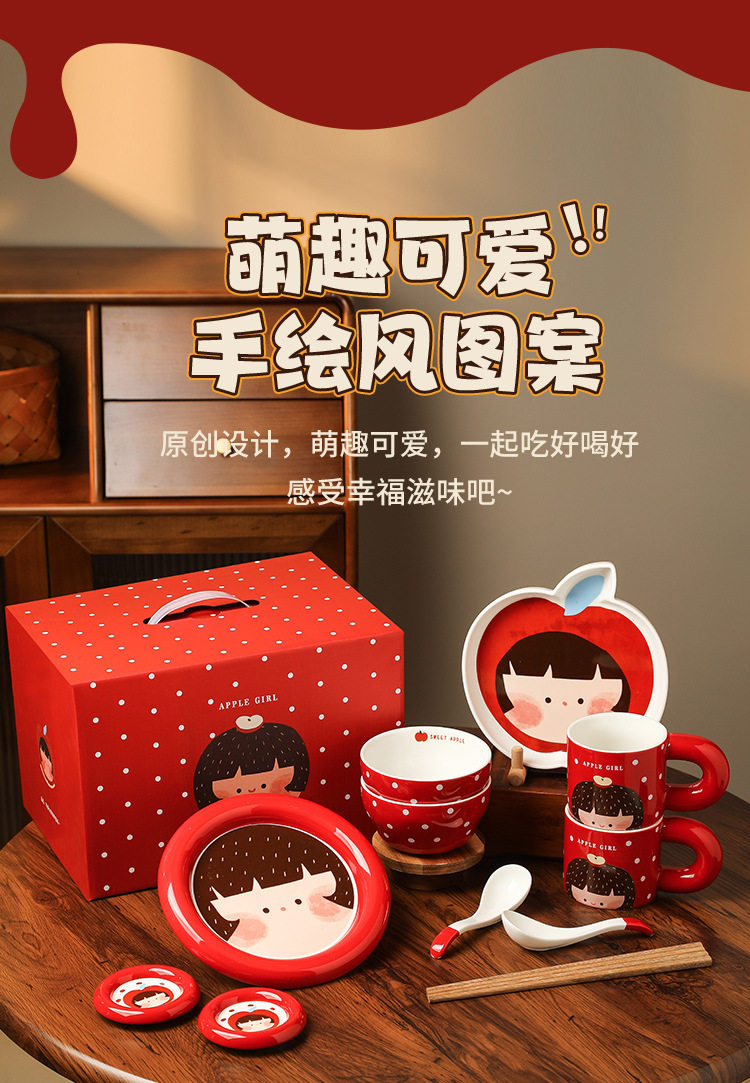 2024新款可爱少女心情侣餐具套装情人节送礼礼盒装碗盘一人二人食